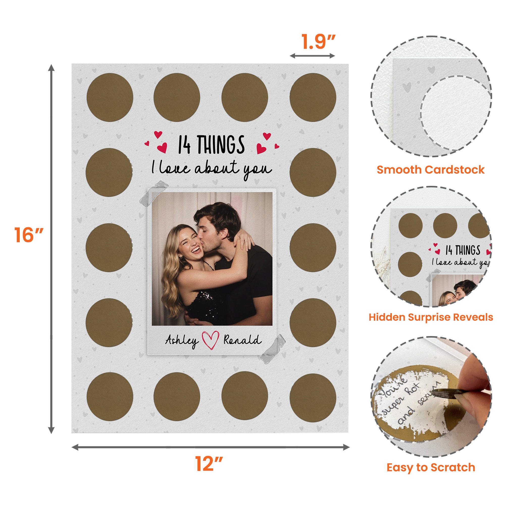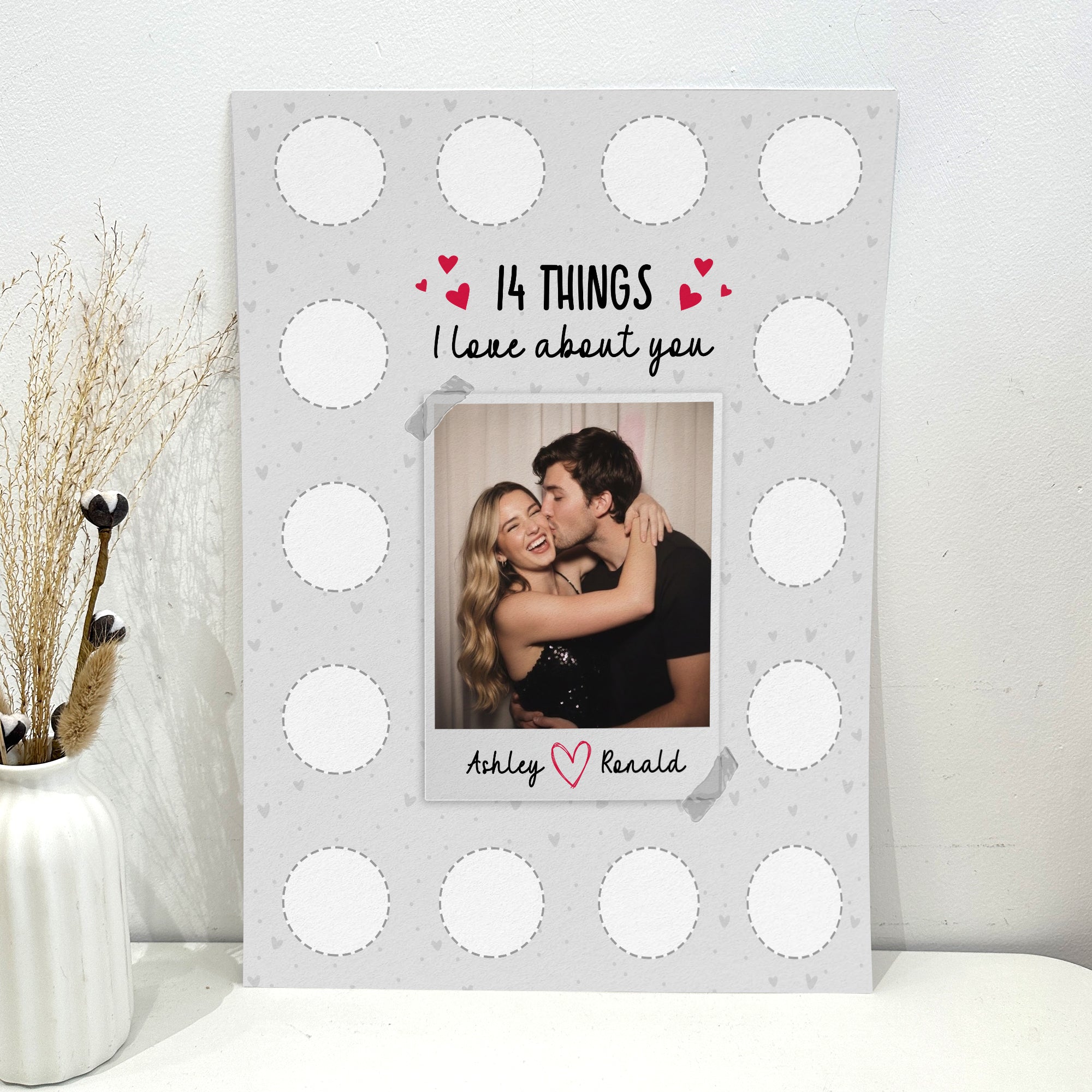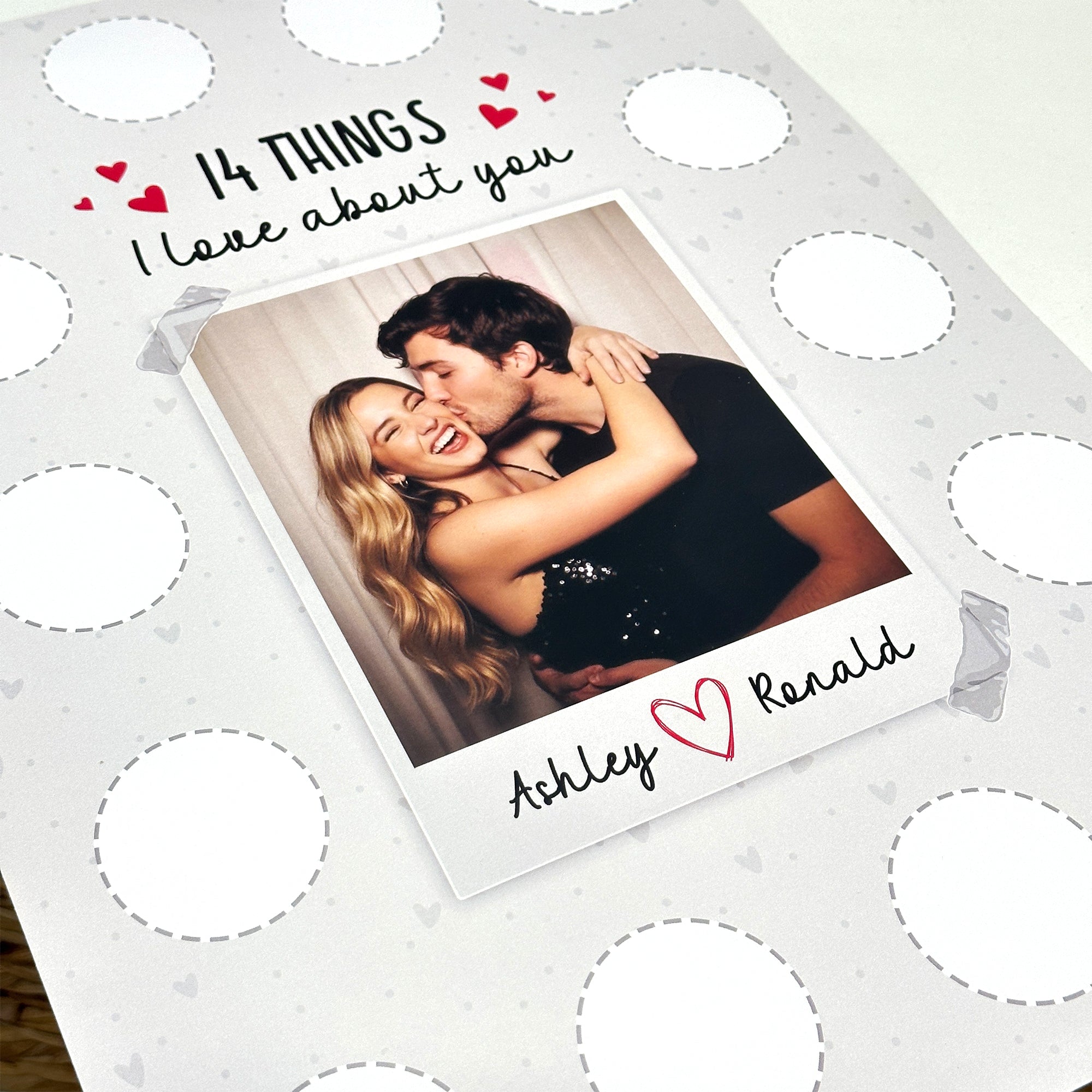 Celebrate someone special in your life with our 14 Things I Love About You - Personalized Photo Scratch-Off Poster. This meaningful keepsake is sure to touch hearts with its blend of sentiment and fun. Perfect for Valentine’s Day, anniversaries, or just because - it's a creative and personal way to express your love. The scratch-off feature adds an exciting element as you and your loved one unveil your cherished moments together, creating a beautiful narrative of your love story.