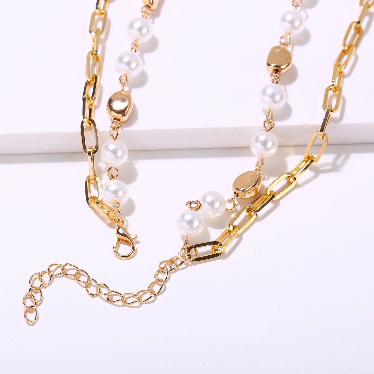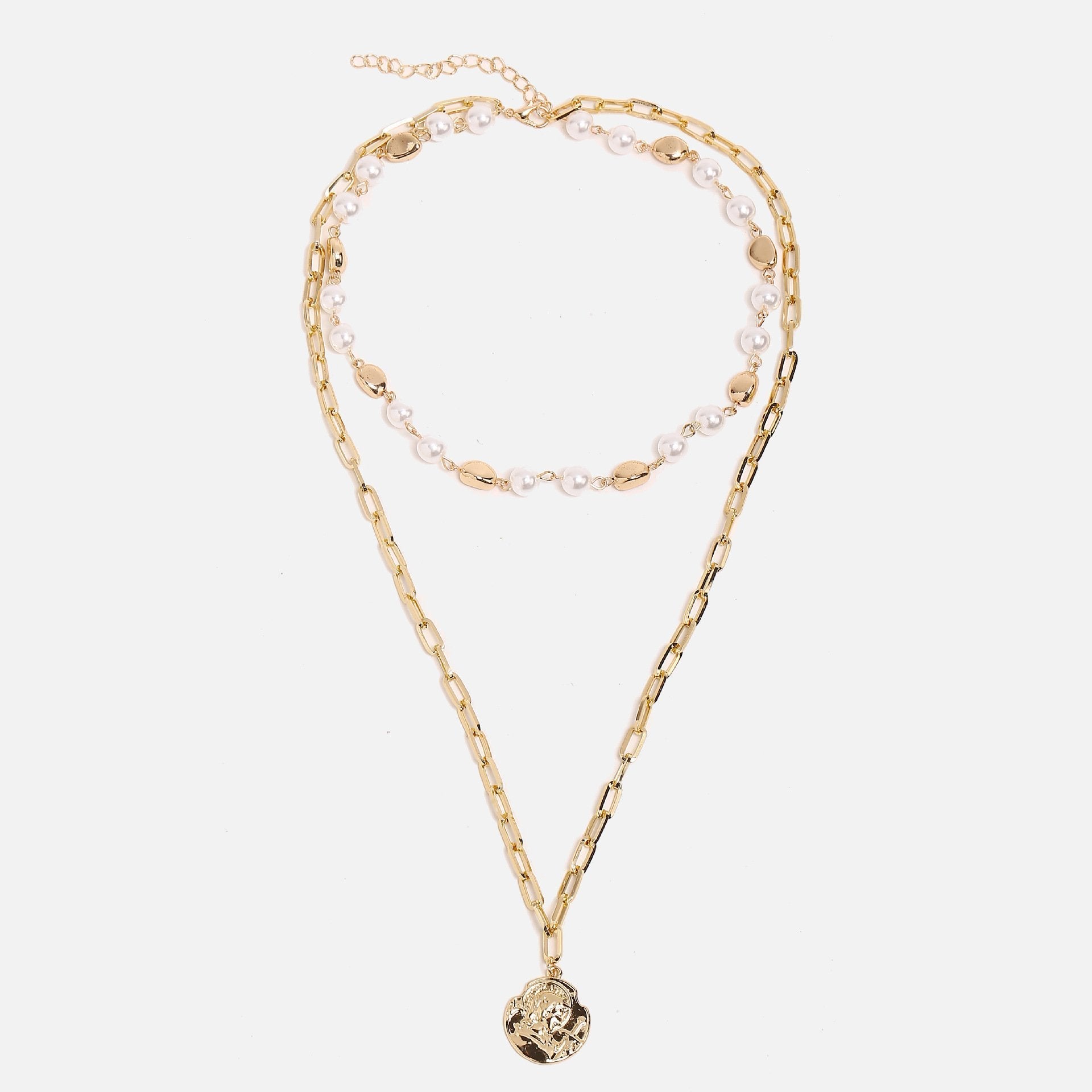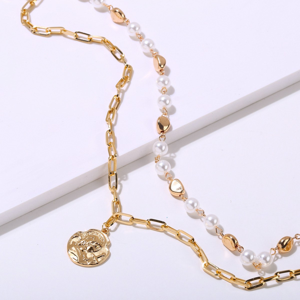 2 Piece Pearl Coin Head Necklace Goldtone Necklace ITALY Design
