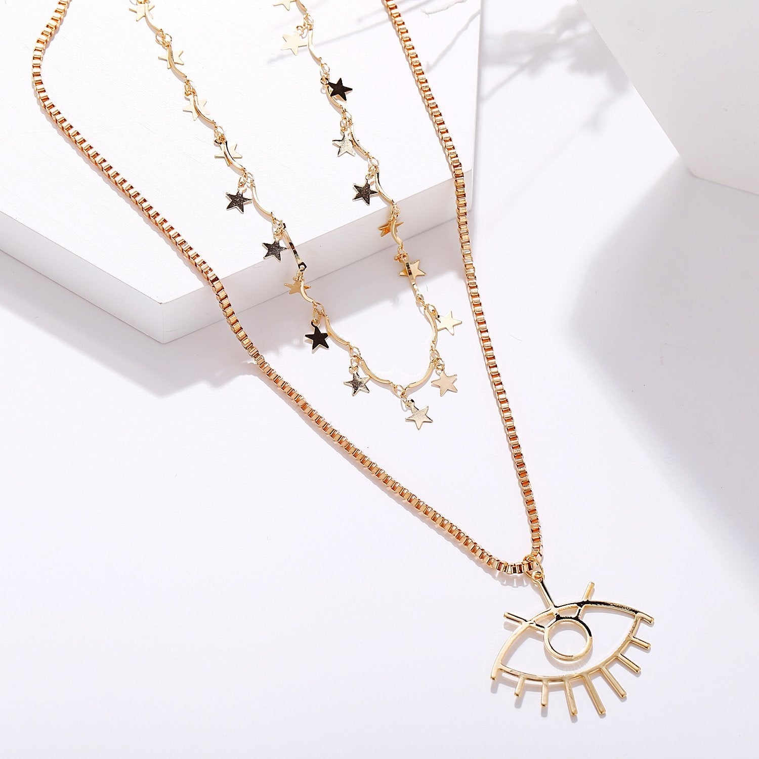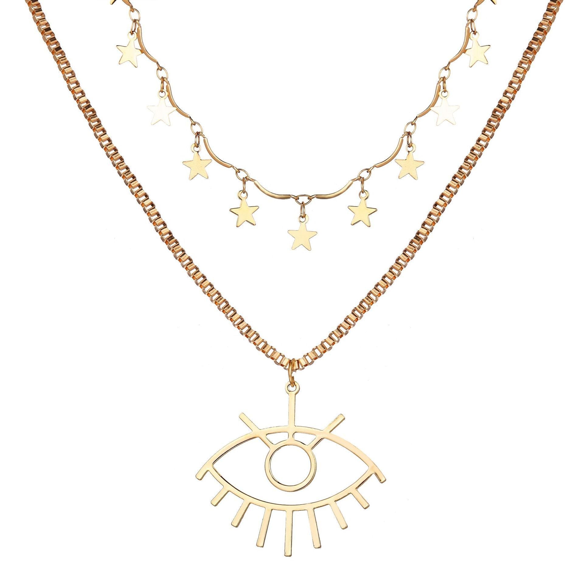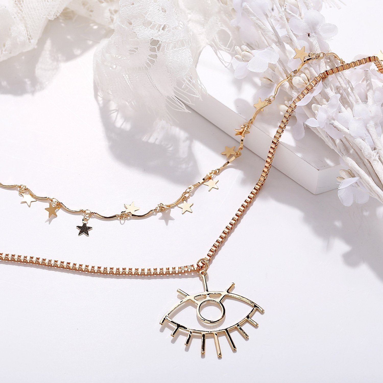 2 Piece Star and Eye Layer Necklace Goldtone Necklace in Goldtone ITALY Design