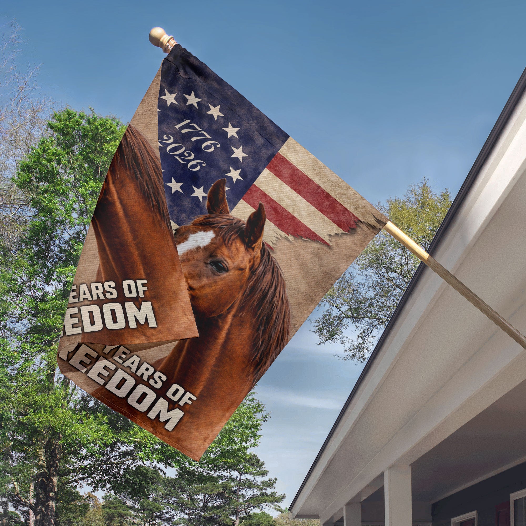 Celebrate your love for horses and your patriotic spirit with our 250 Years Horse American- Flag. This unique flag is more than just a decorative piece; it's a symbol of bonding and cherished memories that unites us all under the banner of freedom. Perfect for Independence Day celebrations, birthdays, or any other special occasion, this flag is a standout addition to any home and is guaranteed to draw appreciative eyes.
