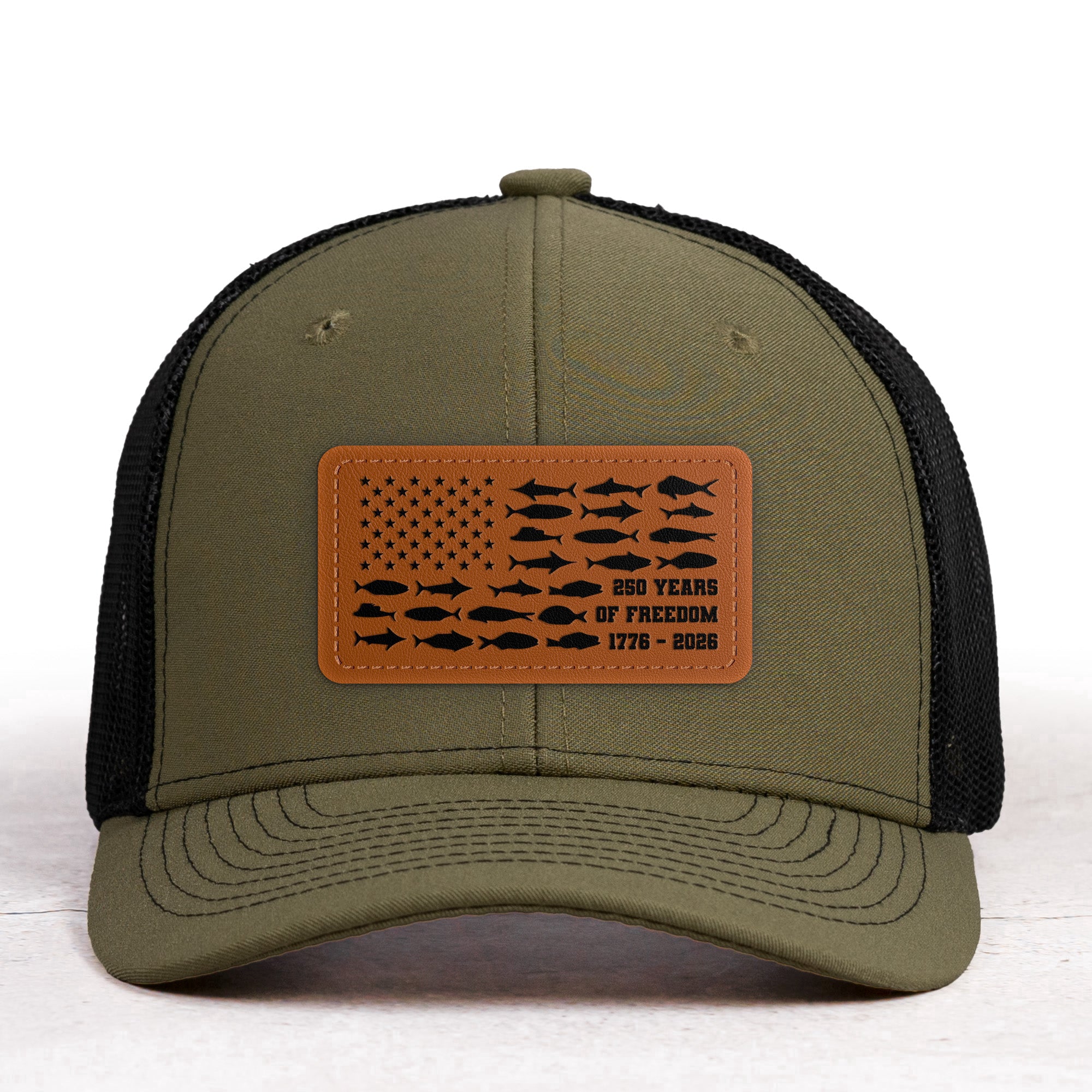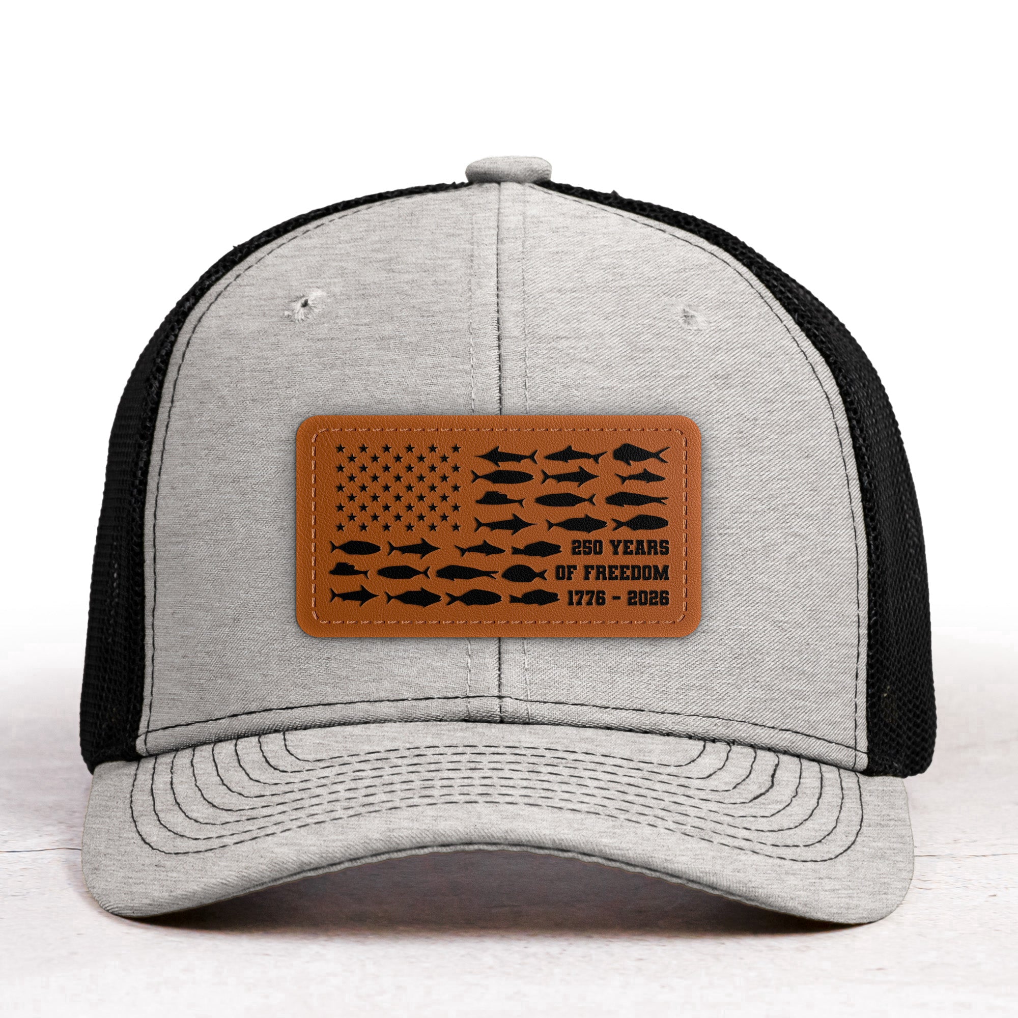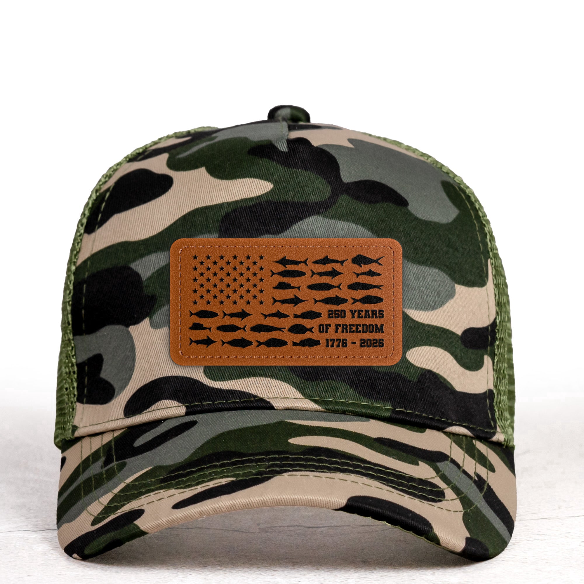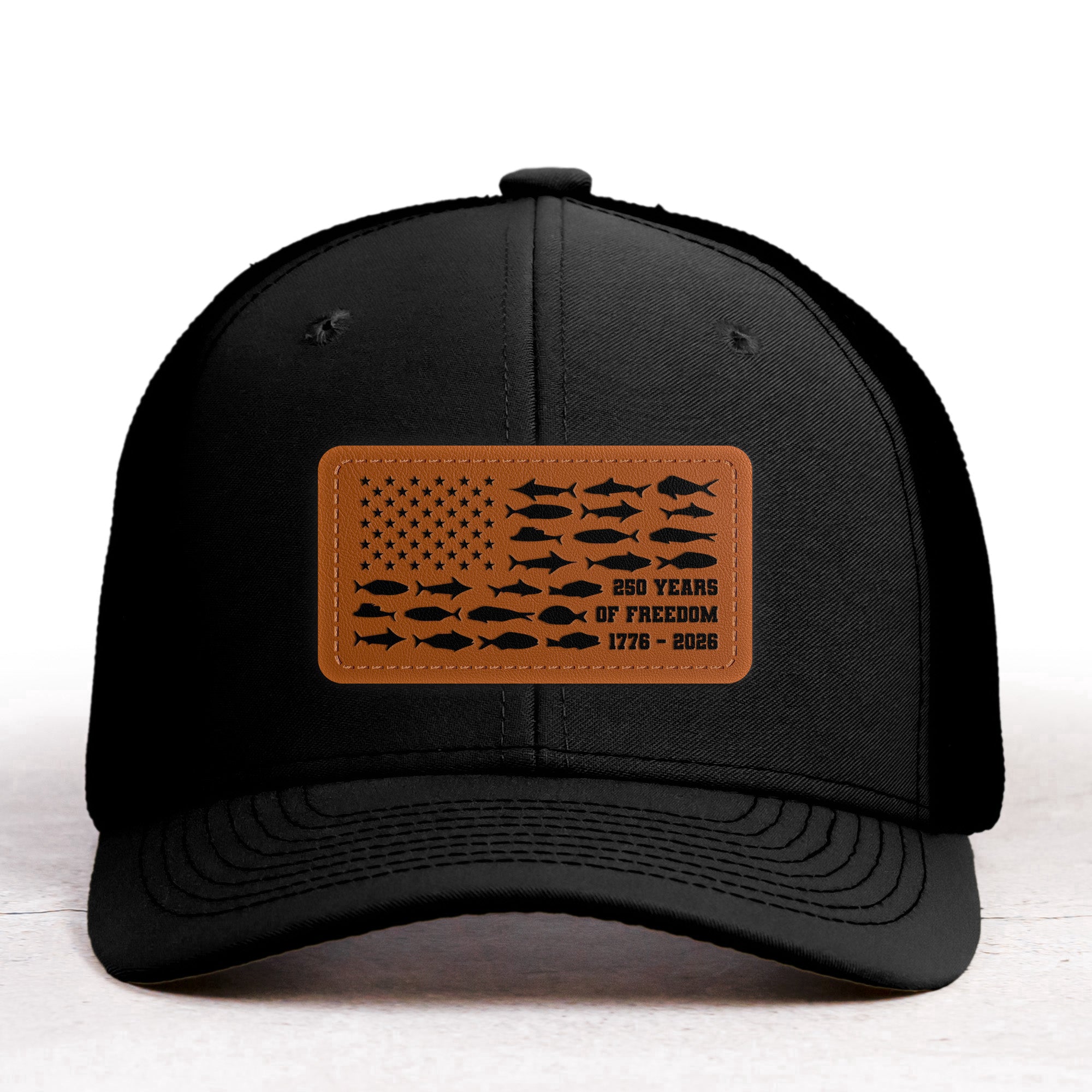 Celebrate the freedom and passion for fishing in a unique and fashionable way with our 250 Years Of Freedom Fishing USA Flag - Cap. This custom shaped leather patch hat is perfect for those who are passionate about fishing and have immense love for their nation; making it an excellent choice for Independence Day. Tailor-made for avid fishermen and patriots, the cap also offers a sense of bonding by showing your love for freedom and your favorite pastime – fishing!