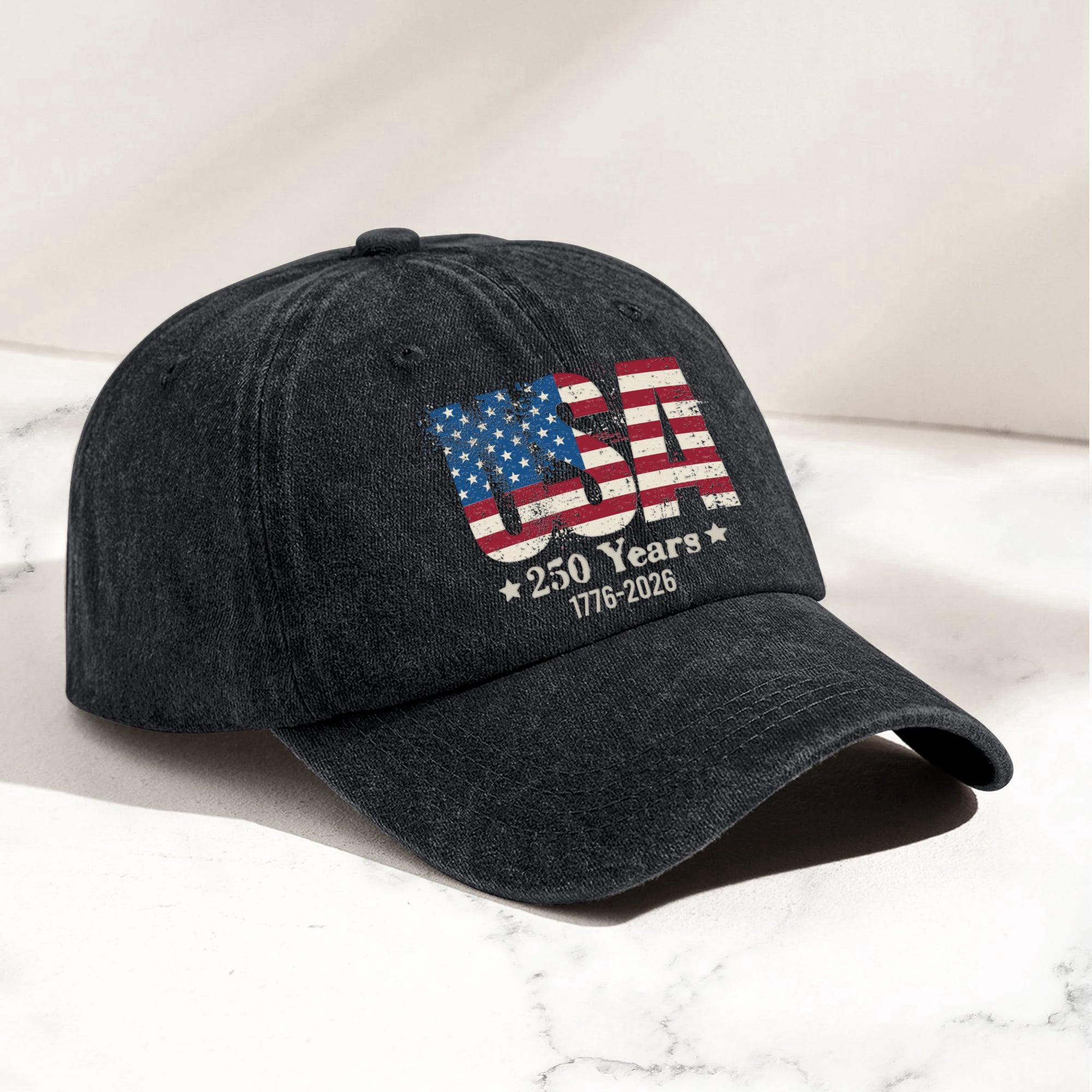 Uncover a piece of history with our Distressed Denim Cap titled "250 Years Of Freedome Since 1776". Serving as a timeless reminder of the liberation we are blessed with, this cap strikes the perfect balance between style and significance. Ideal for those who hold a profound sense of patriotism, this cap is a great fit in your wardrobe, offering both a fashion statement and a conversation piece.