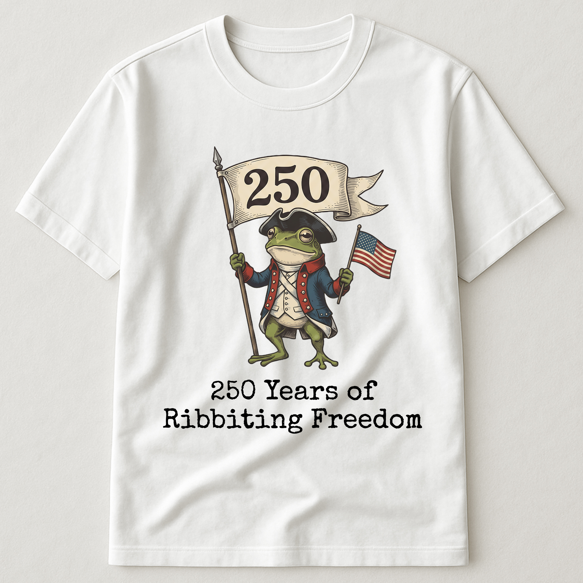 Perfect for Independence Day, birthdays, anniversaries, Christmas, or indeed any occasion. This is not just a shirt but a symbol of honor and pride which is reflected in its intricate design as it beautifully sums up years of sovereignty. It's an ideal present for your loved ones who are patriots or history buffs. To seal the deal, this shirt doesn't just speak style, it screams freedom. So why wait? Experience the spirit of liberty and let the Patriot Frog be a part of your storytelling. Celebrate 250 Years of Ribbiting Freedom and make it yours today!