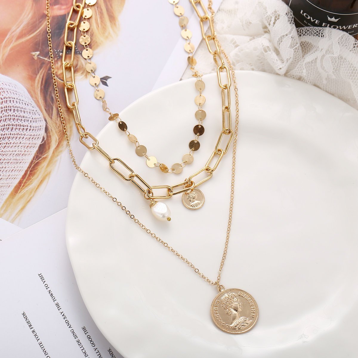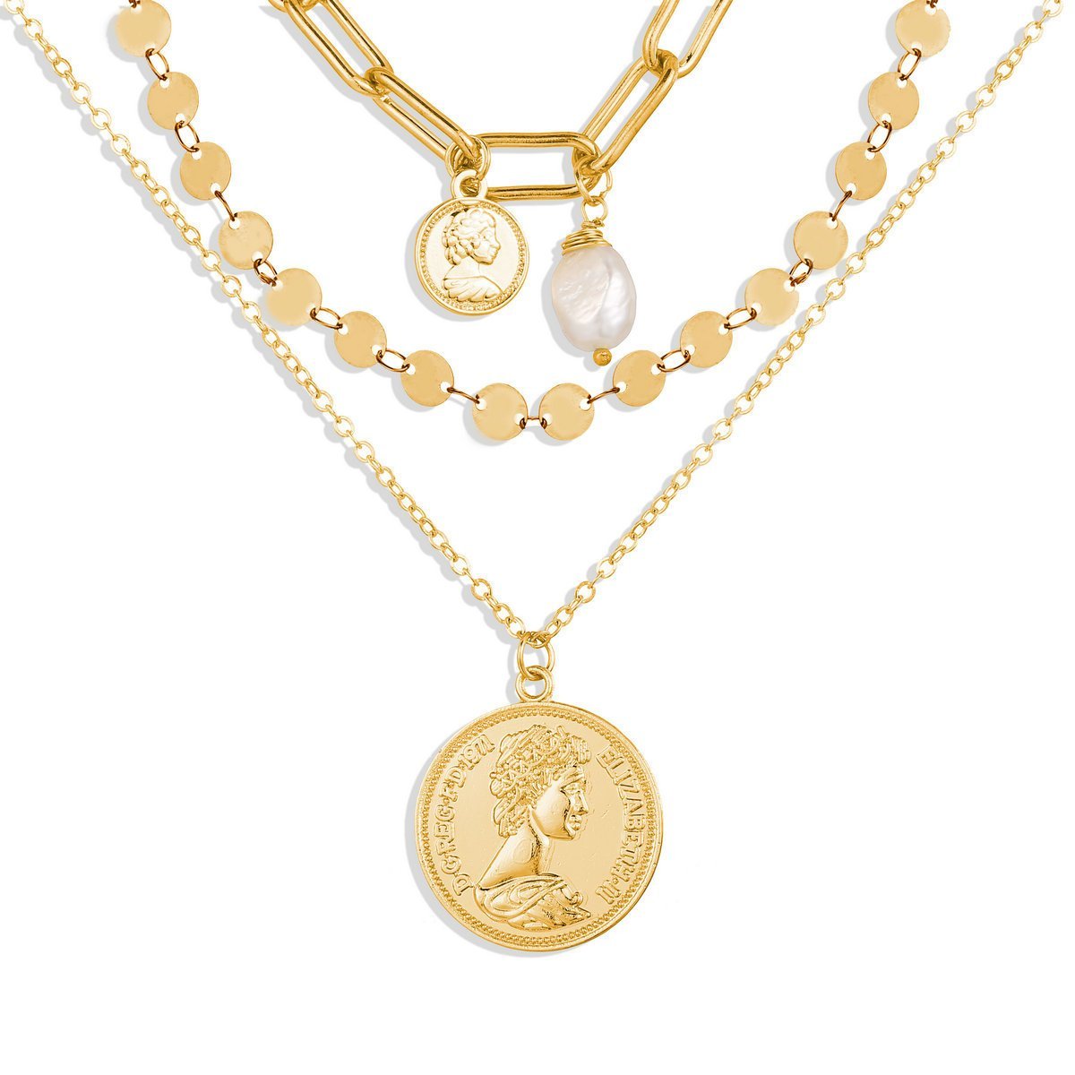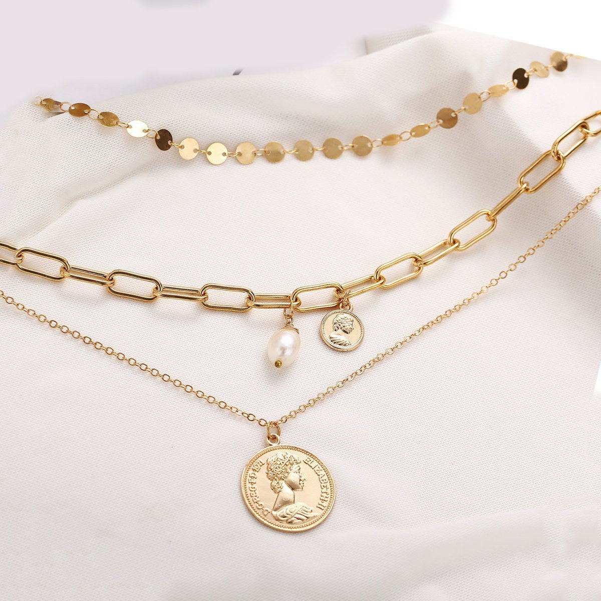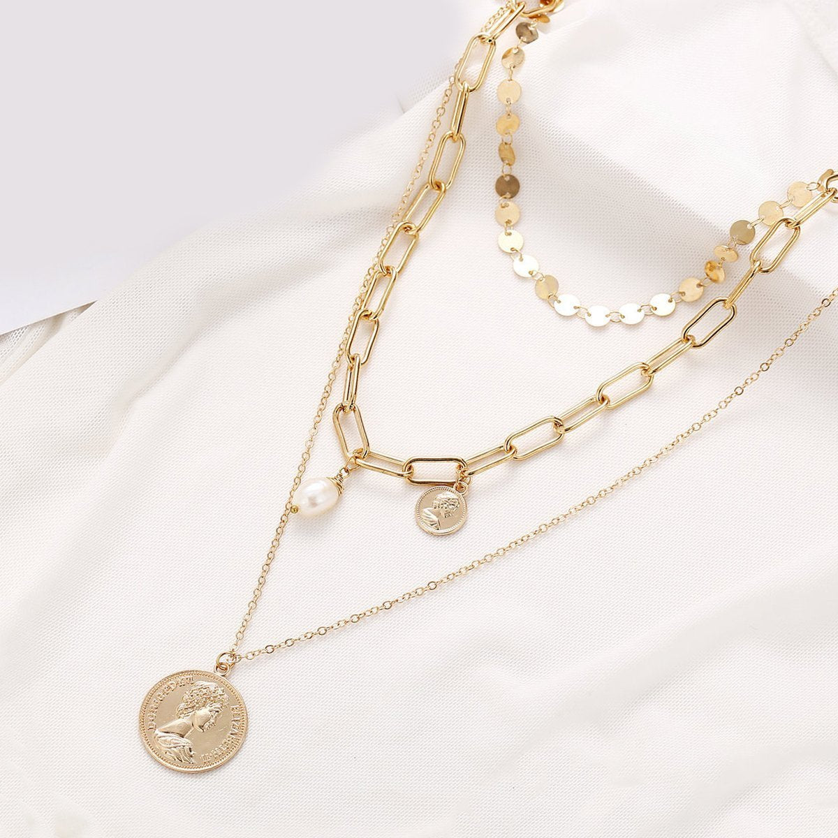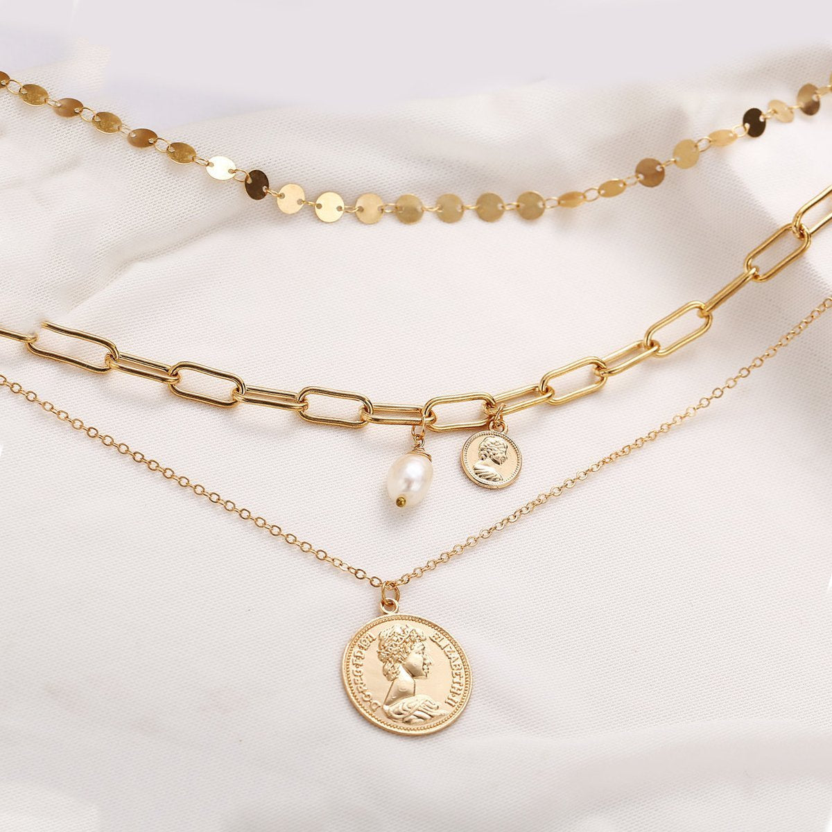 3 Piece Coin Pearl Necklace Goldtone Necklace in Goldtone ITALY Design