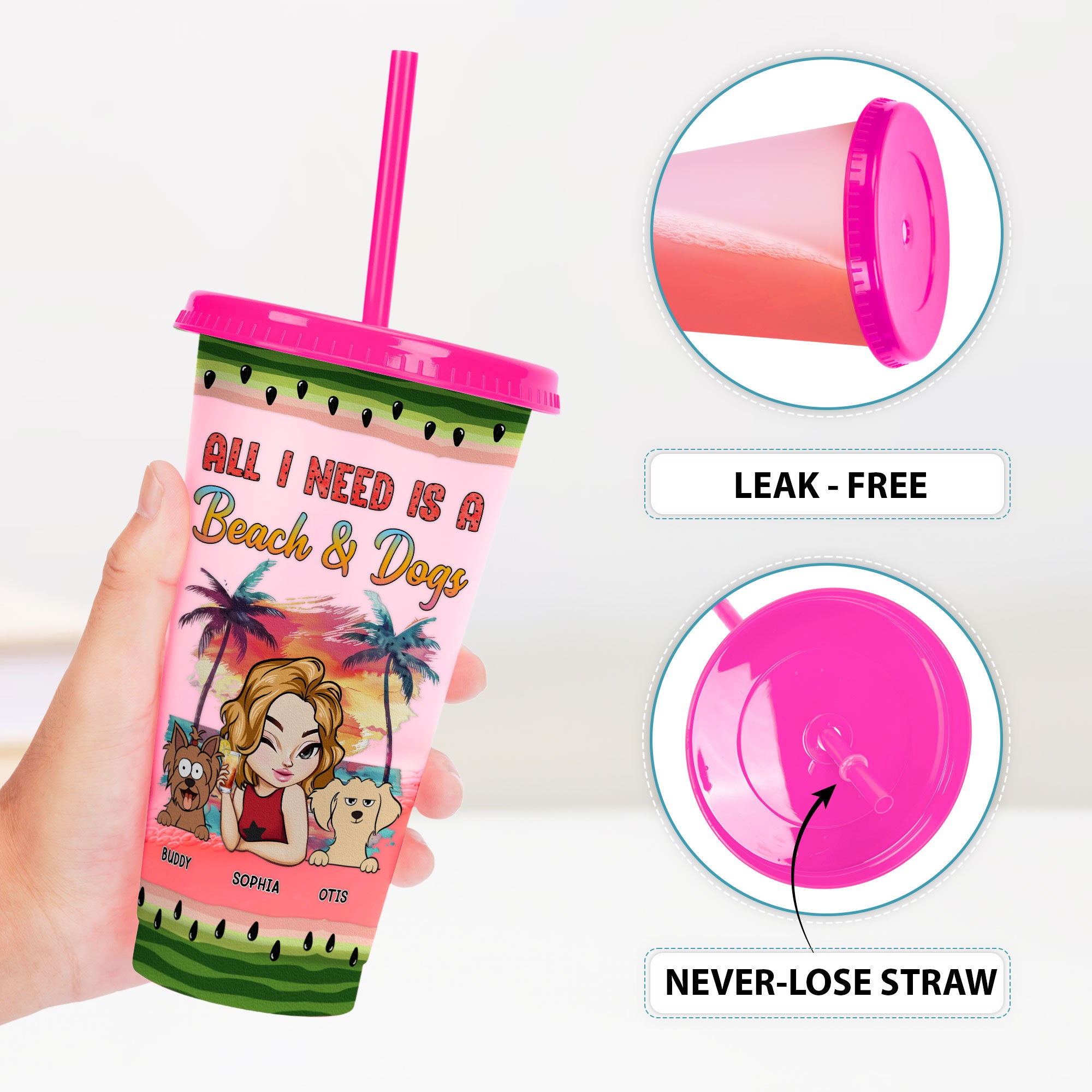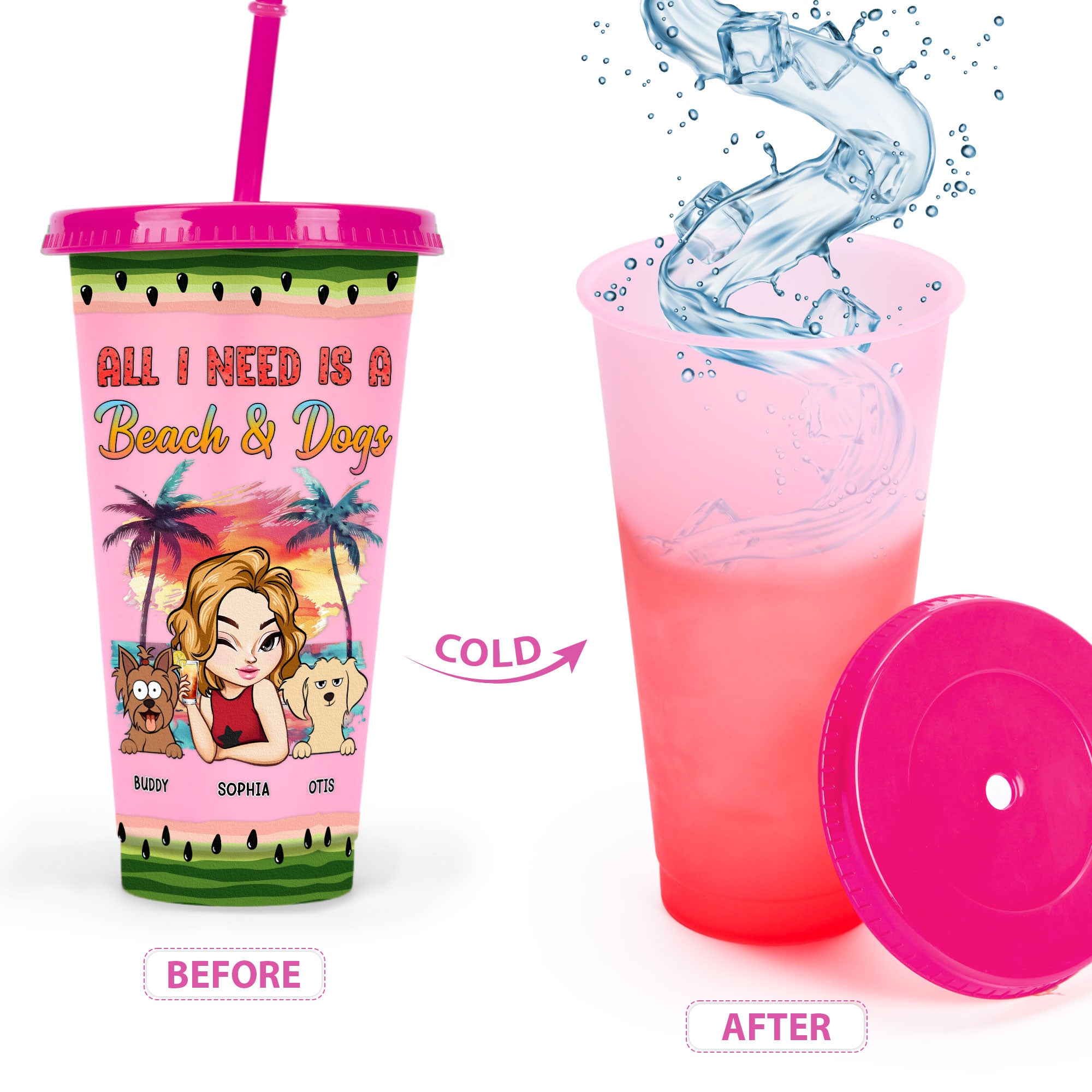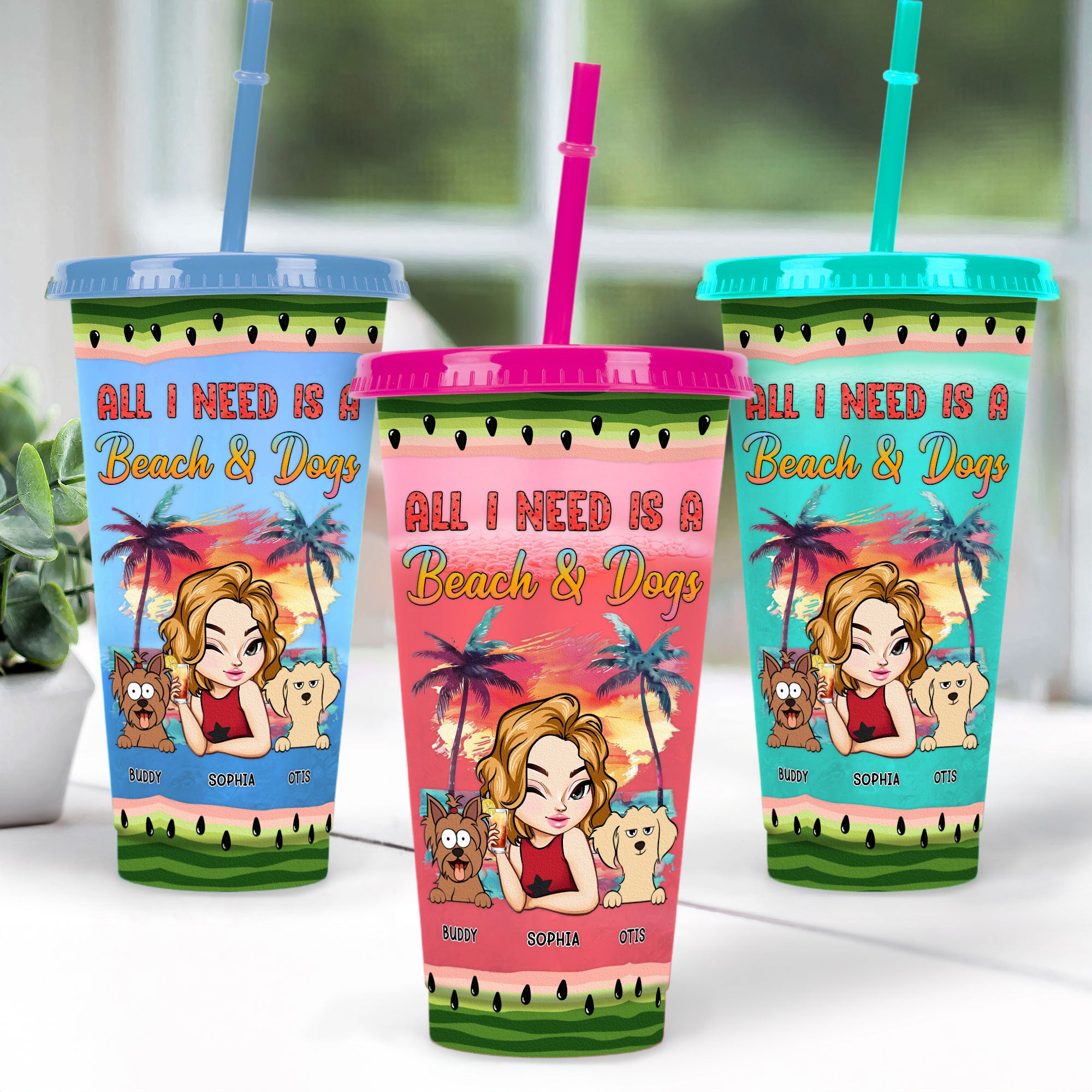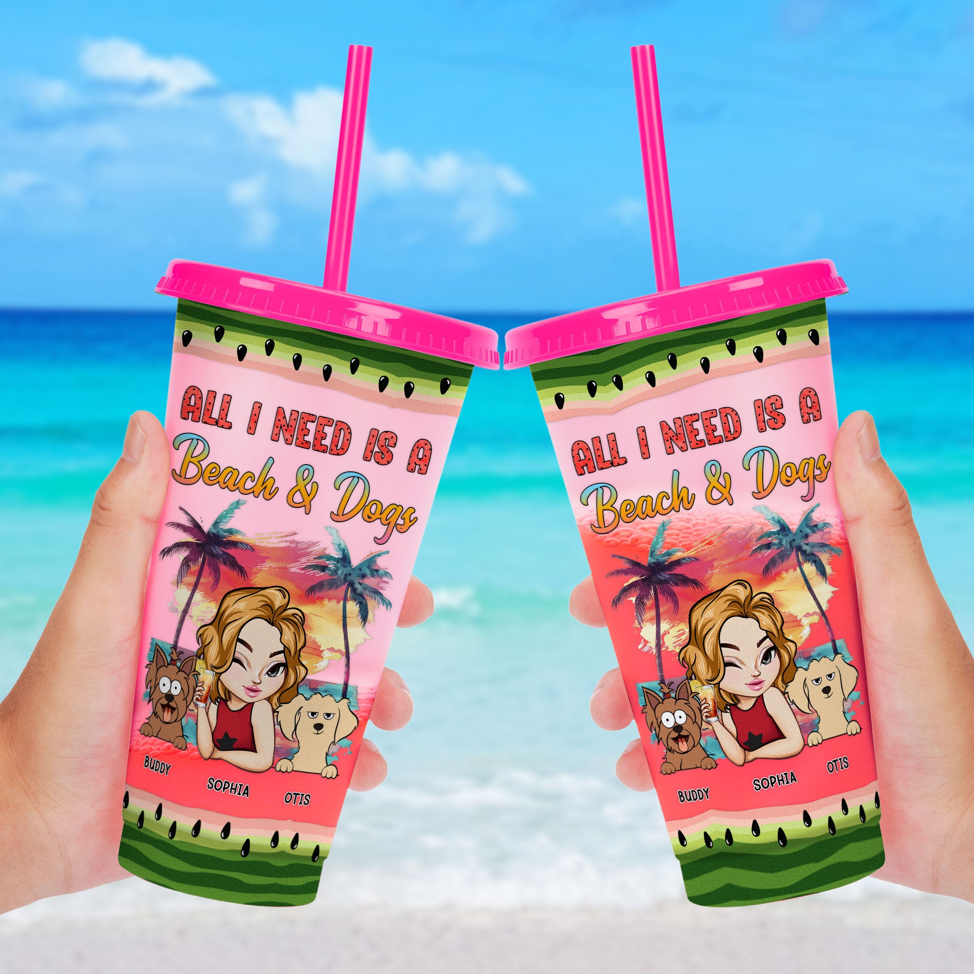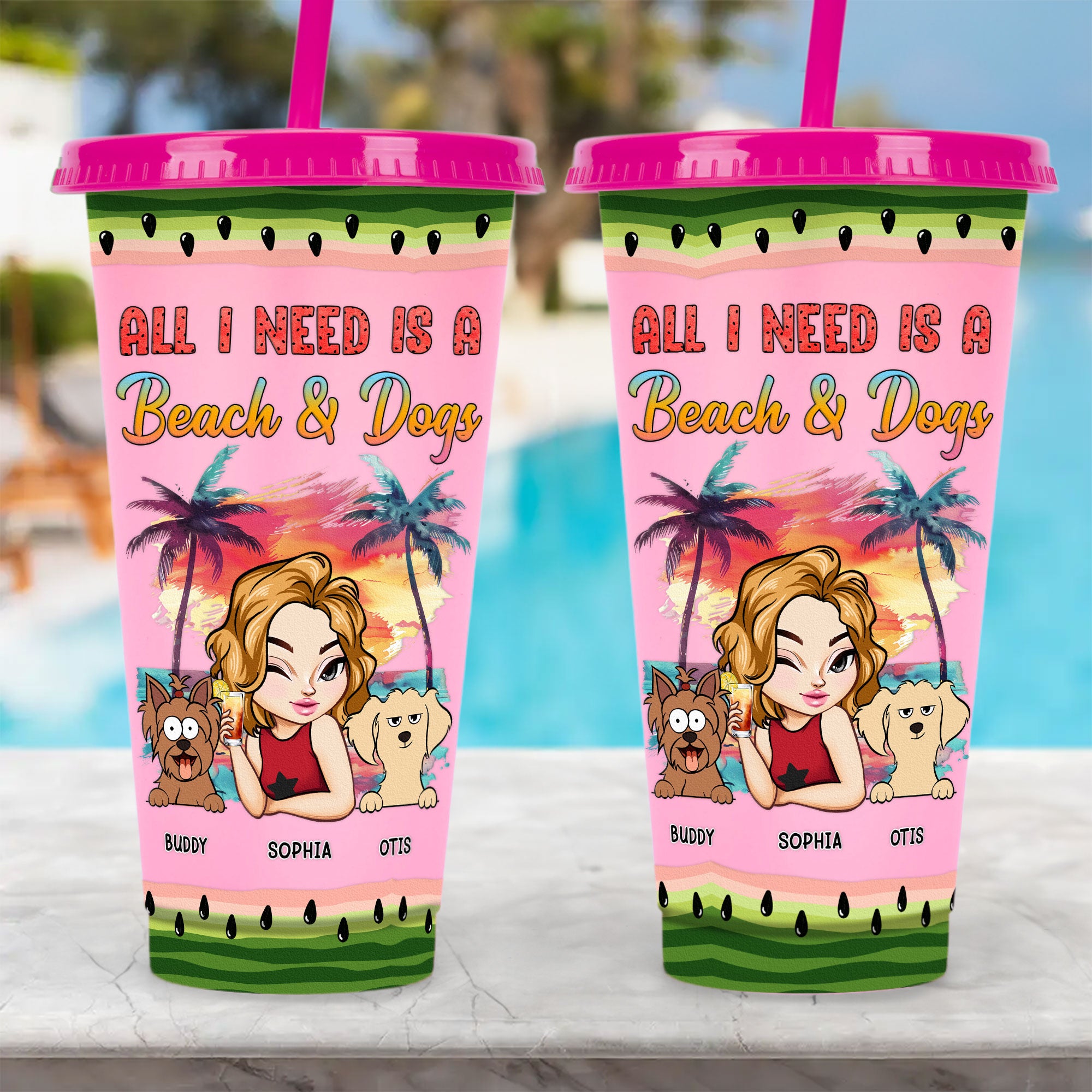 Customize it with your name, a character that looks just like you, and dog breeds to make it truly yours. Ideal for yourself, friends, and family, this cup is the perfect companion for vacations, beach trips, pool parties, and birthday celebrations. With its summer vibe and personal touch, it’s sure to bring a smile to your face and keep you hydrated and happy all season long.