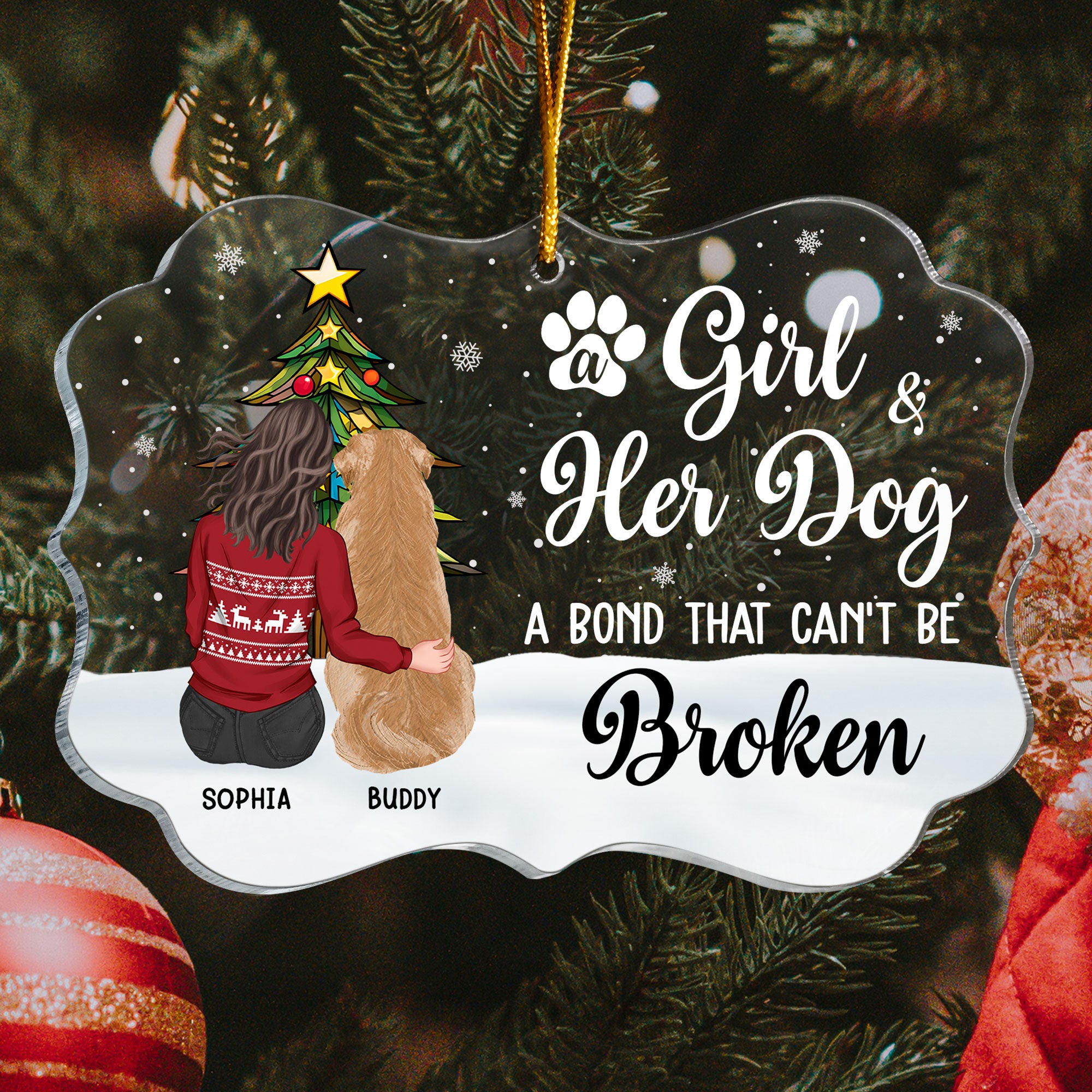 Whether you're decorating your tree or gifting a dog-loving friend, this ornament is a heartwarming addition to any Christmas décor. It’s a thoughtful and personalized gift that captures the joy and companionship dogs bring to our lives during the festive season. Make this Christmas extra special by honoring your dogs with this charming keepsake!