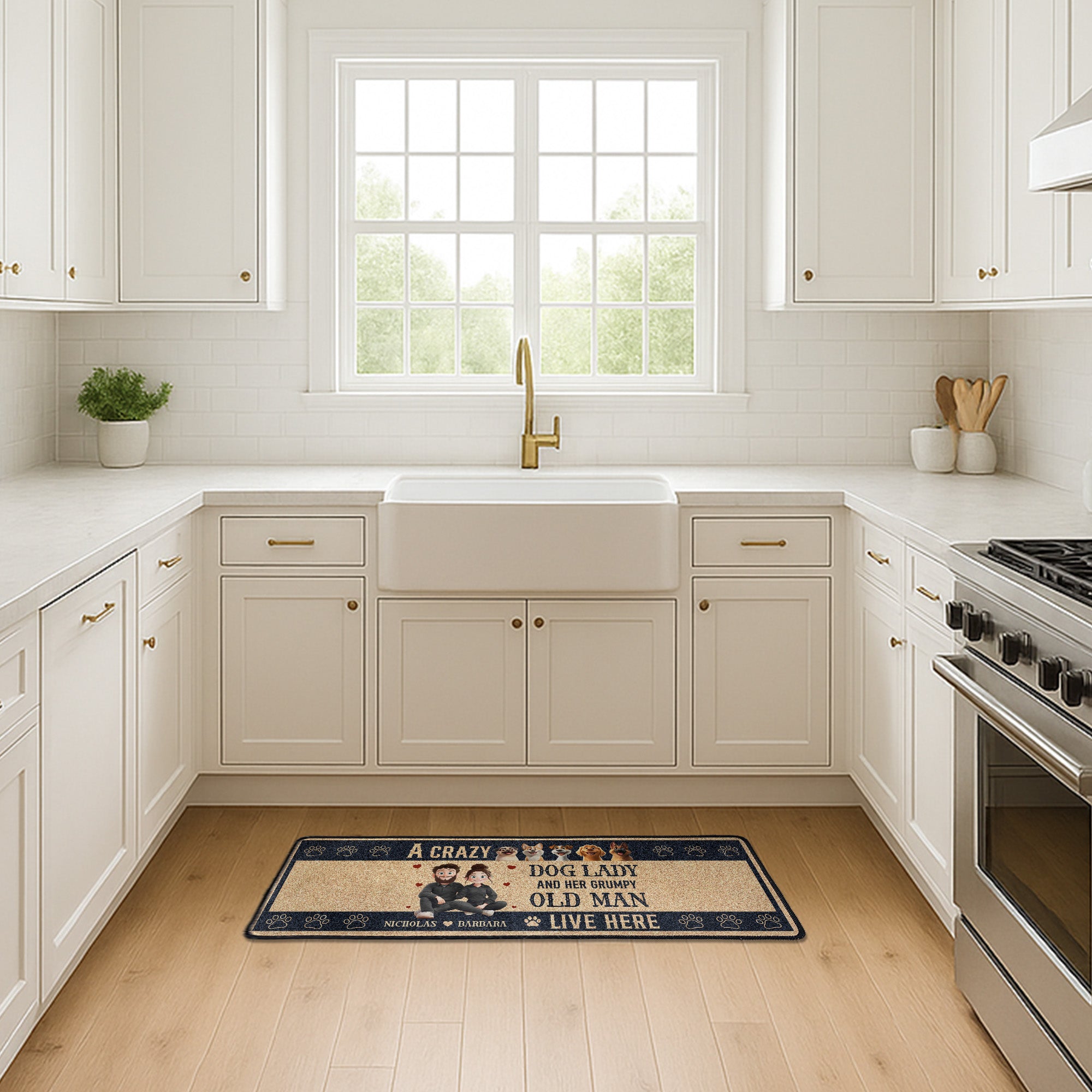 Tap into your fun and quirky side with our personalized runner rug, the perfect piece for a couple who share their lives with the joy and playfulness of their beloved dogs. This unique runner rug subtly communicates something entertaining: a household led by not just a passionate canine lover, but also her endearingly grumpy companion. It's a charming nod to family bonding, togetherness, and the unbreakable bonds that form between humans and their canine pals. Ideal for dog enthusiasts, this rug presents an opportunity to express your family's individuality.