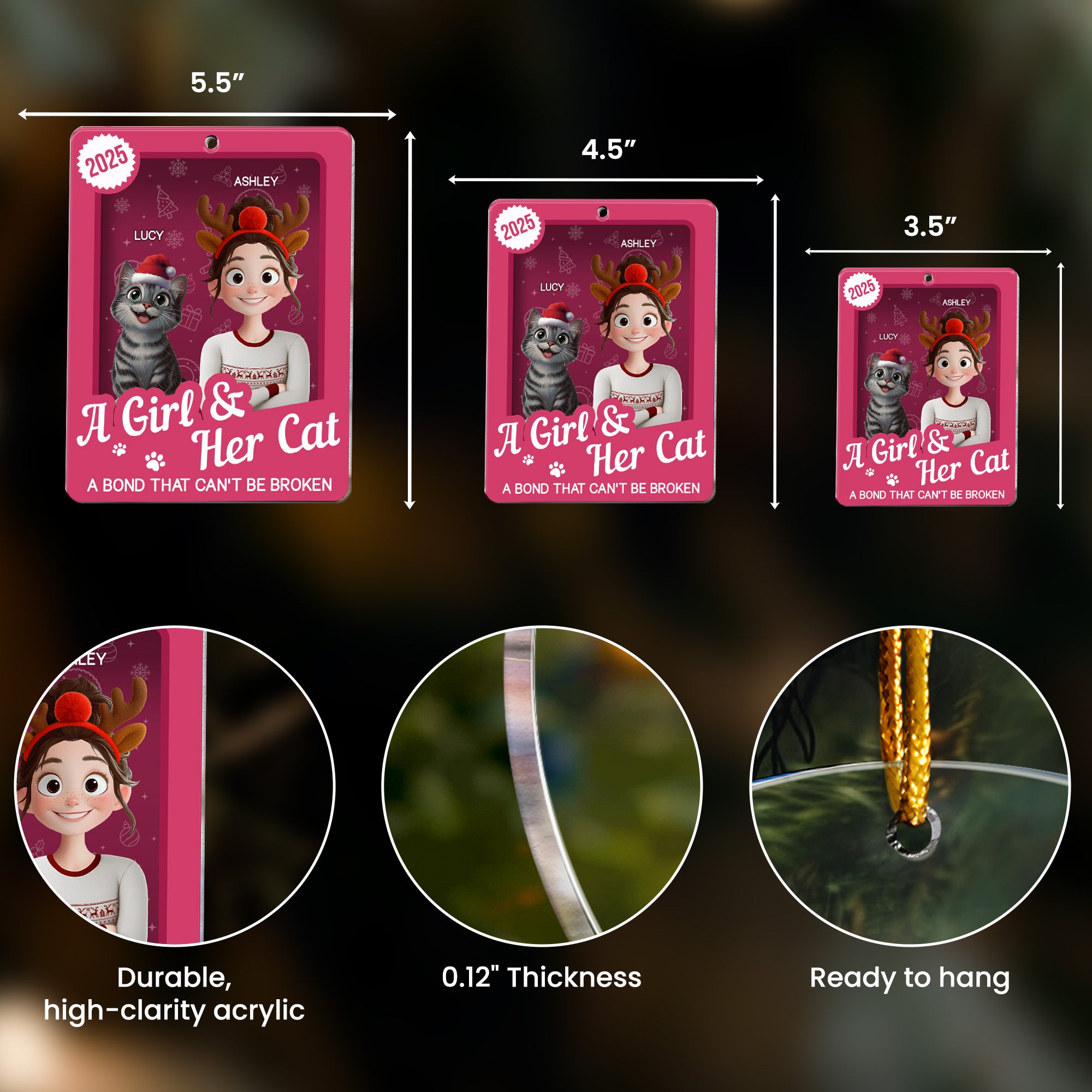 Celebrate your bond with your furry friends with our special "A Girl & Her Cats Has Unbreakable Bond Toy Box", the perfect Christmas gift for every cat lover out there. This unique item is not just a typical ornament; it is a Custom Shaped Acrylic Ornament designed to echo your love for your pet. Whether you call yourself Cat Mom, Fur Mom, or Cat Dad, this piece speaks volumes about your love for your fur baby. Keep in mind, this isn't just for Christmas, this ornament can adorn your place year-round, reminding you of your lovely pet and the mutual love you share.