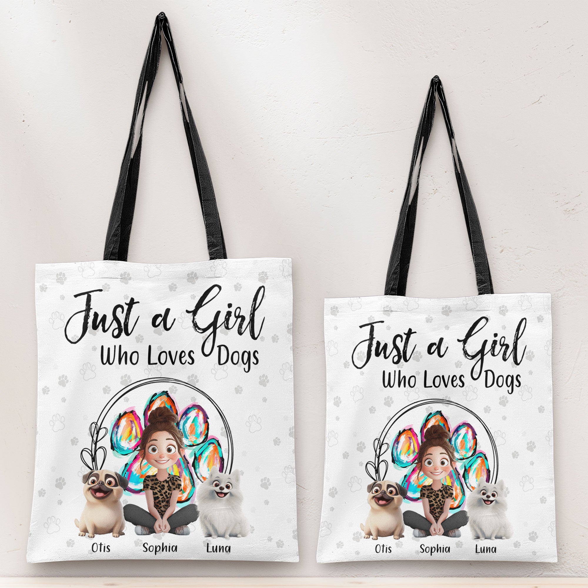 Carry your love for dogs wherever you go with our Personalized Tote Bag, featuring the fun and relatable phrase: "Just a girl who loves dogs." Perfect for dog moms and pet lovers, this tote is as practical as it is adorable. Customize it with cartoon designs of your dog, matched to their breed and personality, making it a unique accessory that’s all about you and your furry best friend.