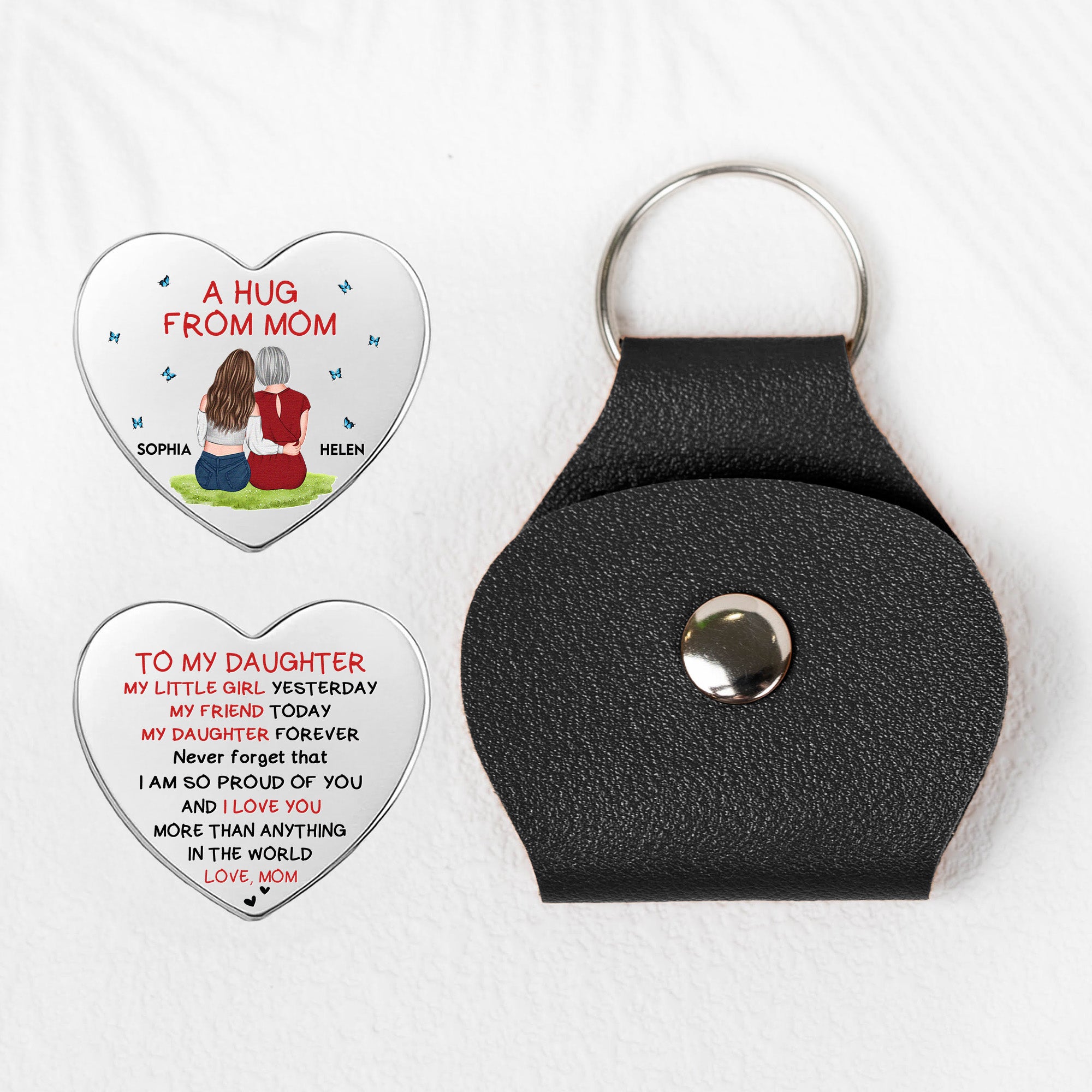 Experience the joy of gifting something truly heartfelt with our Personalized Leather Pocket Hug, a beautiful representation of deep bond and resemblance. This exquisite product, designed as a token of a mother's affection, is meant for a beloved son or daughter. With 'A Hug From Mom' subtly engraved, this pocket hug serves as a cherished reminder of unconditional love that can warm their hearts daily.