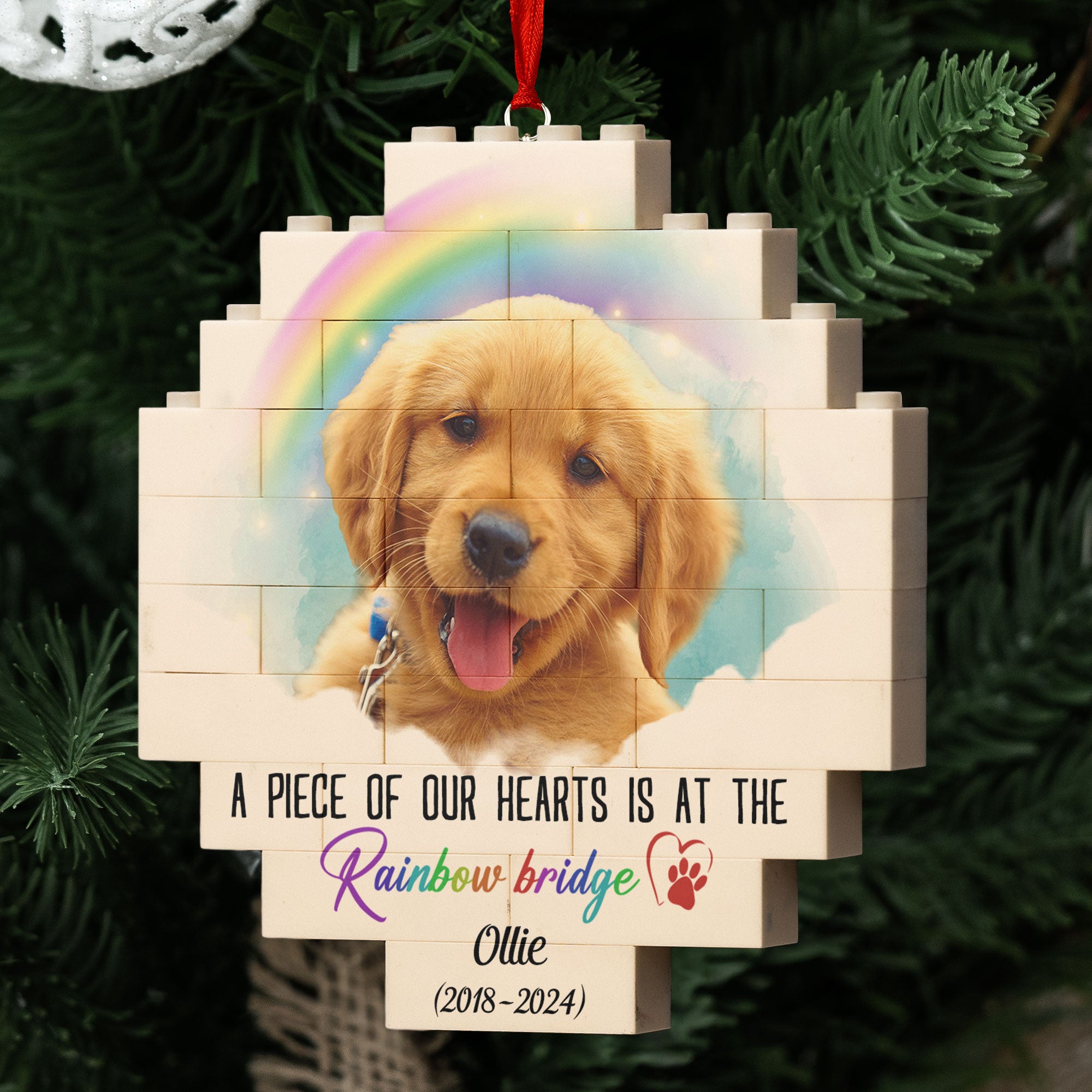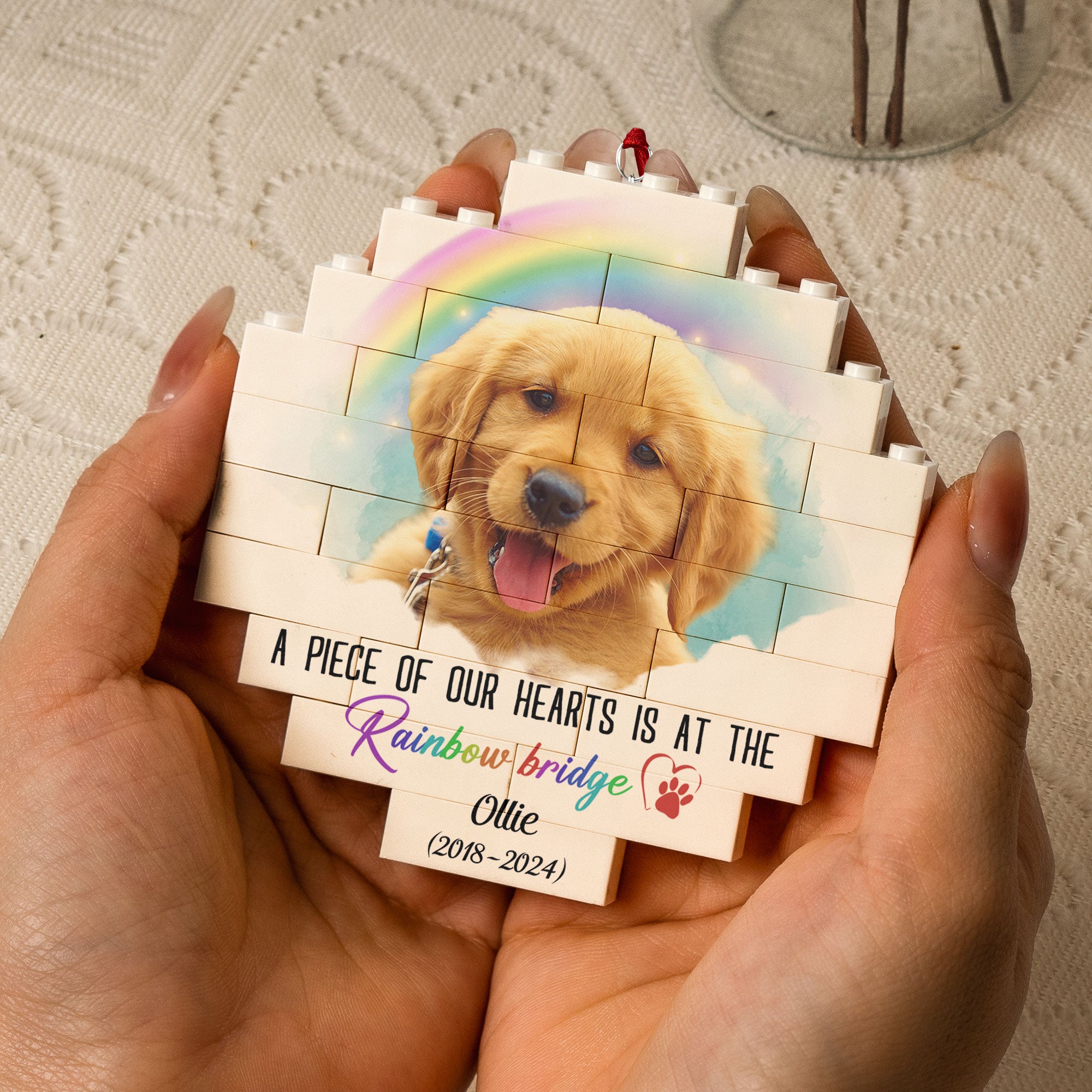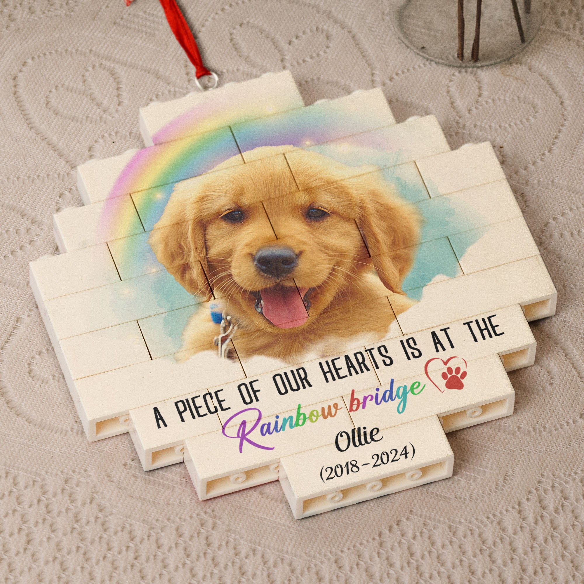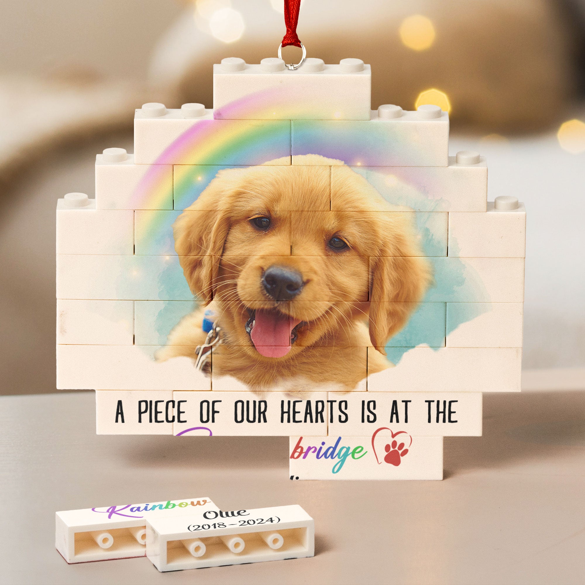 A Piece Of My Heart Is At The Rainbow Bridge - Personalized Buildable Christmas Photo Ornament is a beautiful pet memorial ornament designed to honor the memory of your beloved pet. This personalized ornament features a customizable pet portrait that captures the spirit of your furry friend, making it a meaningful tribute for those who've experienced the loss of a cat or dog. The unique buildable puzzle design allows you to assemble it as a touching way to keep your pet close during the holiday season. This pet sympathy gift offers comfort and serves as a lasting reminder of the love shared with your pet. A perfect pet bereavement gift for dog lovers, cat lovers, and those missing their loyal companions at the Rainbow Bridge.