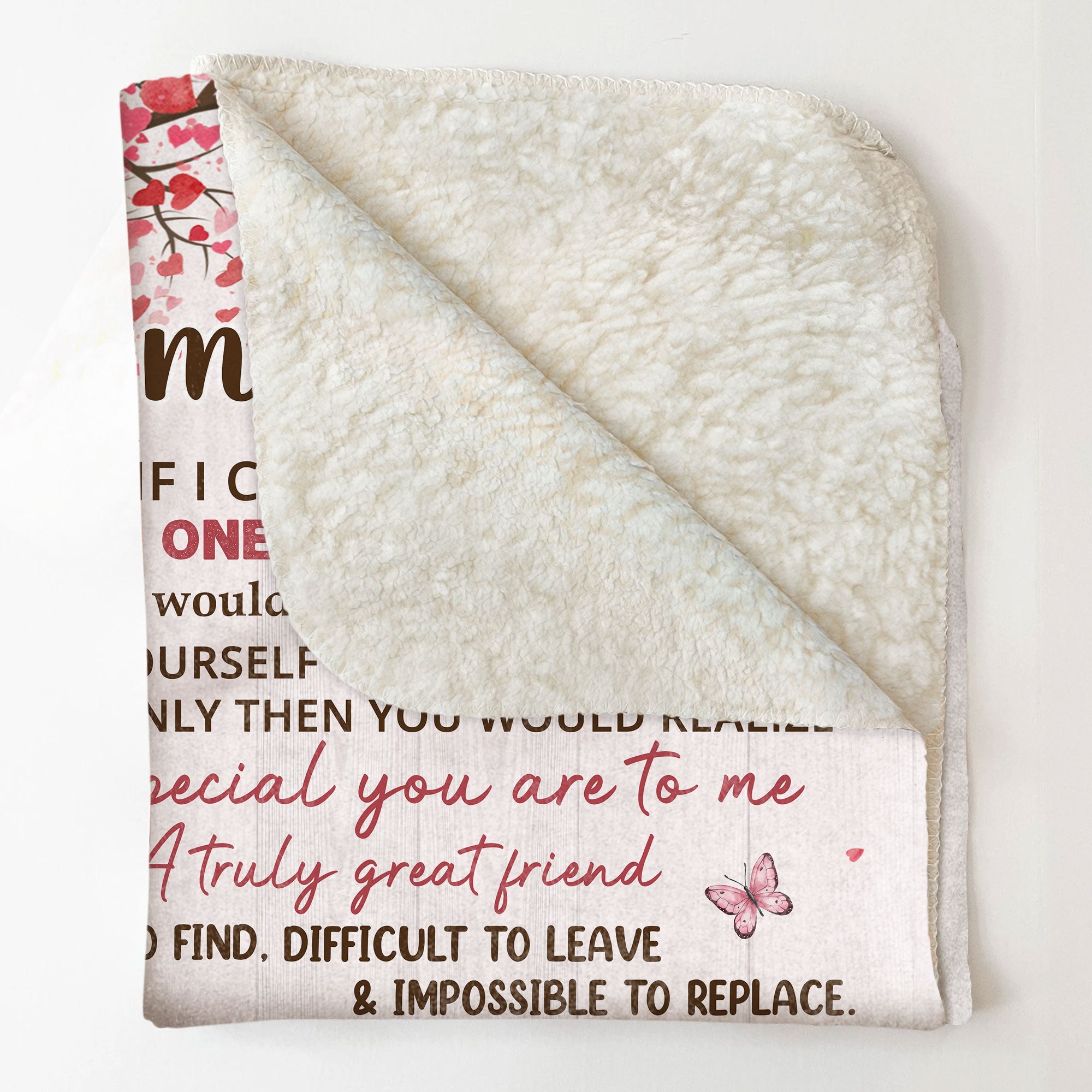 Embrace the warmth of friendship with the 'A Truly Great Friend Is Hard To Find Friendship - Personalized Blanket.' This cozy blanket celebrates the precious bond of true friendship. Customize it for a personal touch, making it a thoughtful gift for your closest friend. Whether you're near or far, this blanket wraps your friend in warmth and love. Share the joy of the season with this personalized gift, a perfect reminder of the enduring connection that lights up your life. Perfect birthday gift for her, besties, friends, sister, soul sisters.