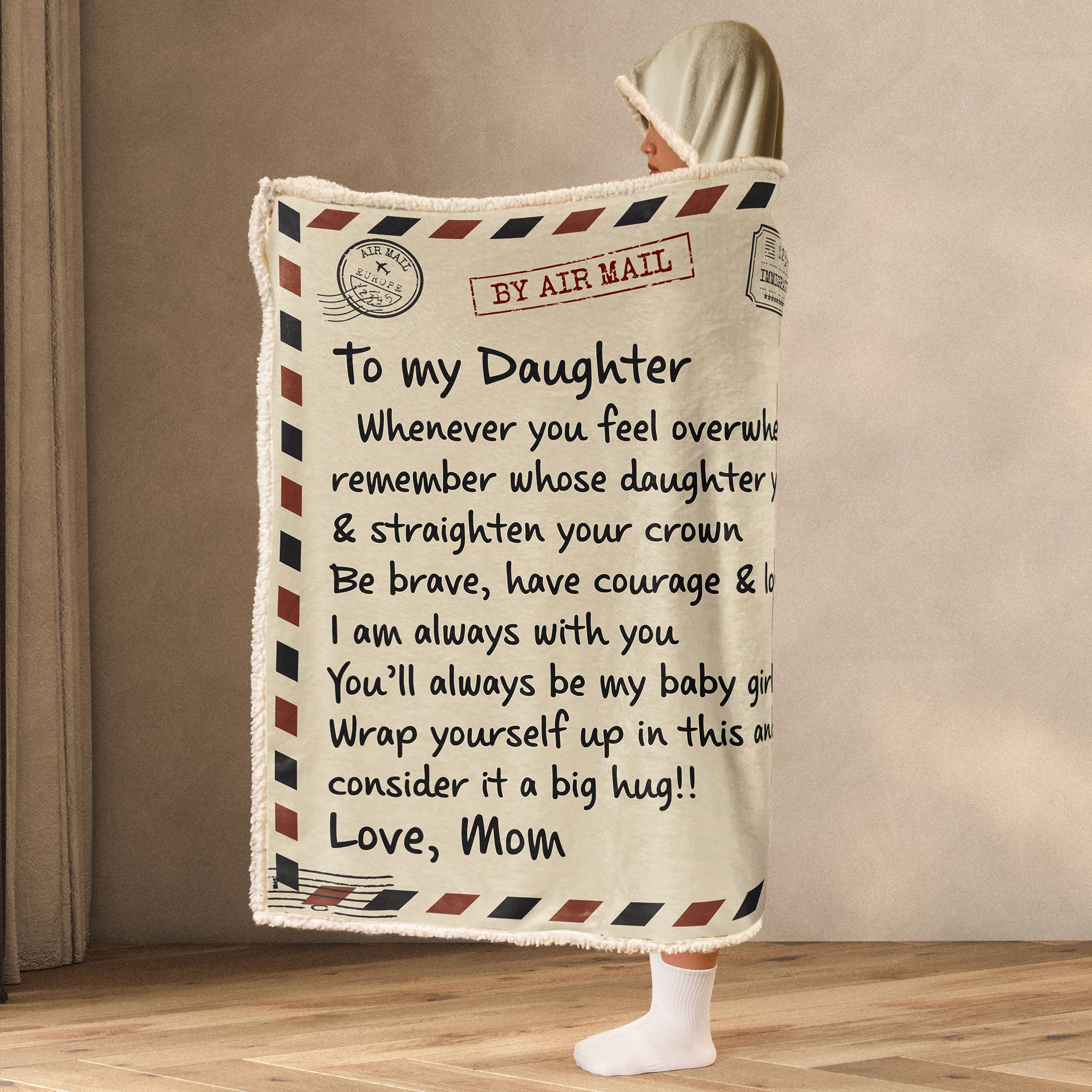 Whether she’s snuggling up at home, lounging on the couch, or seeking comfort during tough days, this hooded blanket is like a big hug from Mom. The thoughtful message encourages strength, courage, and love, making it the ideal gift for any occasion—whether it’s Christmas, birthdays, or just because.