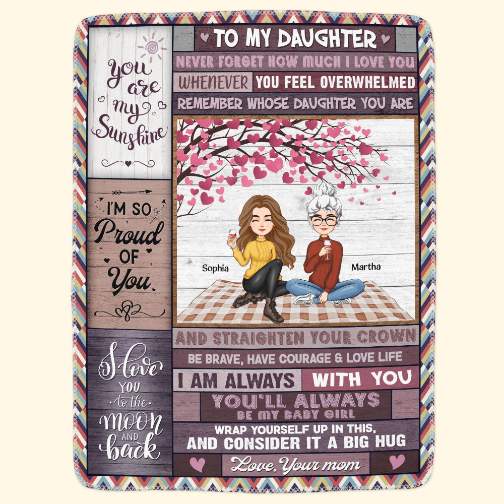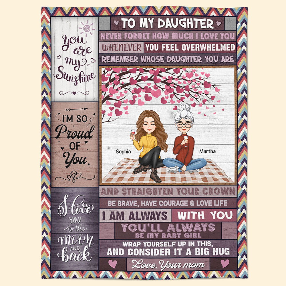 Make your darling daughter feel extra special with this heartwarming customized blanket. Personalized with her name, it's a cherished gift for Christmas, birthdays or any time you want to wrap her up in love. The endearing message "Always be my baby girl" is beautifully embroidered in a sweet cursive font. High-quality materials ensure it will become a cozy keepsake she'll treasure for years. Drape it over her bed, cuddle during storytime, or take it along for sleepovers. She'll adore seeing her name on this sentimental blanket every time she snuggles up with it. Let your little princess know she'll always have a special place in your heart with this personalized "Always be my baby girl" blanket. An ideal gift for girls of all ages, it's a unique way to remind her that no matter how big she gets, she'll always be your darling daughter