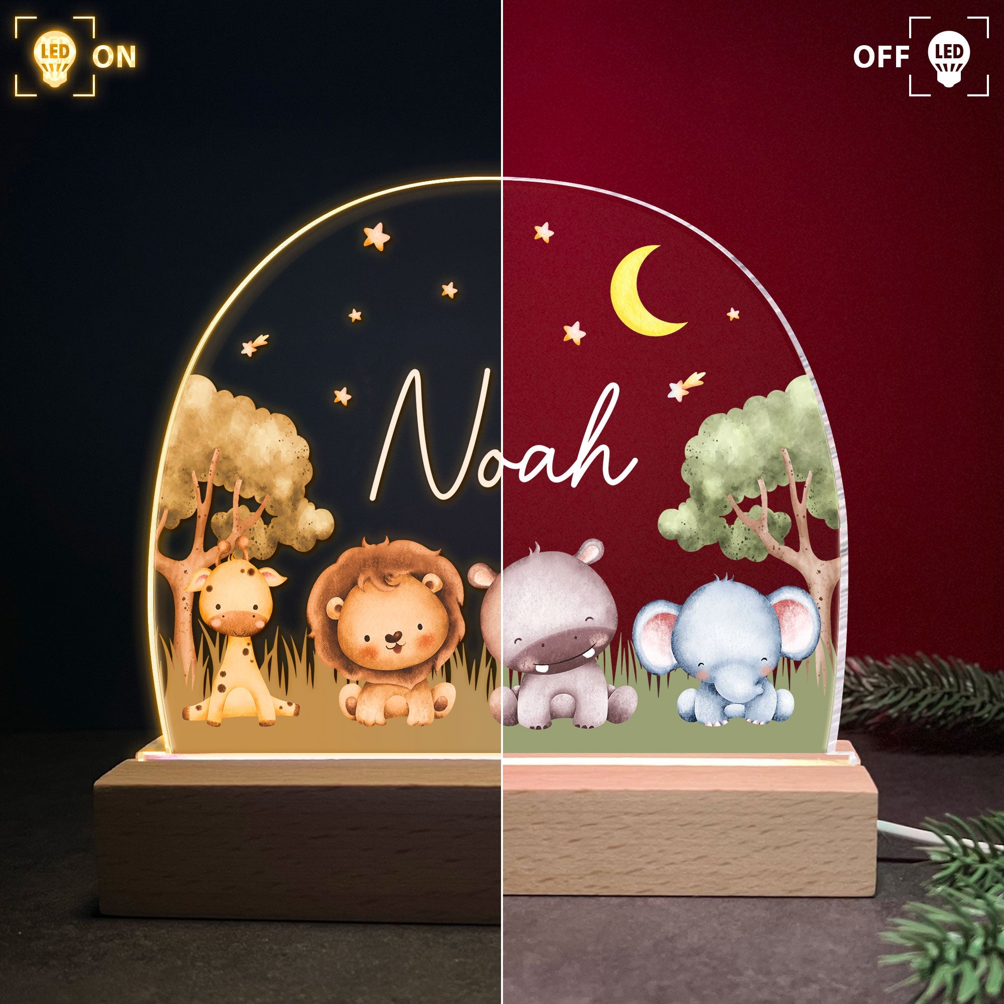 This Personalized 3D LED Light Wooden Base is an enchanting birthday gift for kids and grandkids alike. Its adorable animal design doubles as a comforting night light, and you can add a custom name to make it a uniquely personal present. This 3D LED light, complete with a wooden base, is sure to bring joy and warmth to any child's room. It's a perfect gift for celebrating birthdays and creating cherished memories with your little ones.