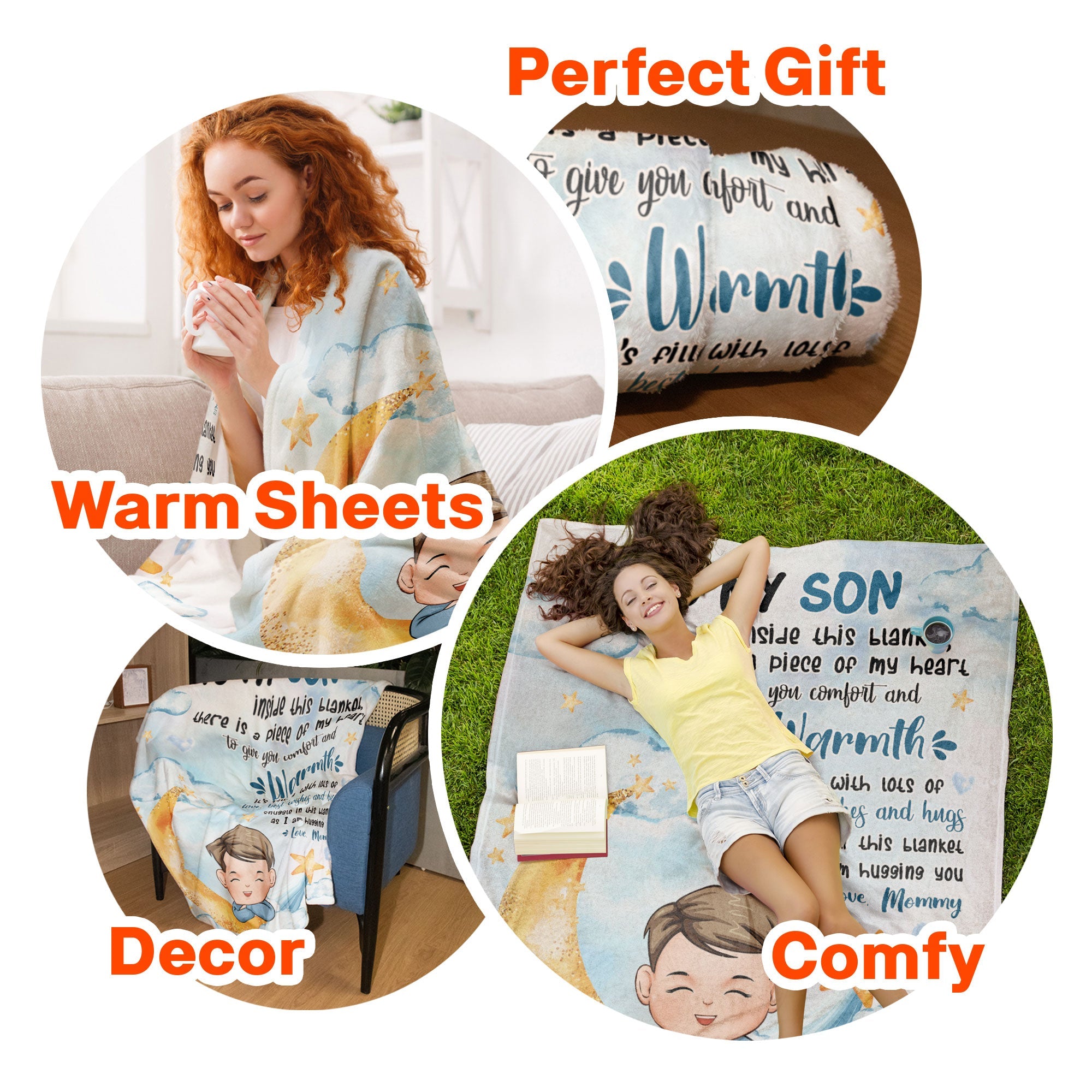 A custom blanket is perfect for gifting your son on his birthday, graduation, or just because you're proud of him. Watch his face light up when he realizes you created a blanket just for him. It shows how much you care about understanding and supporting his interests. Make his blanket extra special by including photos of your family, his friends, or favorite places. The personal touches will remind him of the good times you share. Give your son a unique blanket that celebrates the amazing person he is becoming. For parents, a custom blanket is a meaningful way to connect with your son.