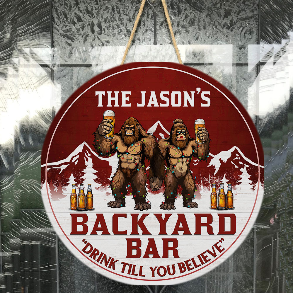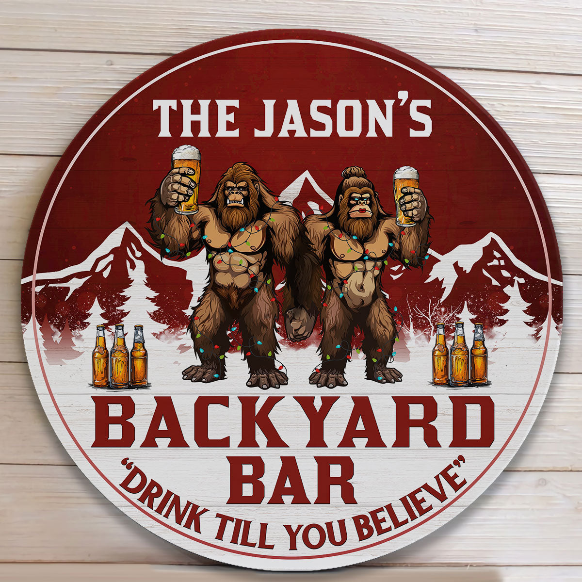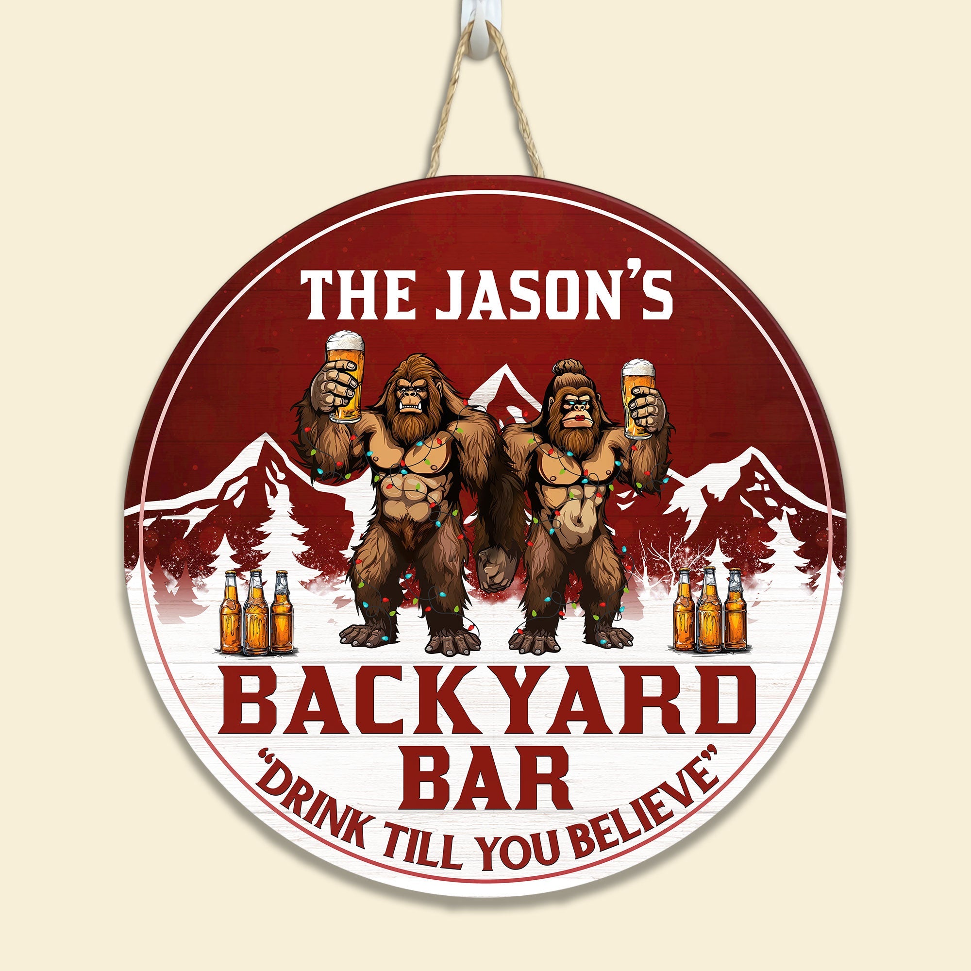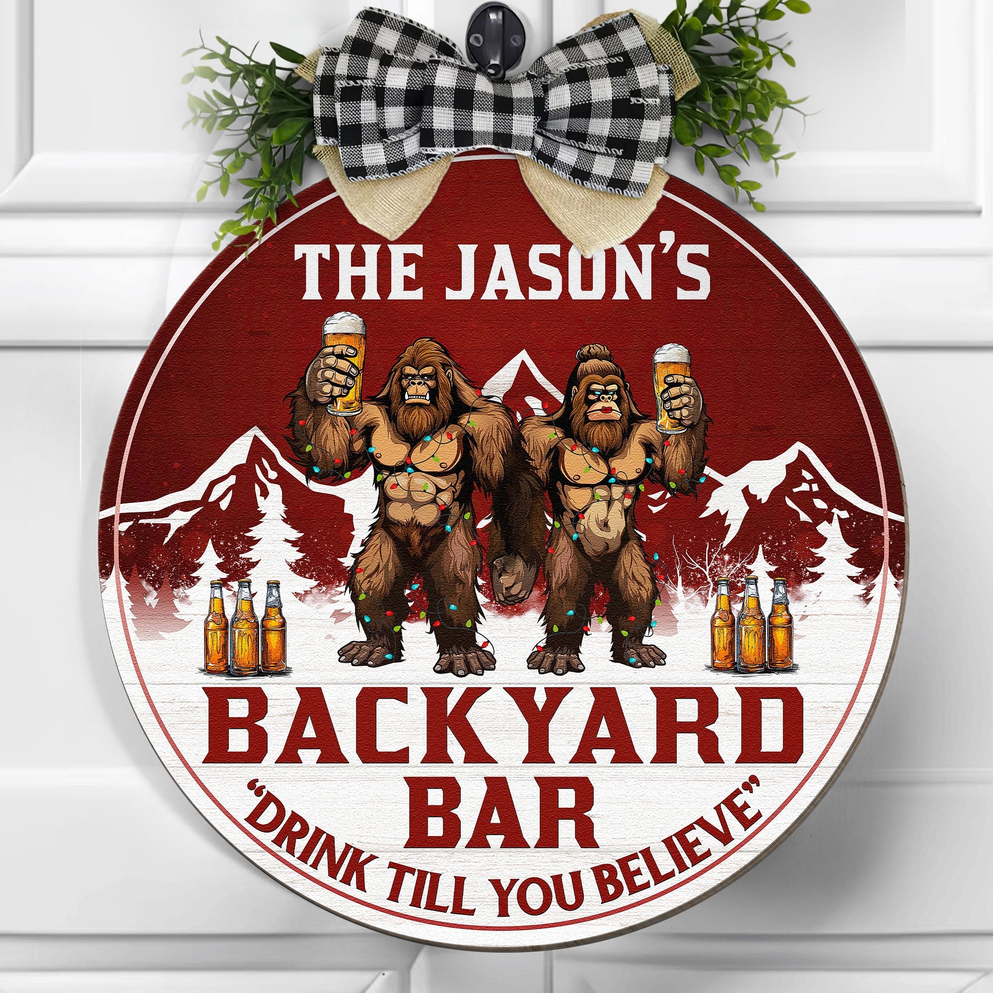 The Personalized Wood Wreath Home Decor Gift for Bigfoot Lovers is a unique and playful way to add some personality to any home or office. A perfect housewarming, birthday, or Father's Day gift for your dad, husband, boyfriend, or any whiskey or wine lover who enjoys camping and outdoor adventures. Personalize it with their name or nickname to create a custom sign that's sure to make them smile. Whether you give it to your rugged, adventure-loving partner for their birthday, Father's Day, Christmas, or just because, this backyard bar sign helps set the mood for fun times around the campfire or in their man cave. For the outdoor adventurer who also loves to unwind with a cold beer or whiskey, this personalized wood sign is a thoughtful and humorous gift.