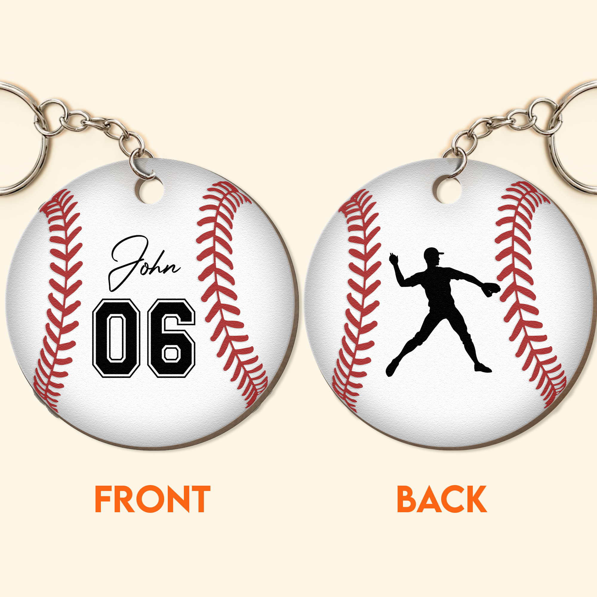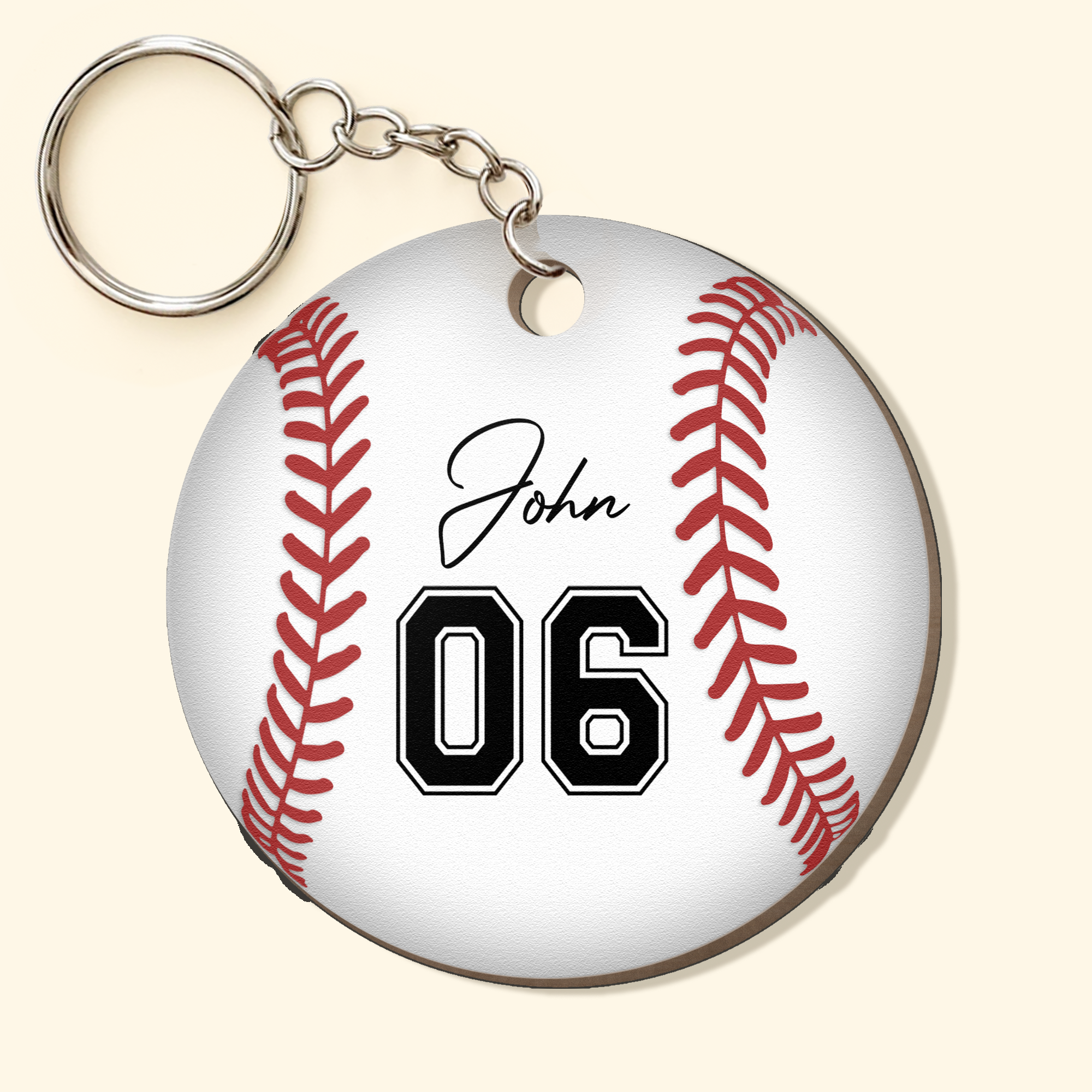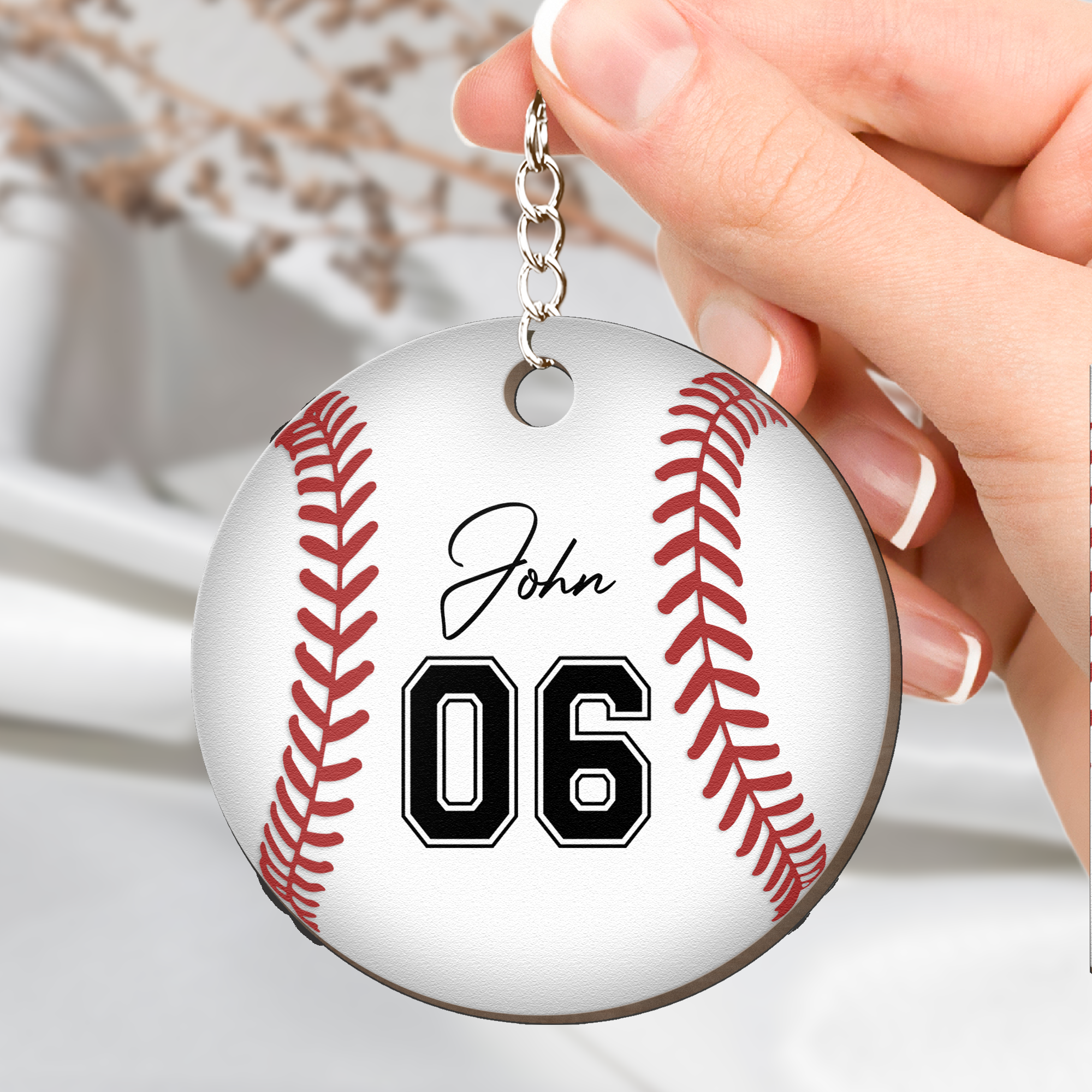 MESSAGE: Baseball Ball Wooden Keychain Custom Gift For Baseball Players, Baseball Fans, Baseball Lovers.