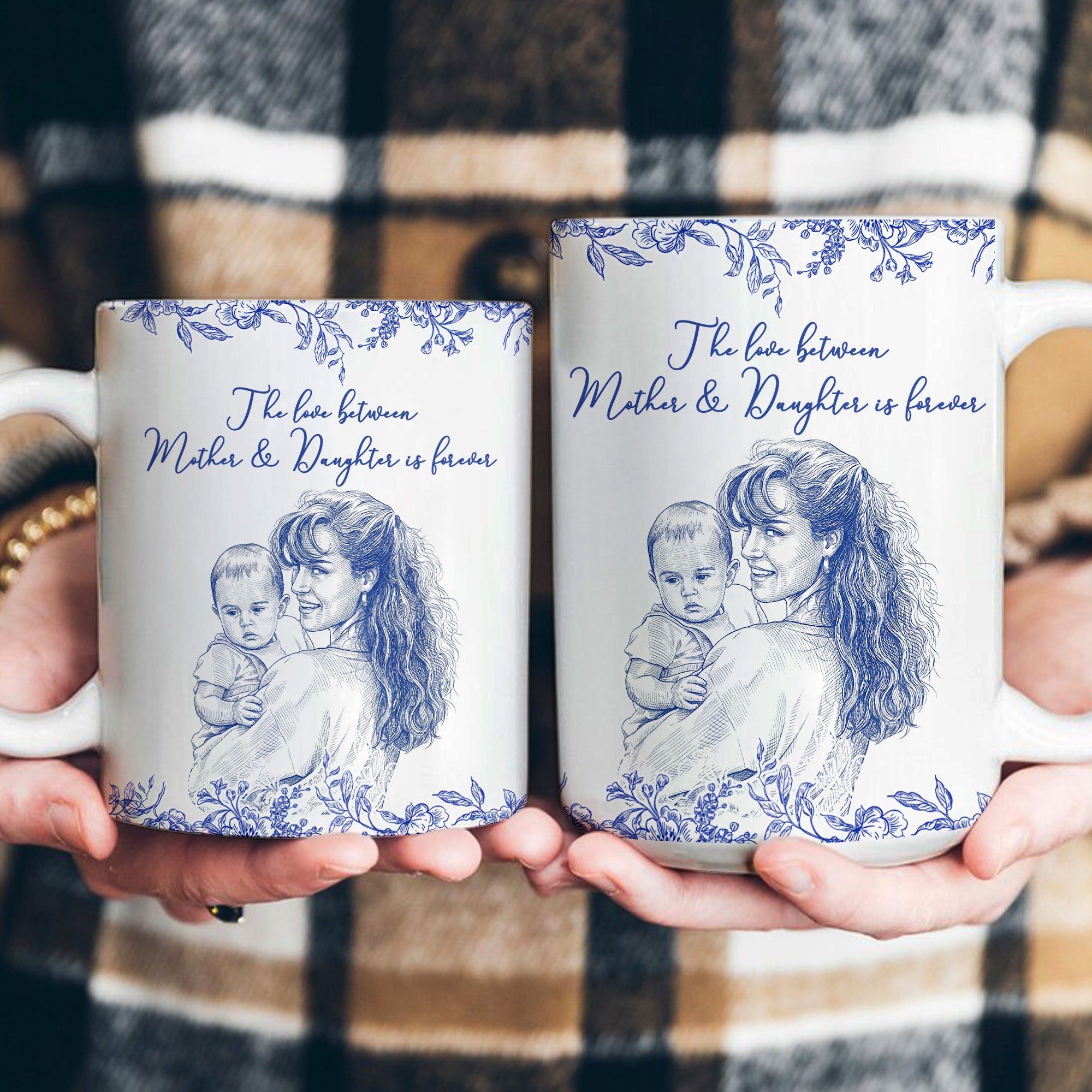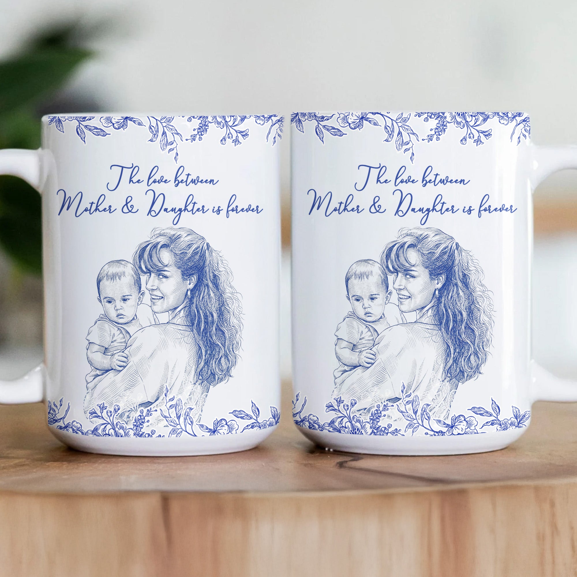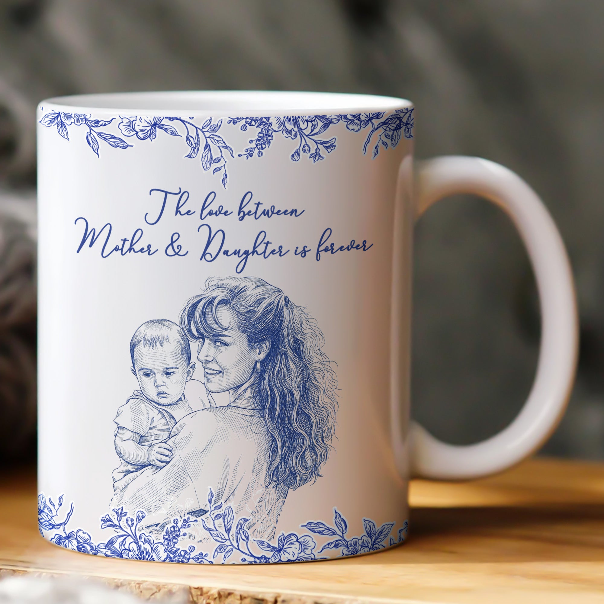 The highlight of this exceptional gift is the accompanying heartfelt message that subtly communicates the unbreakable connection between moms and their daughters. The sentiment emphasizes the eternal love between a mother and daughter, perfect for making any mom or mum feel special and loved. With this mug, you're not just giving a gift; you're giving a tangible representation of your unique bond and the tender emotions you share. So why wait? Let this special woman know how much she means to you with a thoughtful gift that she'll cherish forever—order your personalized mug today.