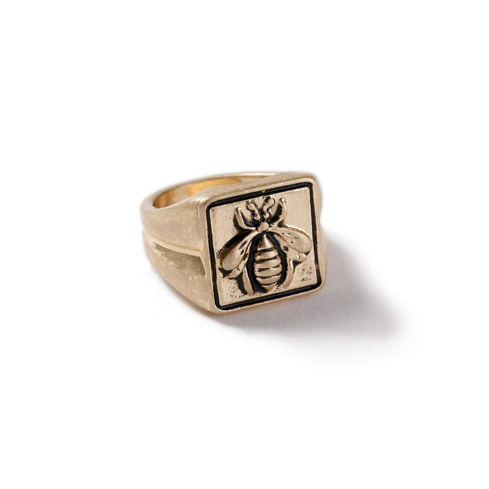 Father's Day Gift Goldtone Tone Bee Design Signet Statement Ring