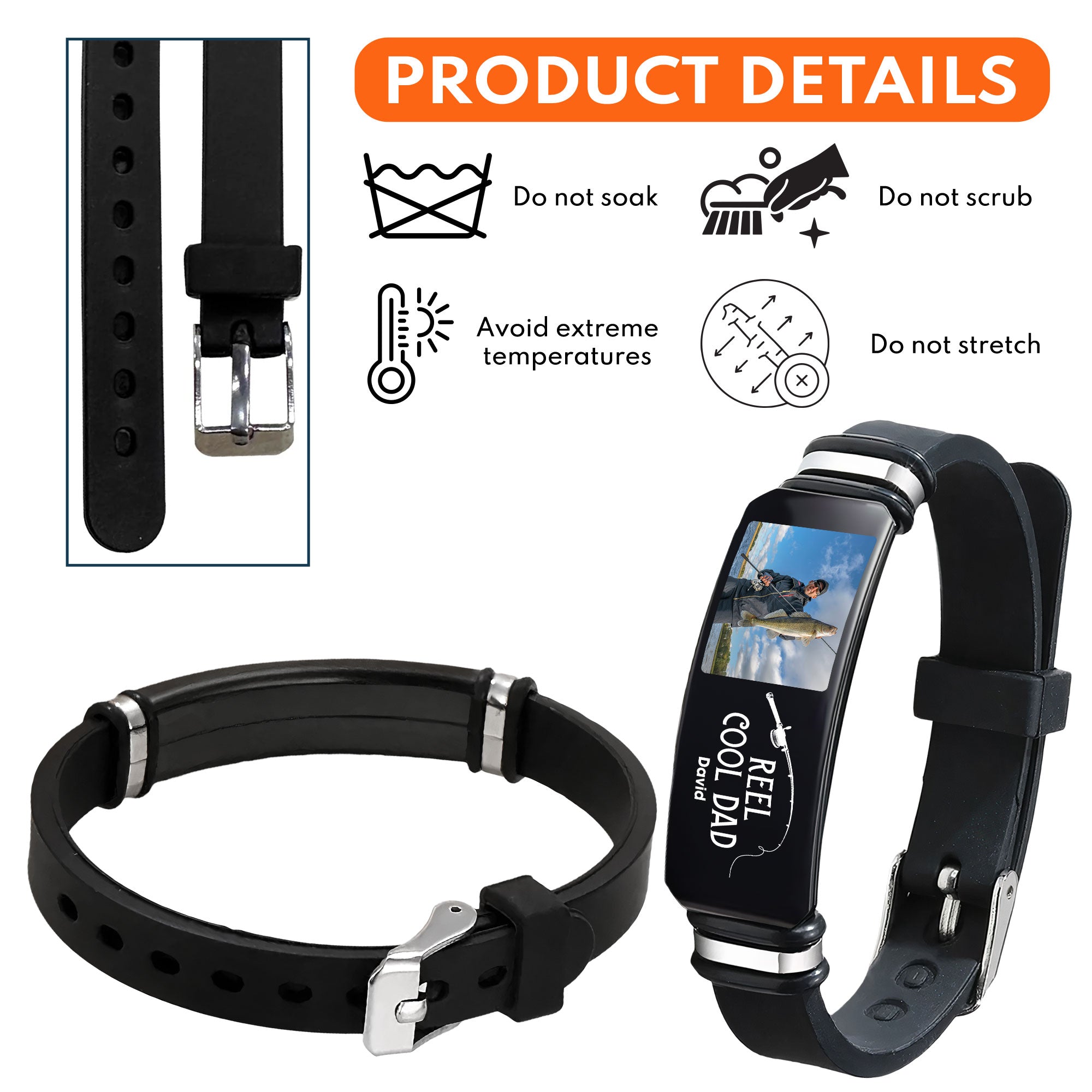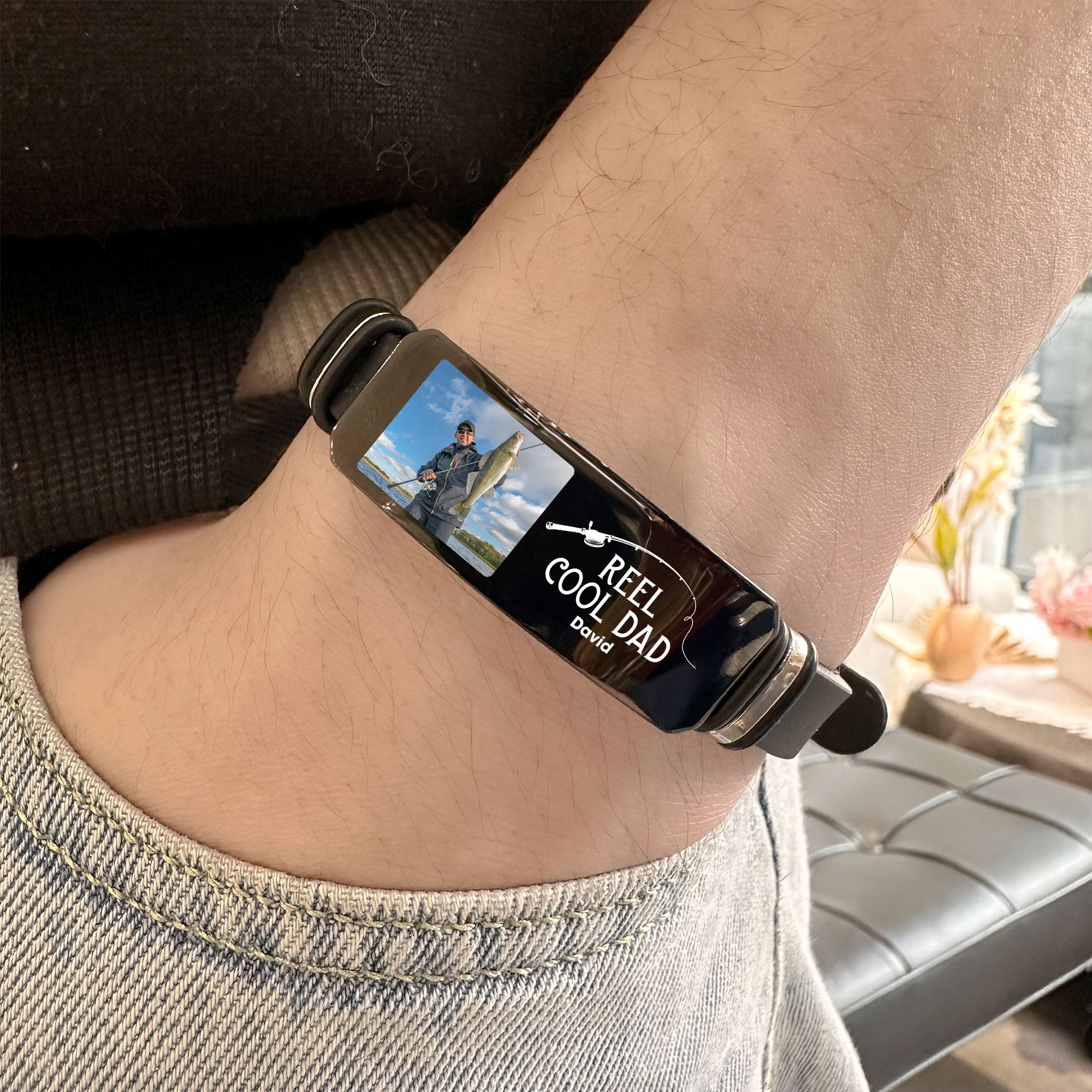 Perfect for Father's Day or as a thoughtful gift for fishing enthusiasts, this bracelet is more than an accessory; it's a personalized token of appreciation for the cool dad in your life. The customizable photo adds a sentimental touch, immortalizing cherished moments spent by the water.
