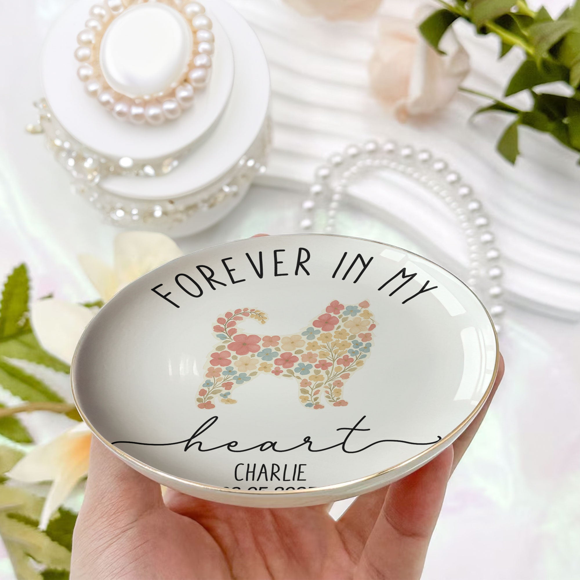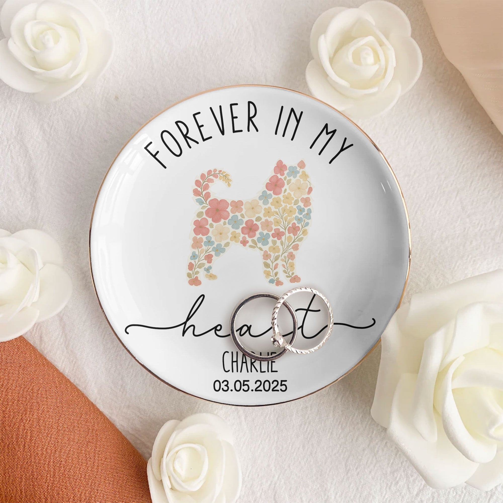 Perfect for occasions like memorials, holidays, or just as a loving gesture, this jewelry dish carries intangible love and memories. The message subtly weaved into the design speaks volumes, reminiscent of your eternal love and the place your pet holds in your heart. The dish is a functional yet sentimental accessory, offering a place to hold cherished trinkets while reminding you of your beloved pet. So why wait? Order now and find solace in the sweet memories of your dog or gift it to someone who shares your love for pets.
