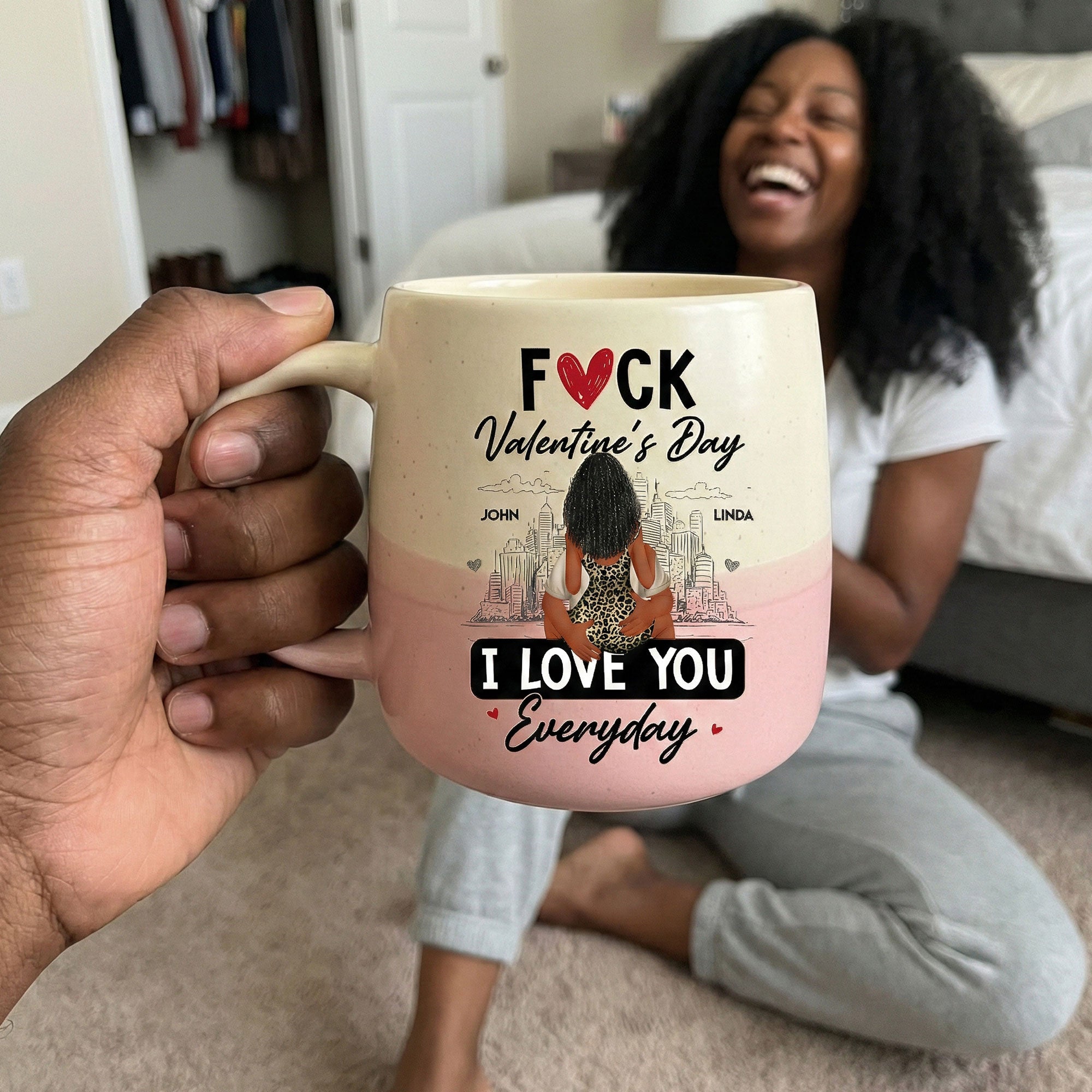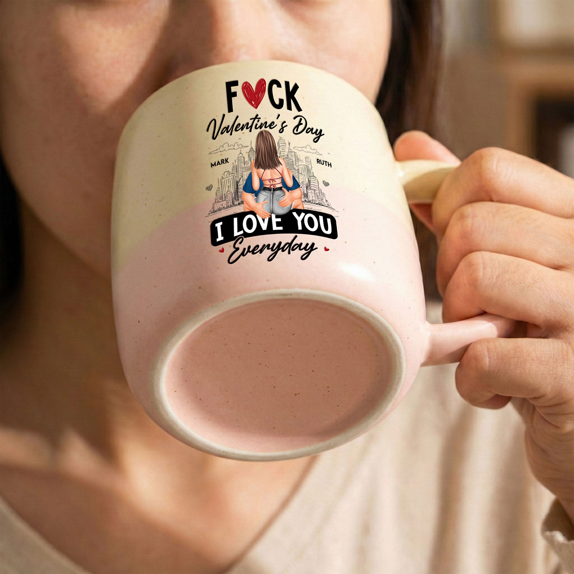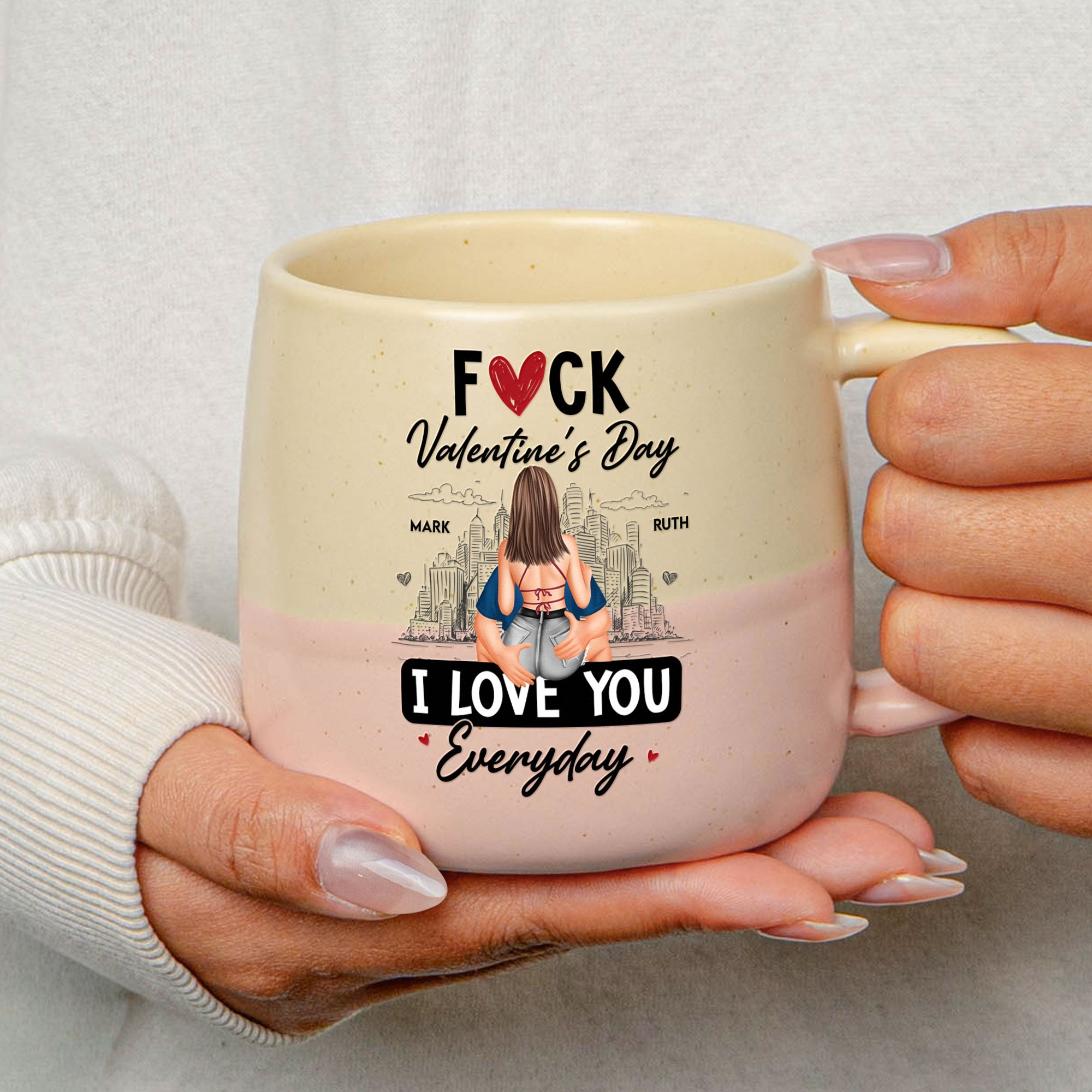 Introducing the "Fuck Valentine's Day I Love You Everyday" Personalized Two-Tone Mug, the perfect way to remind your significant other of your eternal love. This high-quality mug is suitable for couples who cherish daily expressions of love more than once-a-year events. It sleekly captures your unique bond and mutual affection, making it an exquisite surprise not only on birthdays, Christmas, and anniversaries but also on any casual day when given as a token of your everyday love.