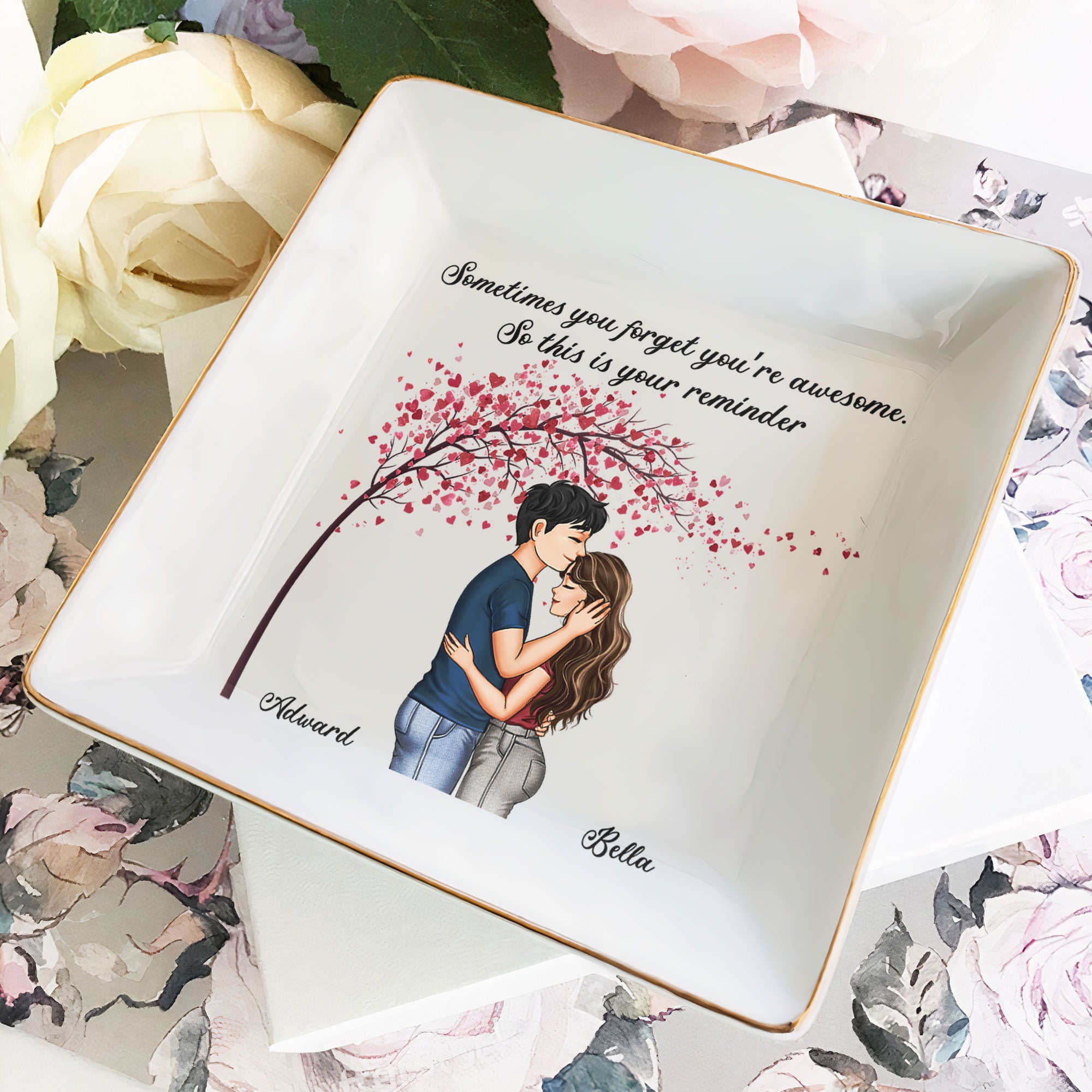 The dish's thoughtful design and personalized touch make it an ideal gift for anniversary, birthday, or any occasion when you want to express your affection for your girlfriend or wife. Whether it's a romantic gesture to mark a special day or simply to remind her of the bond you share, this jewelry dish serves as a daily reminder of the love that lights up her life.