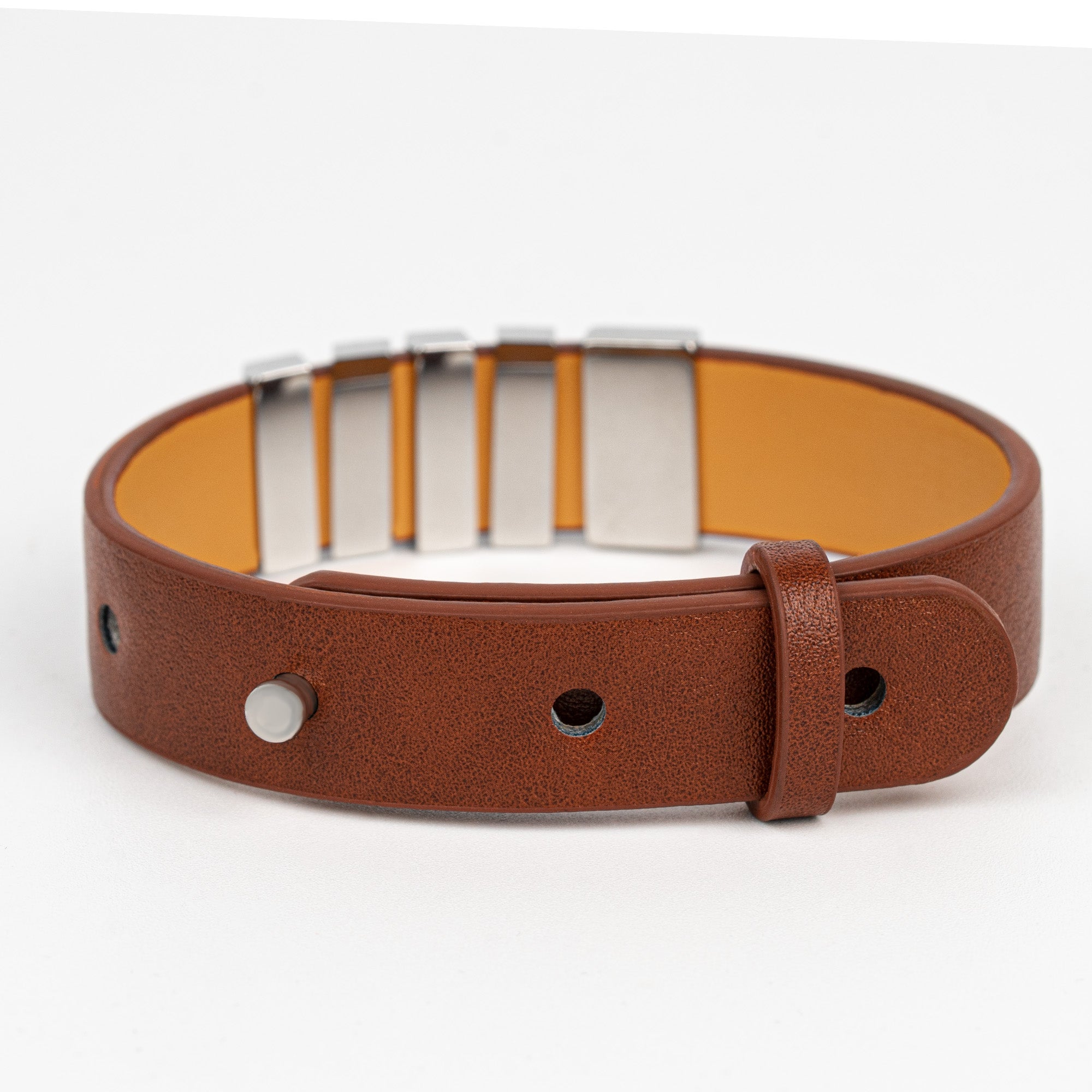 + Leather Strap: 2.75 inches (~ 7 cm) in diameter, featuring 3 adjustable holes for a secure fit.