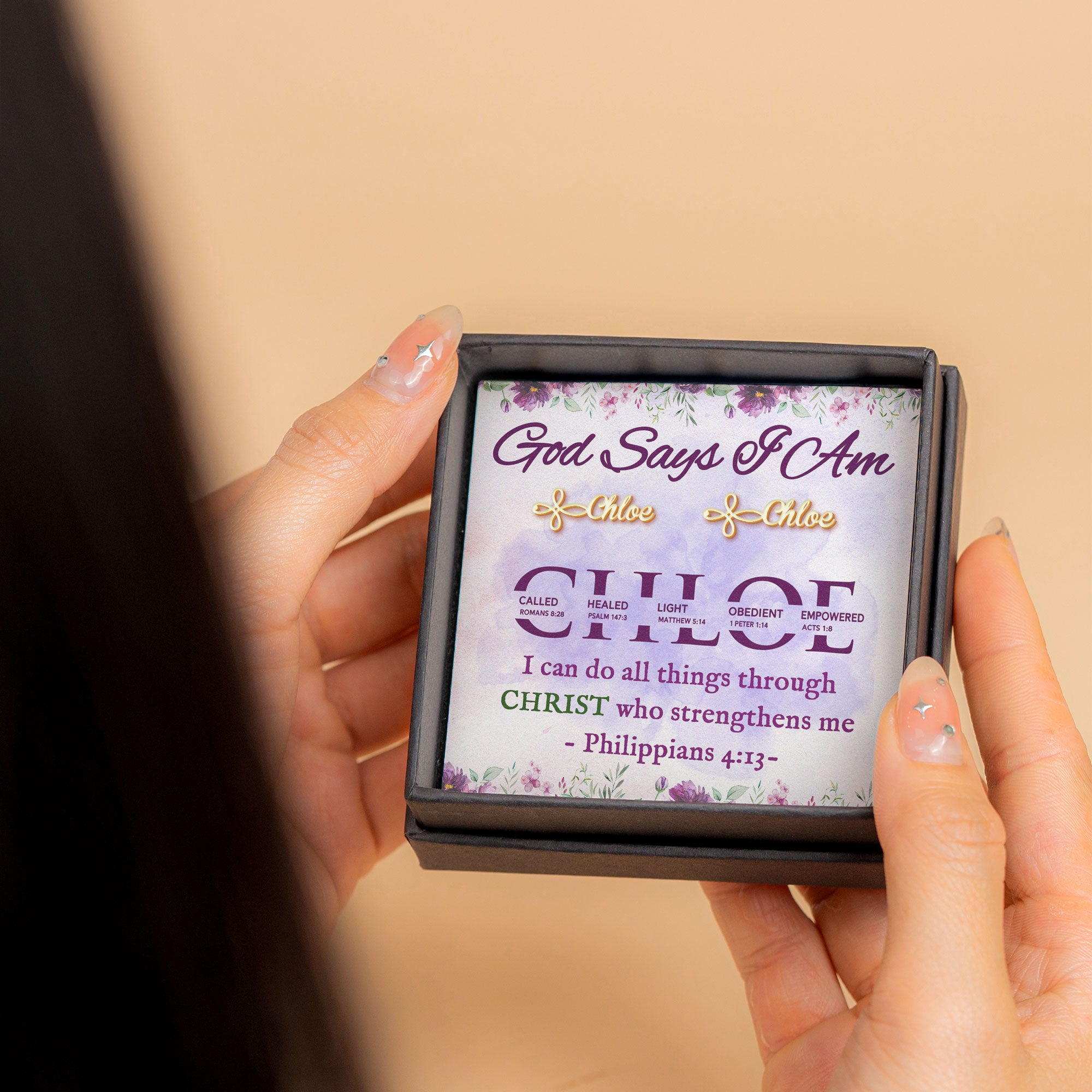 Indulge in wearing your faith with our God Says I Am Christian Bible Gift - Personalized Name Stud Earrings. Imbued with the Spirit of God, these stud earrings are the epitome of your Christian love. Their sparkling power resonates when you adorn them, reflecting your belief that through Christ your strength is endless. Just like in Philippians, you have the ability with Him by your side. These stud earrings are for the strong personas with Christian affiliations and those who revel in self-love.