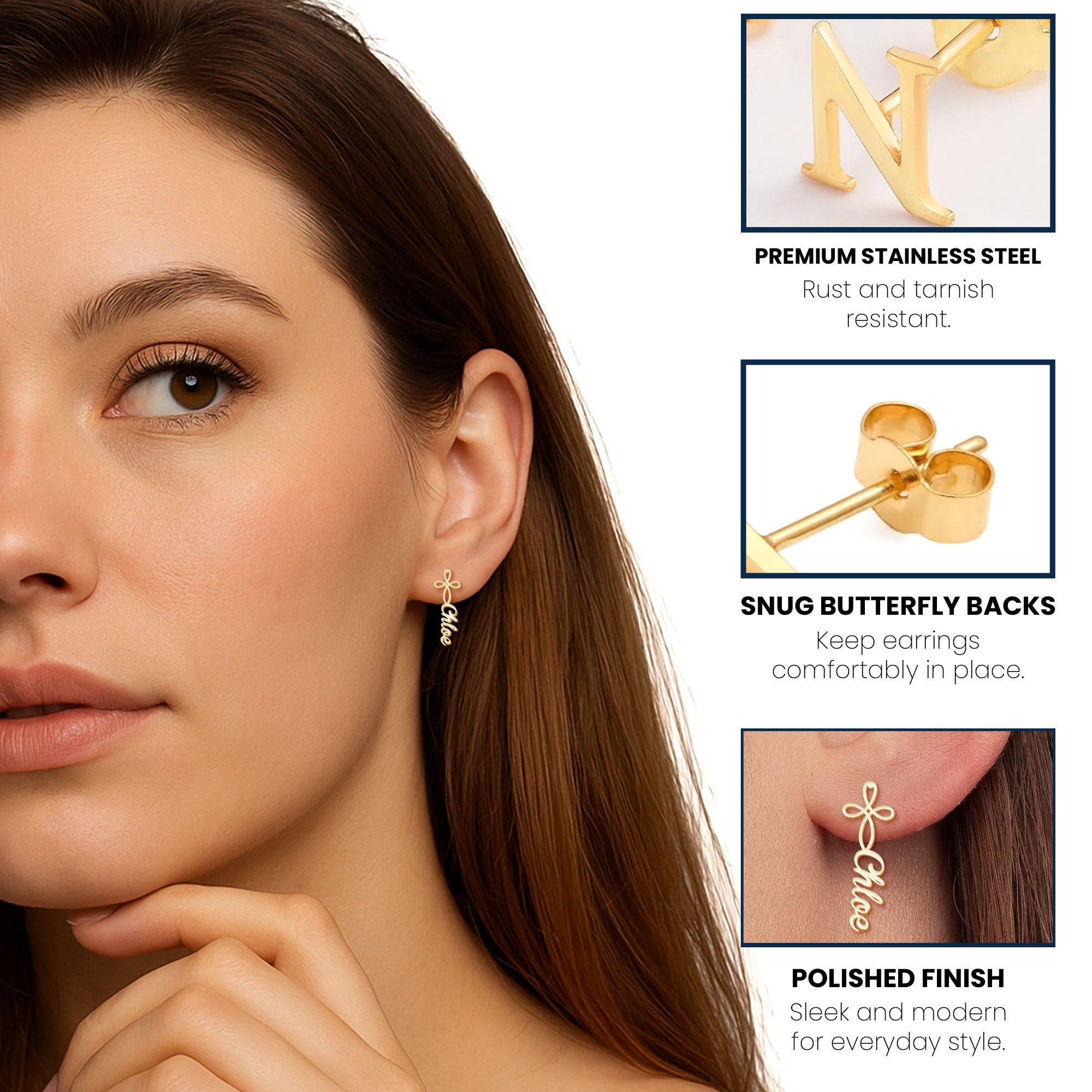 - Material: Crafted from high-quality stainless steel, these earrings are rust-resistant and tarnish-free, offering long-lasting shine and durability.