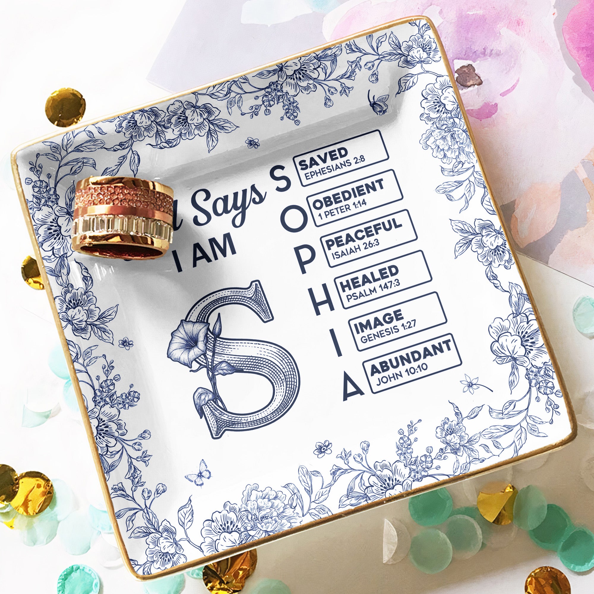 A perfect gift for her, whether it's Christmas, birthdays, anniversaries, or any occasion that calls for a thoughtful gesture. Let them know how much they matter, that God affirms their identity, giving comfort and strength in everyday life. This personalized dish is not just a piece of jewelry storage but also an everyday reminder of their importance in the divine plan. Encourage your loved ones by gifting them this intimate, meaningful keepsake. Order now and let the love and affirmation circulate in the world around you.