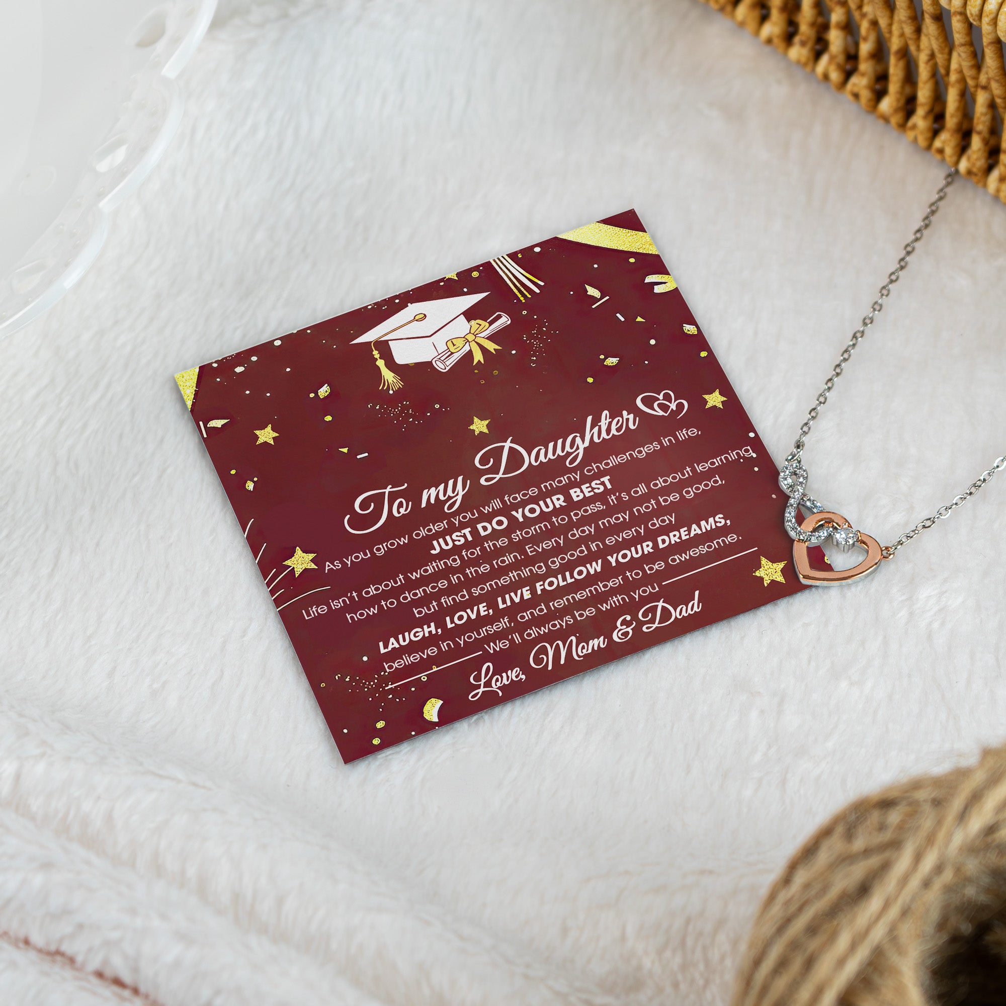 Celebrate her incredible achievement with a timeless symbol of love and pride. This Personalized Infinity Heart Necklace is a heartfelt graduation gift for your daughter or granddaughter, featuring an elegant heart intertwined with the infinity symbol to represent your endless support and love.