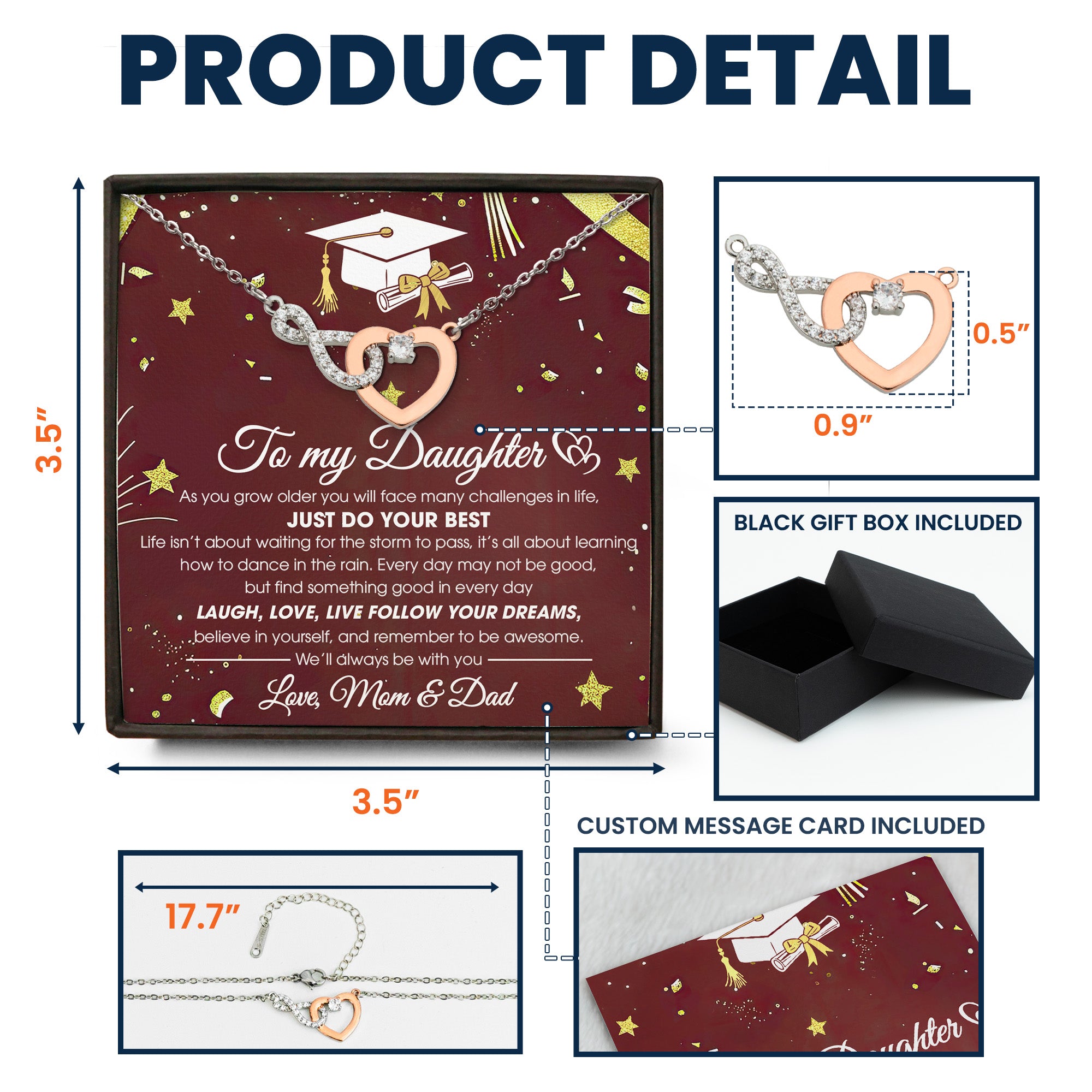 + Shape/pattern: Elegant intertwined heart-shaped pendant with crystal accents. - Gift Packaging: Arrives in a black gift box with a custom message card, making it a ready-to-gift item.