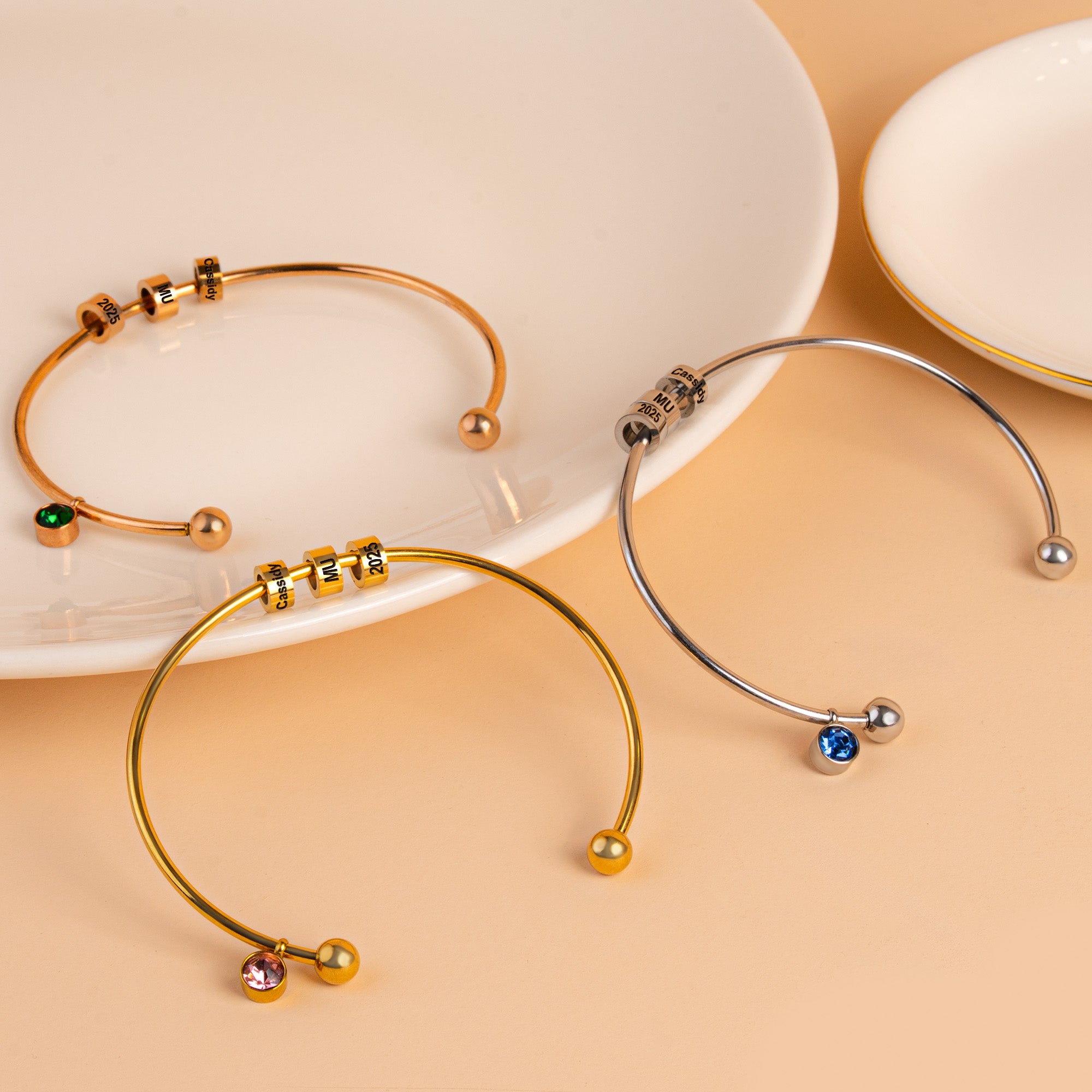 Celebrate their achievement with this Graduation Gift - Personalized Engravable Bead Name Cuff Bracelet with Birthstone. Crafted from high-quality materials, this elegant cuff bracelet features custom engraved name beads and a sparkling birthstone, making it a unique keepsake. Adjustable for a perfect fit, it's a meaningful way to honor their hard work and success. A timeless graduation gift they'll cherish forever!
