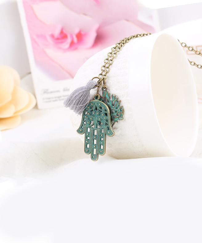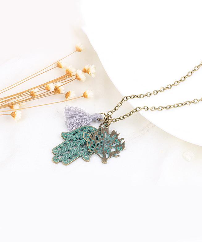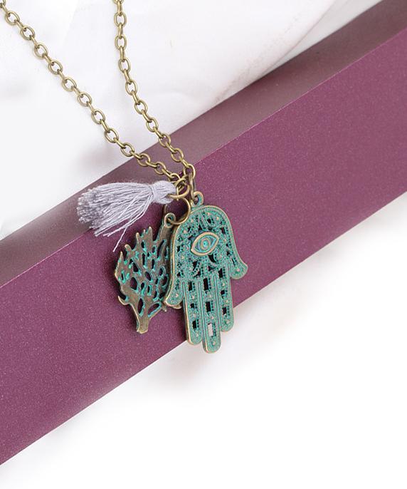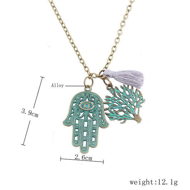 Hamsa Tree of Life Tassell Goldtone Necklace in Goldtone ITALY Design