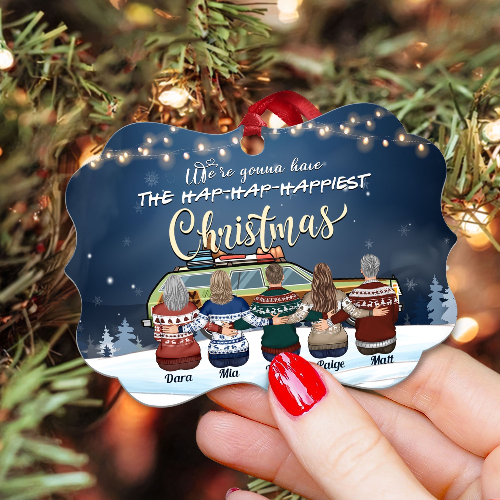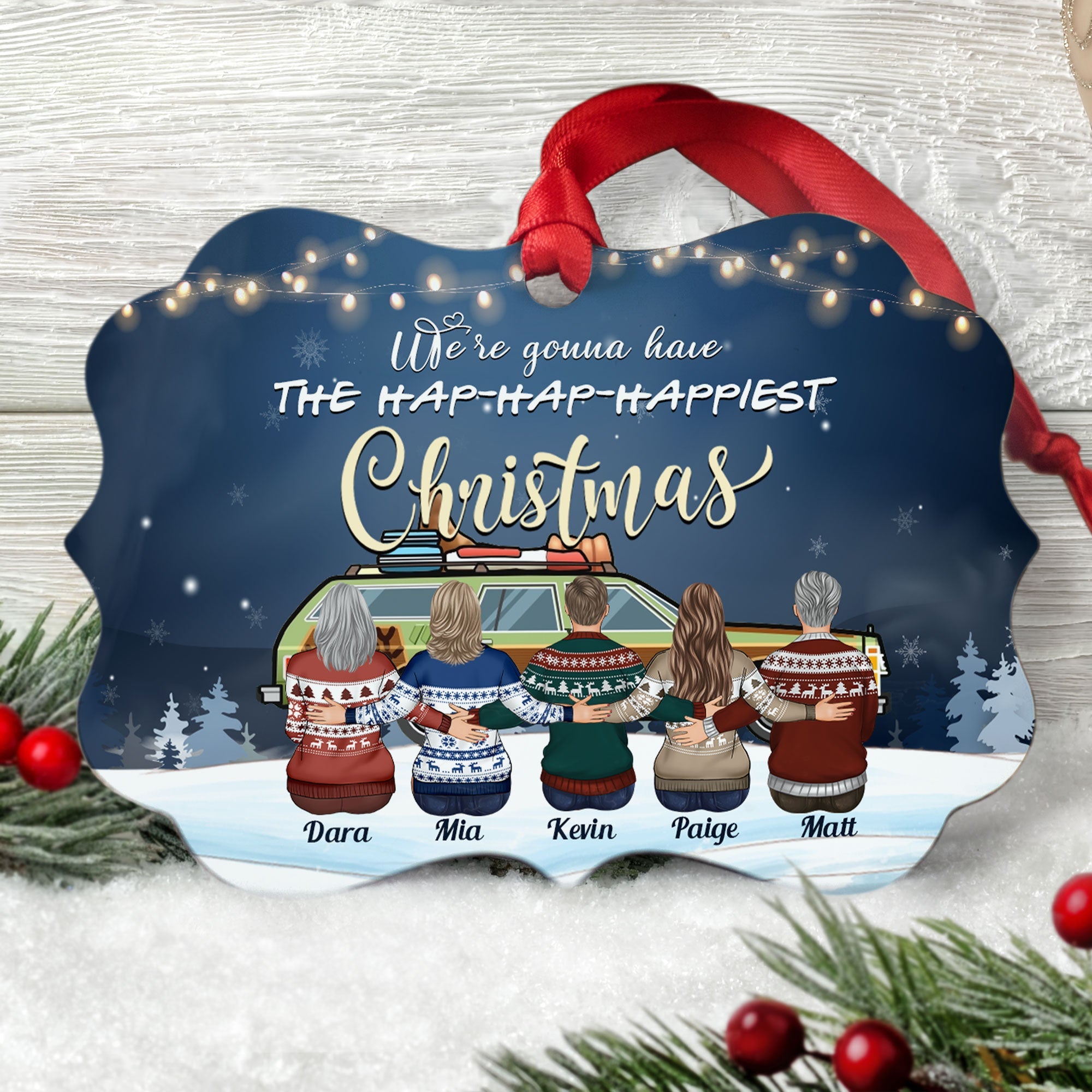 Hap-Hap-Happiest Christmas - Personalized Aluminum Ornament - Christmas Gift For Dad, Mom, Children