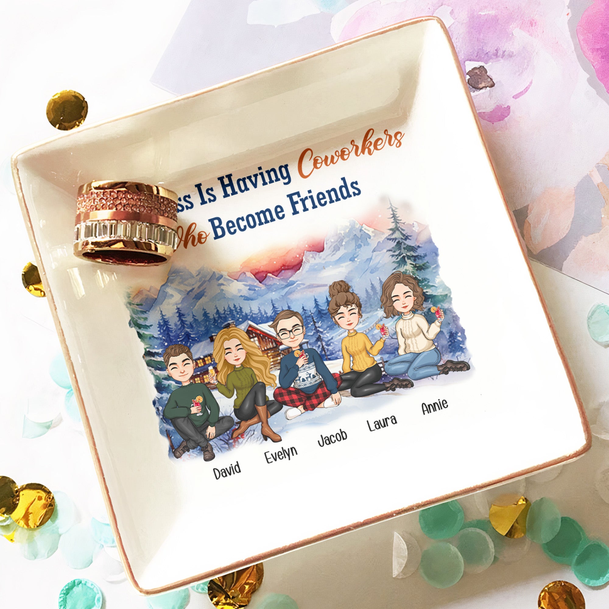 The "Happiness Is Having Coworkers Who Become Friends" Personalized Jewelry Dish is a thoughtful and meaningful gift that celebrates the bond between colleagues who have become close friends. This beautifully designed dish, customized with names or personal touches, is perfect for storing cherished keepsakes. It’s an ideal Christmas gift for coworkers and friends, symbolizing the special connection that goes beyond the workplace. Whether for a holiday celebration or as a token of appreciation, this jewelry dish makes a heartfelt and lasting gift that captures the joy of friendship.