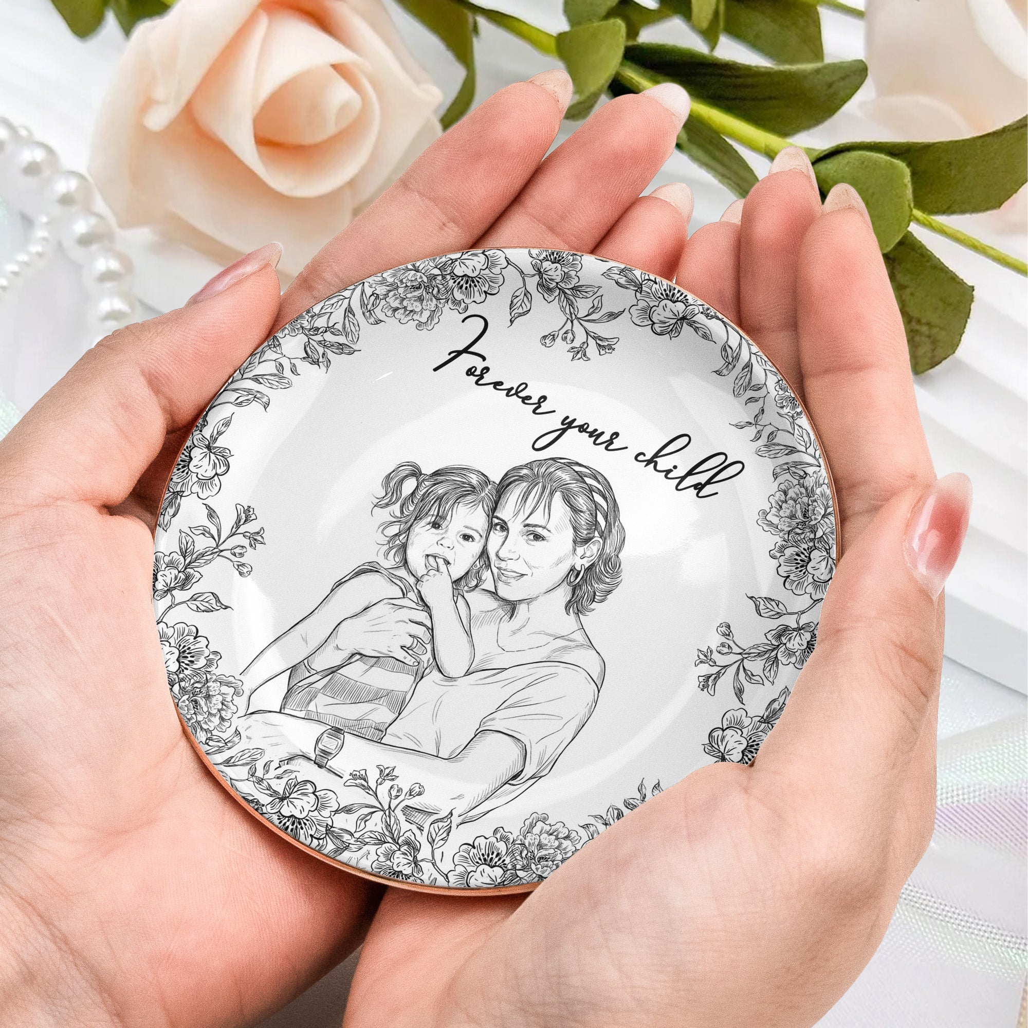 An impeccable choice for Mother's Day, it could also serve as a remarkable gift for birthdays, Christmas, anniversaries, or any occasion as a testament of your endless love towards her. It doesn't just hold her treasures; it echoes your feelings and makes her daily rituals even more special. The dish is versatile and suits all moms – the ones who appreciate elegant design, cherish sentimental value, or love functional art. Don't let another moment pass without declaring your love. Gift this personalized photo jewelry dish to your mom and make her everyday special.