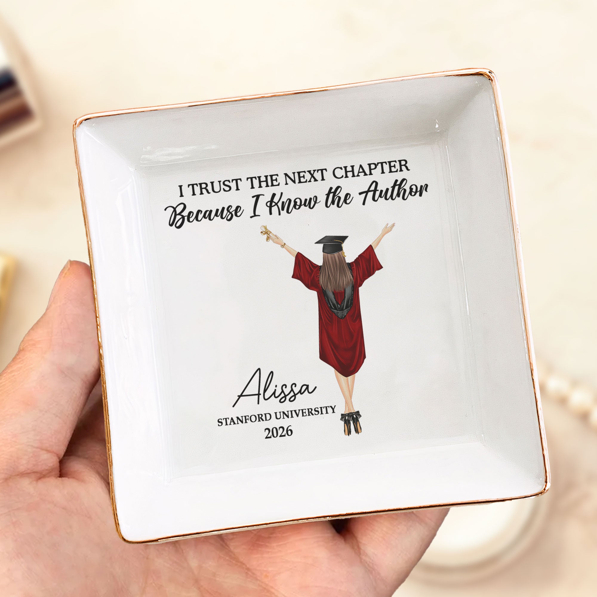 Celebrate milestones and special moments with our beautifully crafted Jewelry Dish, the unique gift that epitomizes trust and friendship. With the inspiring message subtly ingrained, it serves not only as a functional piece to keep your precious jewelry organized but also a touching reminder to trust life's journey, making it perfect for family and friends who are about to embark on a new chapter, be it Graduation or any life-changing moment.