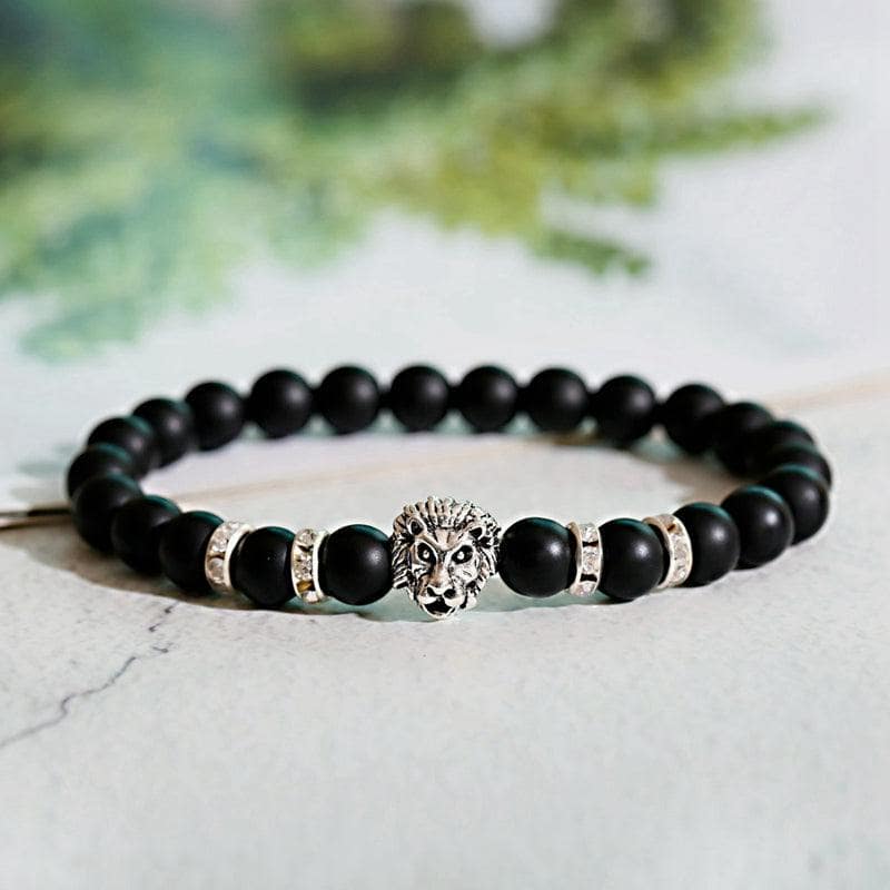 Crafted with natural matte black onyx stone beads and featuring a stainless steel lion head and charms, this bracelet is not only stylish but also kind to sensitive skin. It is resistant to fading, discoloration, and deformation, ensuring lasting quality. The elastic cord provides a comfortable fit, adjusting easily to most wrist sizes. This environmentally-friendly piece of jewelry is safe and harmless to wear, embodying both elegance and sustainability.