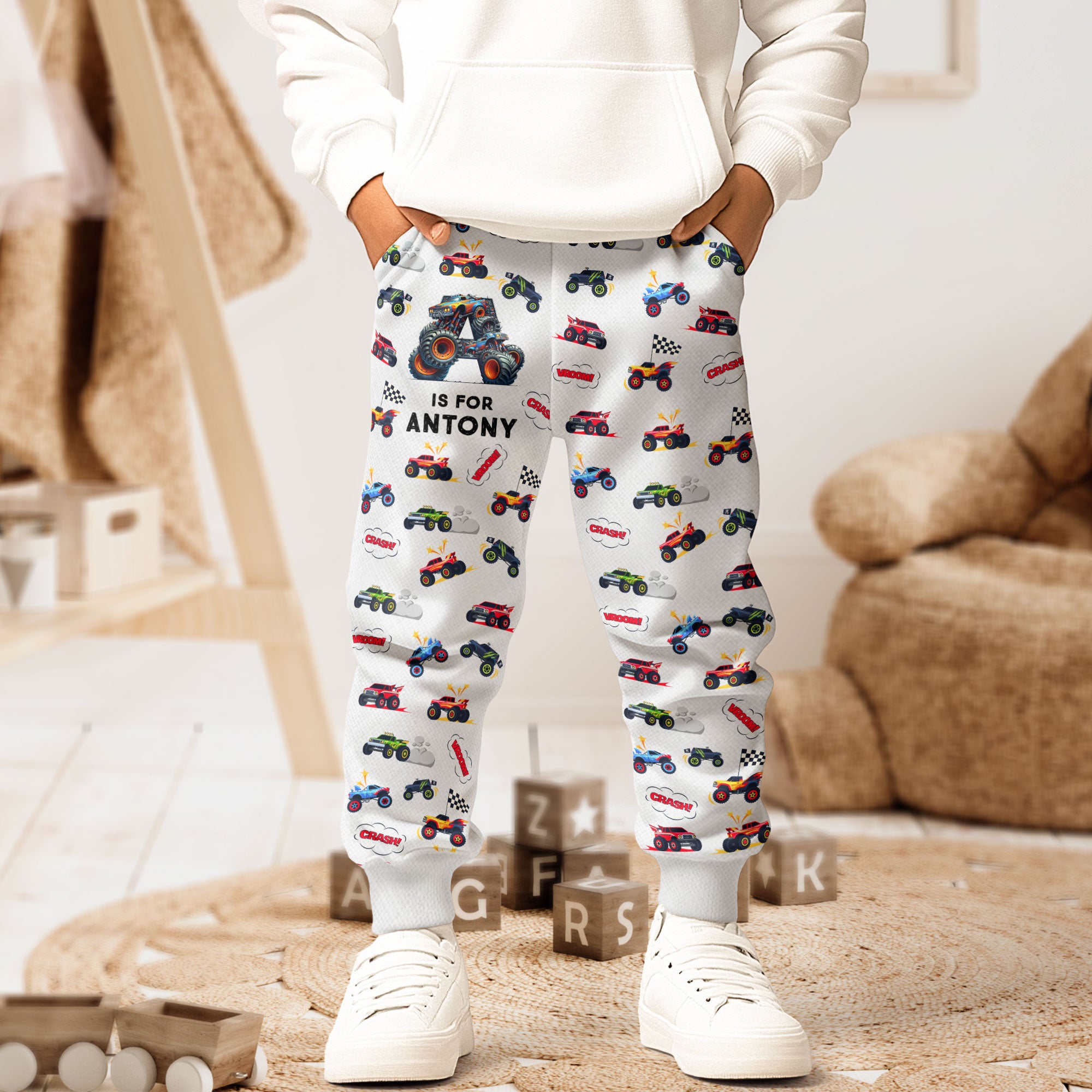 Monster Truck Alphabet Letters - Personalized Sweatpants