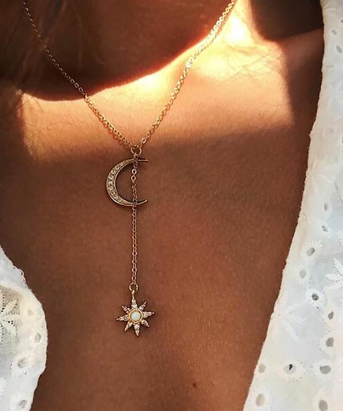 Moon and Star Necklace With Luxe Crystals in Goldtone ITALY Design