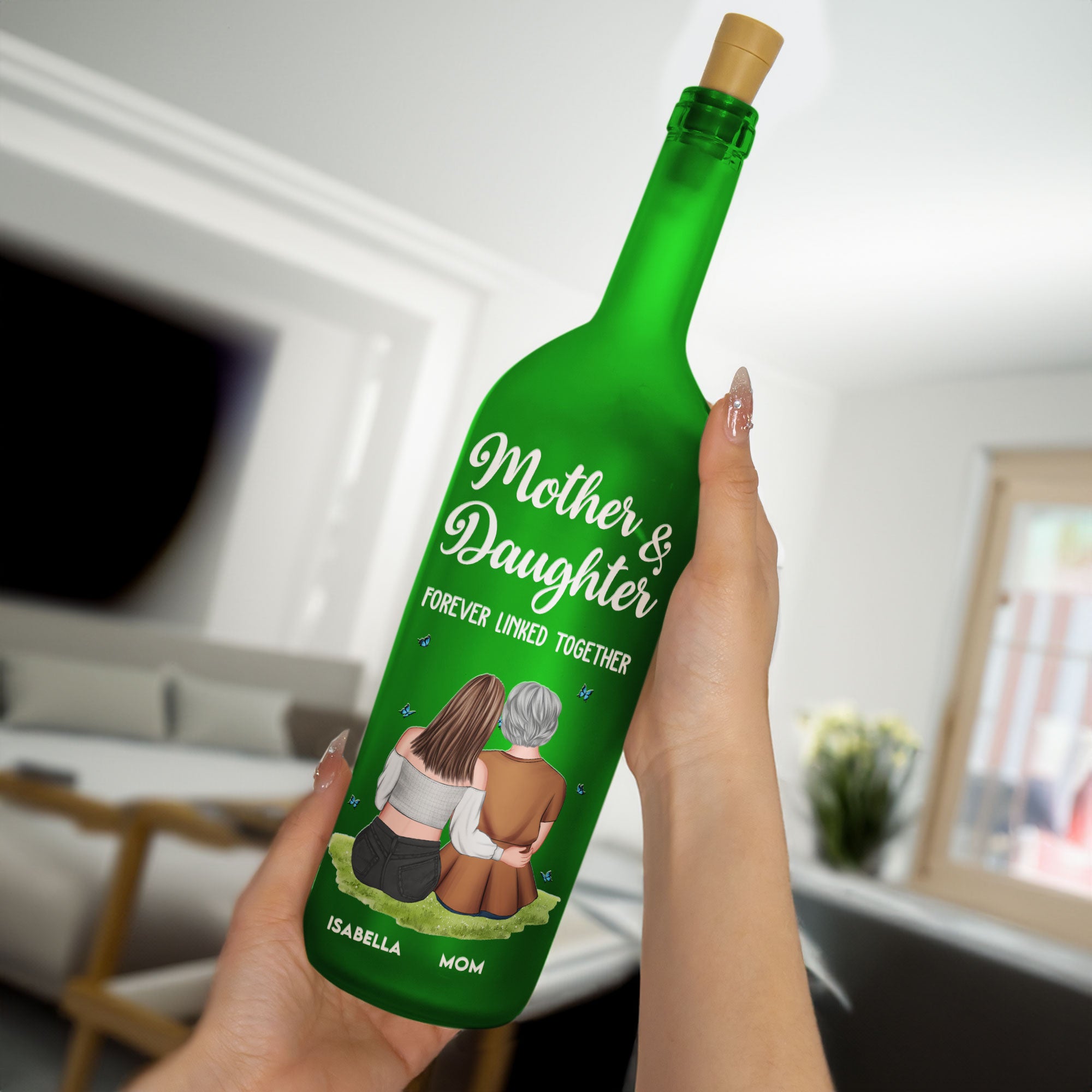 The Custom Bottle Lamp is a heartfelt and elegant gift, perfect for daughters and mothers to celebrate their unique bond. With customizable options for names, messages, or meaningful designs, this lamp becomes a personal keepsake that radiates love and warmth. Its soft, glowing light creates a serene and comforting atmosphere, making it a beautiful piece for home decor or a treasured reminder of your special connection. Whether for Mother’s Day, a birthday, or just to show appreciation, this bottle lamp is a touching way to express love and gratitude between a mother and daughter. A gift that shines as brightly as your relationship!