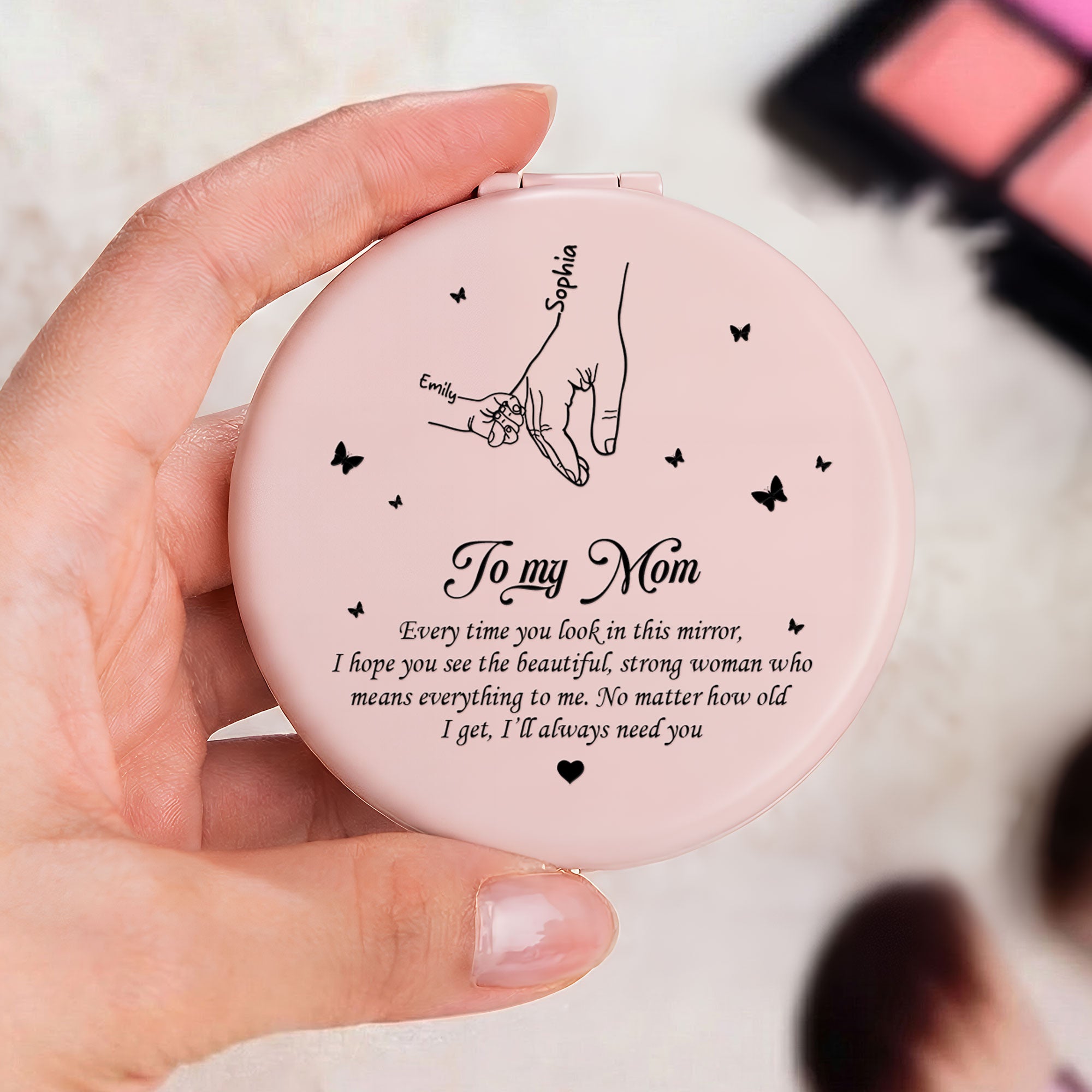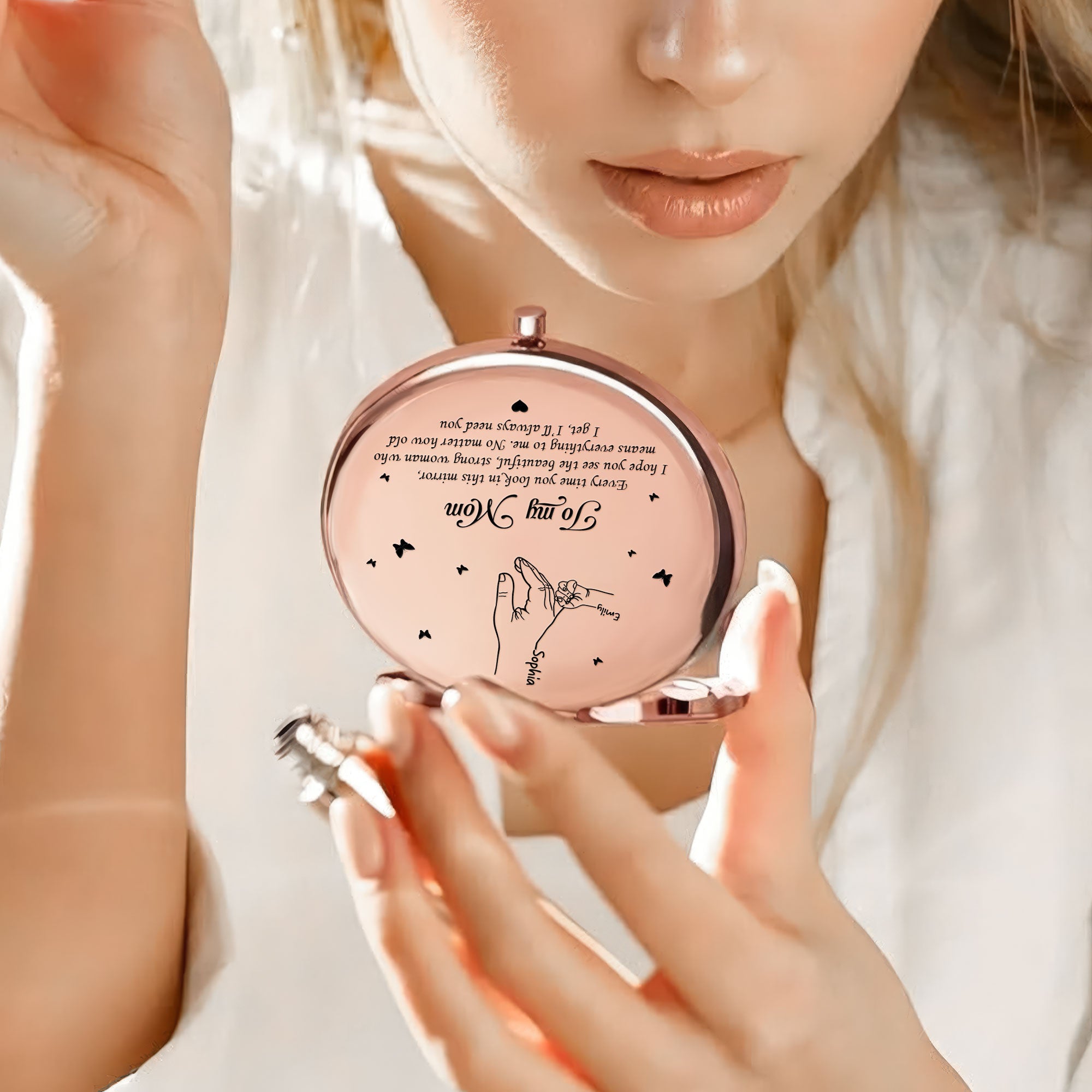 Looking for the perfect gift for your mom on Mother's Day? Our Circle Metallic Compact Mirror is more than just a handy makeup tool; it's a thoughtful keepsake that'll remind her of your bond every time she uses it. This personalized mirror, aptly titled "Mother's Day Gifts Every Time You Look In This Mirror Reminder For Mom", is an embodiment of love and affection. Designed to highlight the family ties and the unmatchable bond between a mother and her child, it's perfect for Mother's Day, anniversaries, birthdays, or any special occasion that deserves a sentimental touch.