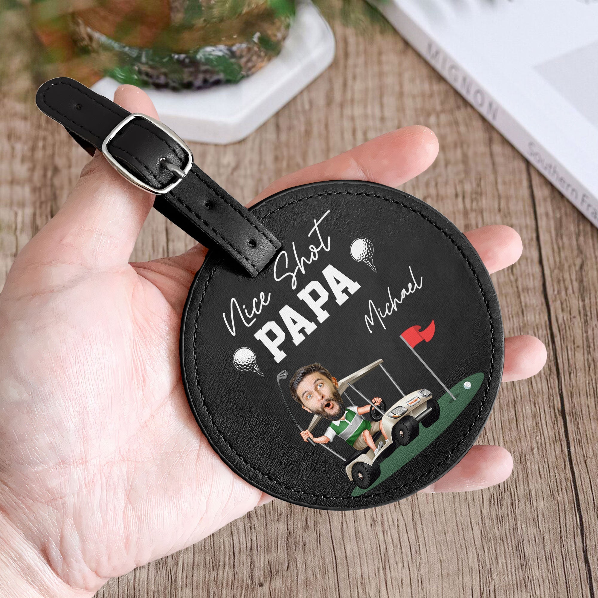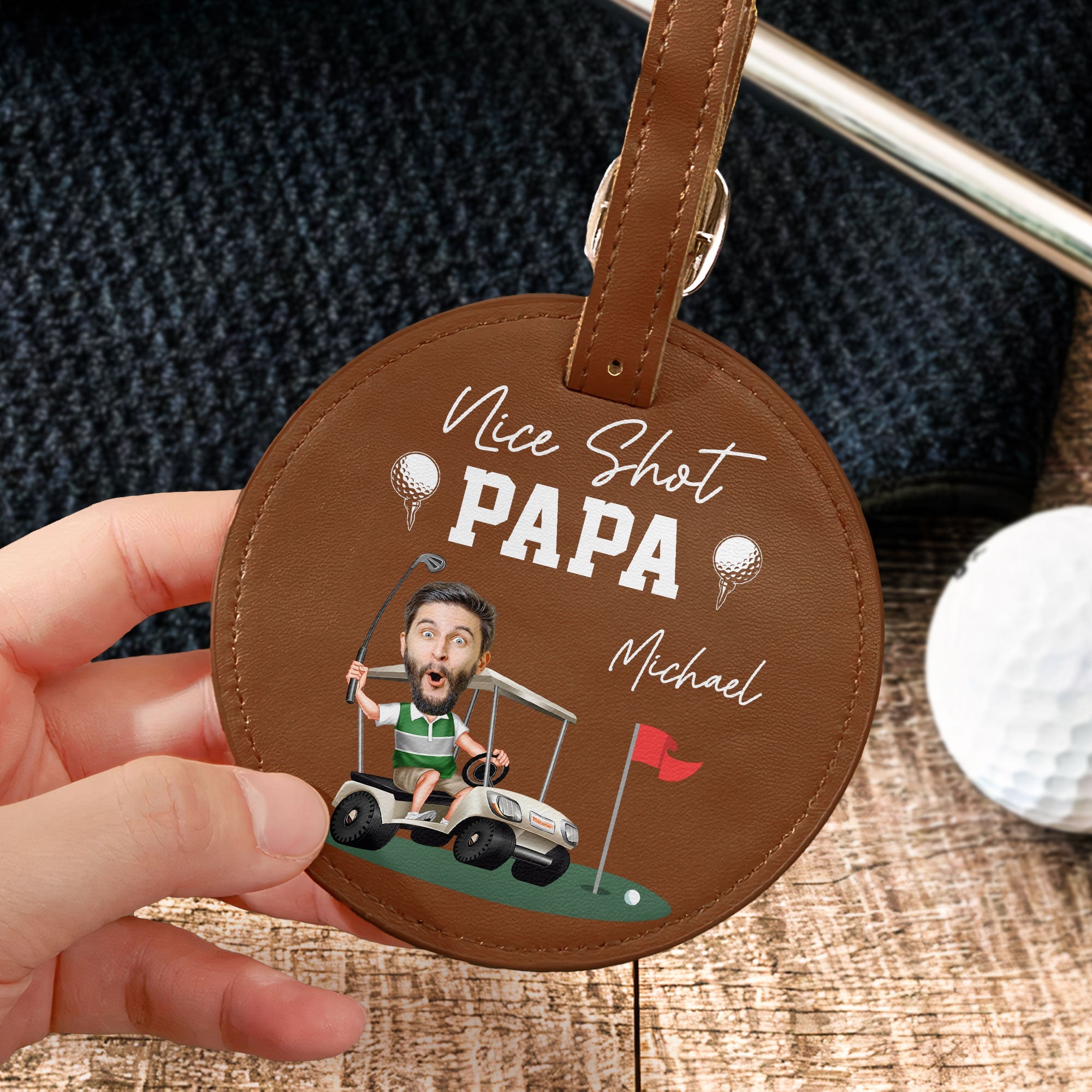 Hit the mark with our 'Nice Shot Daddy' Personalized Photo Leather Golf Bag Tag, the perfect gift for the golf-loving dad who appreciates both style and sentiment on the green.