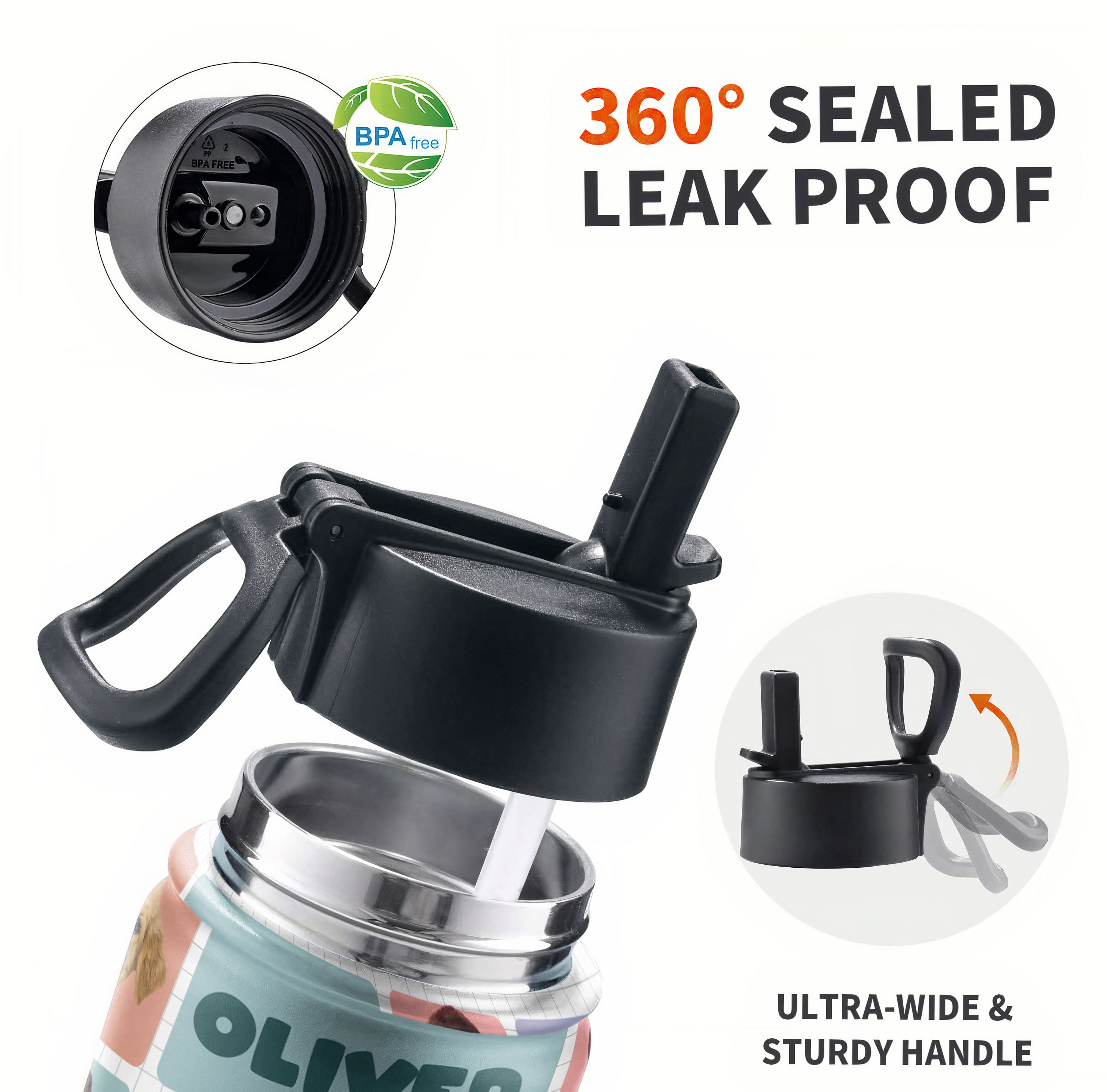 The 12 oz Kids Water Bottle with Straw Lid is just the right size for toddlers and kids to take on the go.