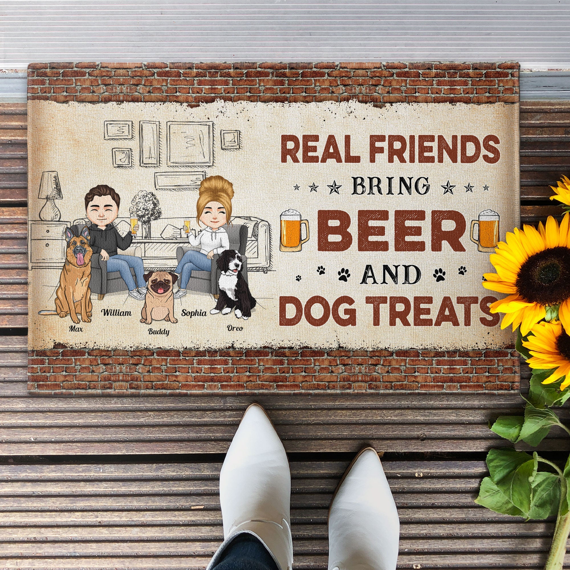 Real Friends Bring Beer And Dog/Cat Treats - Personalized Doormat - Gift For Family, Pet Owners, Pet Lovers, Home Decor