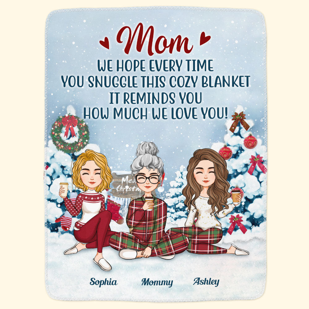 This personalized gift will touch mom's heart for Christmas. Her children, grandchildren, husband, or any loved one can create this heartfelt memento blanket honoring the cherished role she plays. Whenever she wraps herself in its warmth, your love and gratitude will surround her. Preserve your most precious memories and always feel the comfort of mom's embrace with this custom blanket gift made just for her.