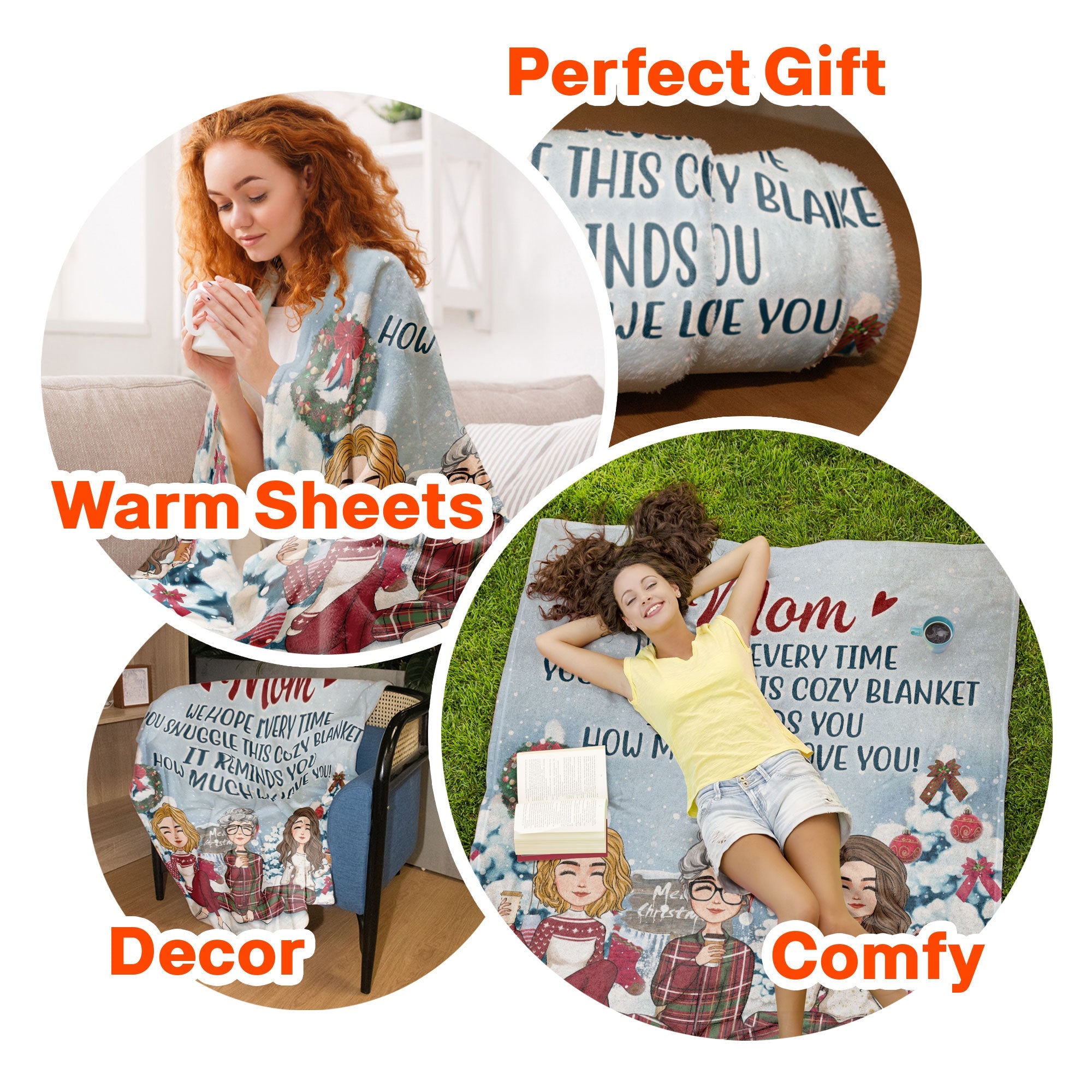 A personalized blanket that is designed specifically for Christmas allows you to commemorate your one-of-a-kind relationship with your mom through pictures and words woven into a meaningful memento. Customize this cozy blanket with images spanning your shared journey together. This custom blanket is specially designed to immortalize the special bond you share and celebrate the remarkable woman who raised, inspired, and loved you unconditionally throughout every season of life.